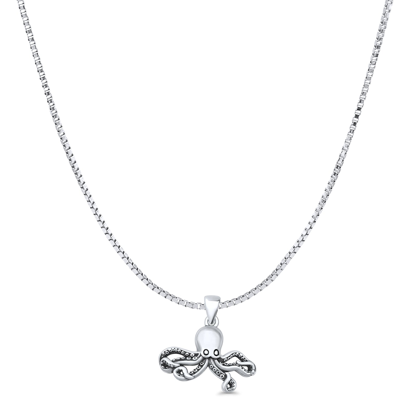Octopus Pendant Oxidized Box Chain Necklace 925 Sterling Silver