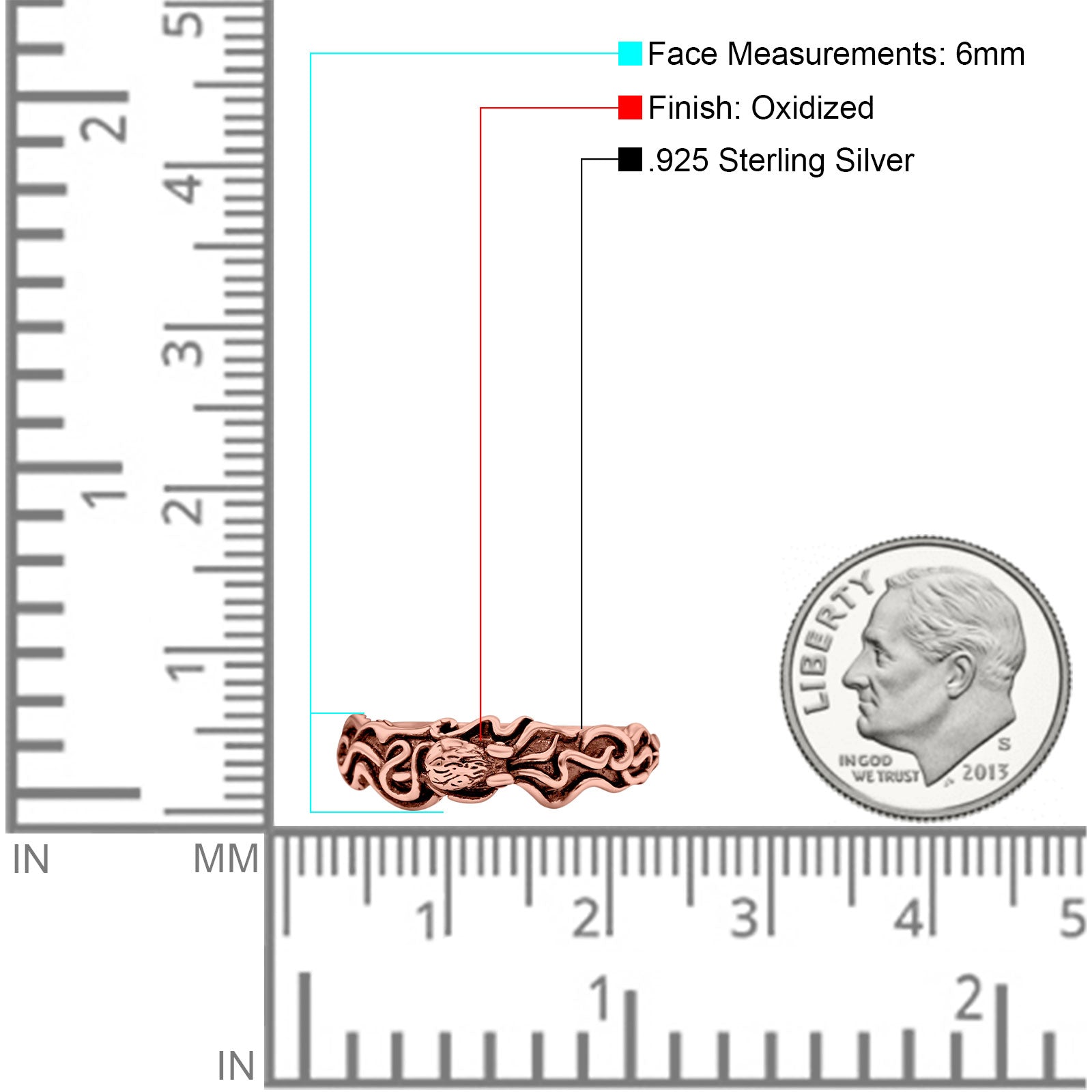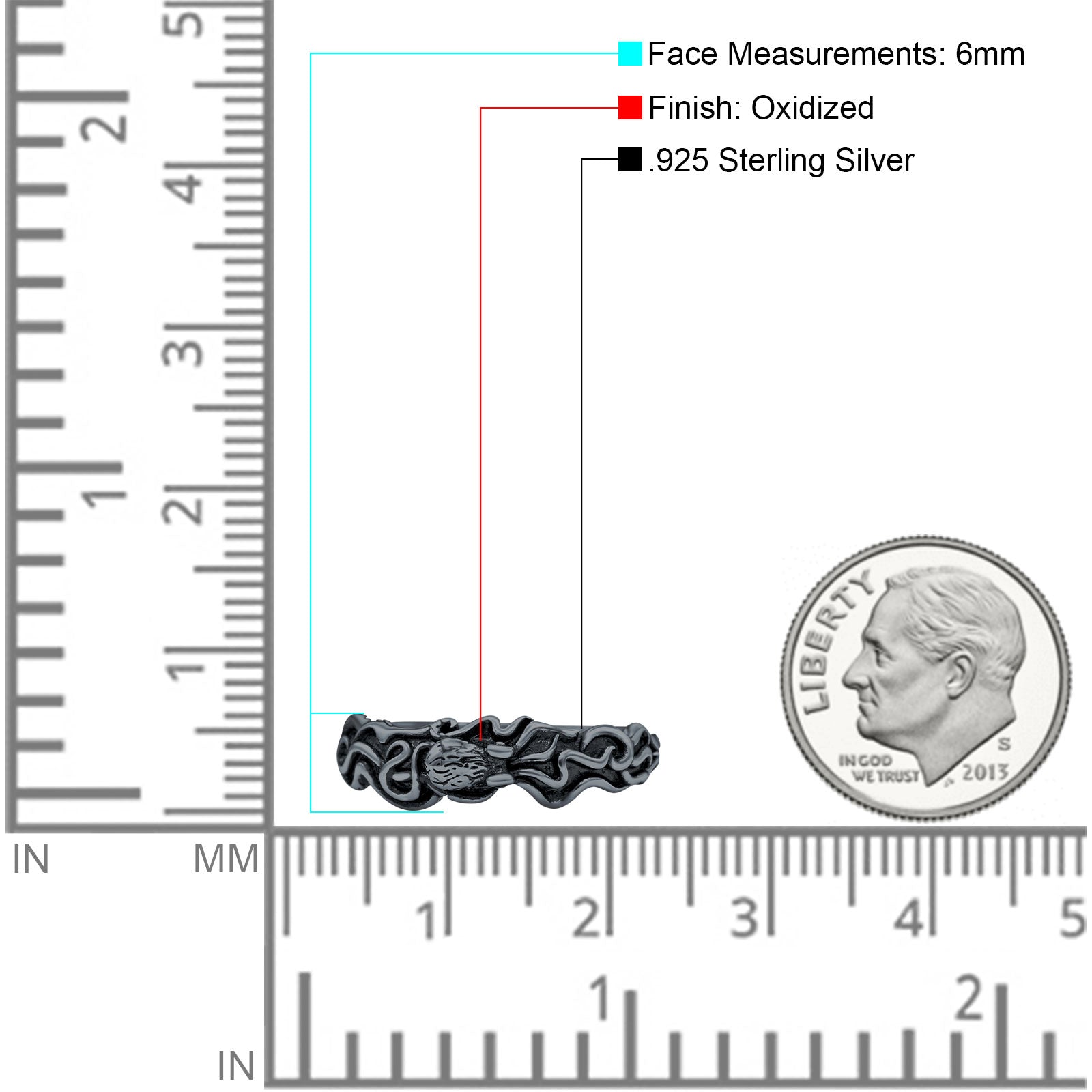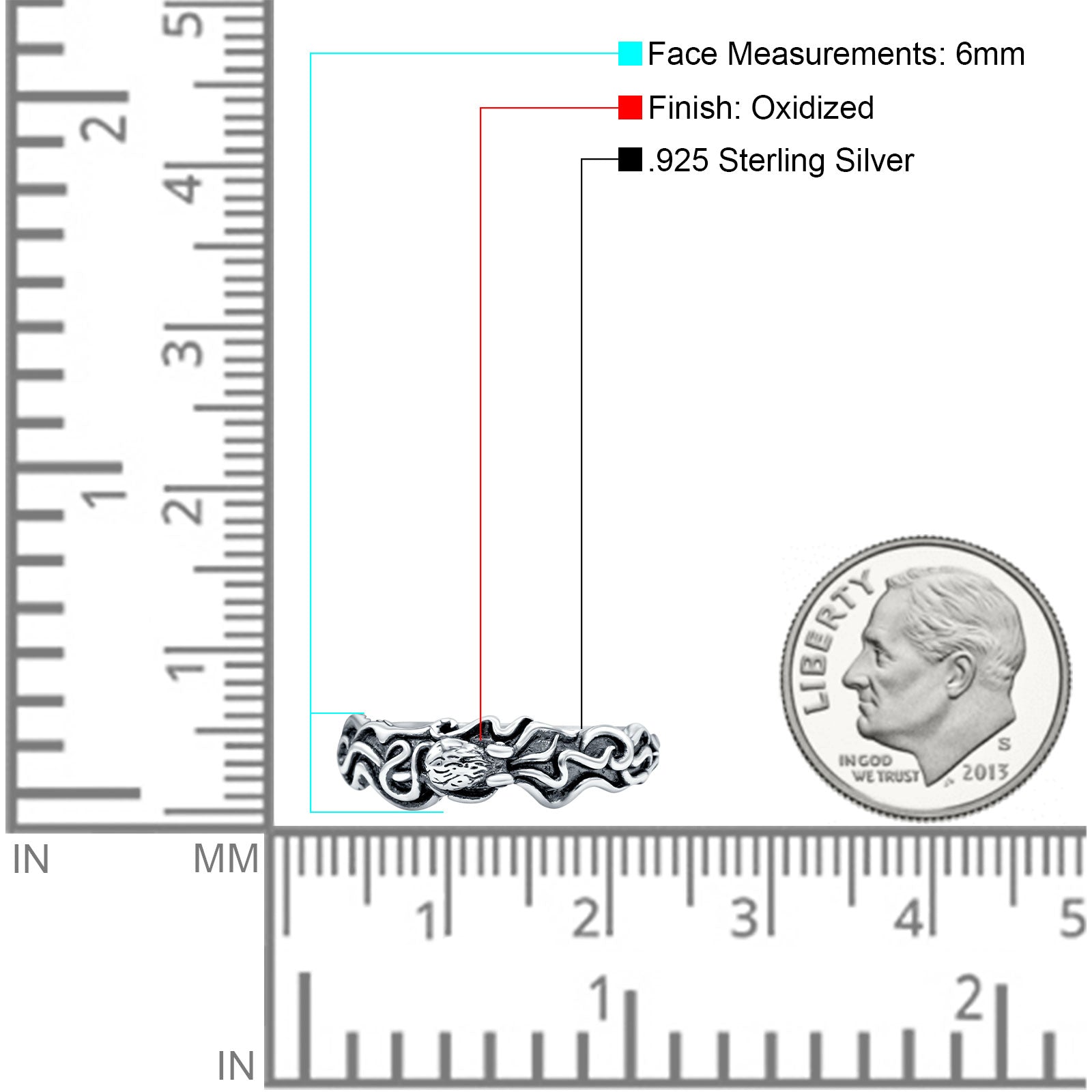 Octopus Ring Oxidized Band Solid 925 Sterling Silver Thumb Ring (6mm)