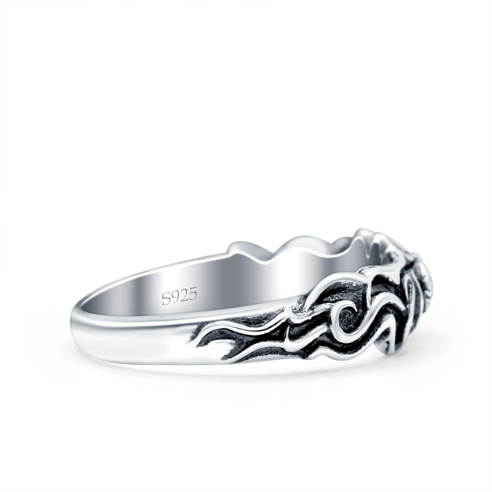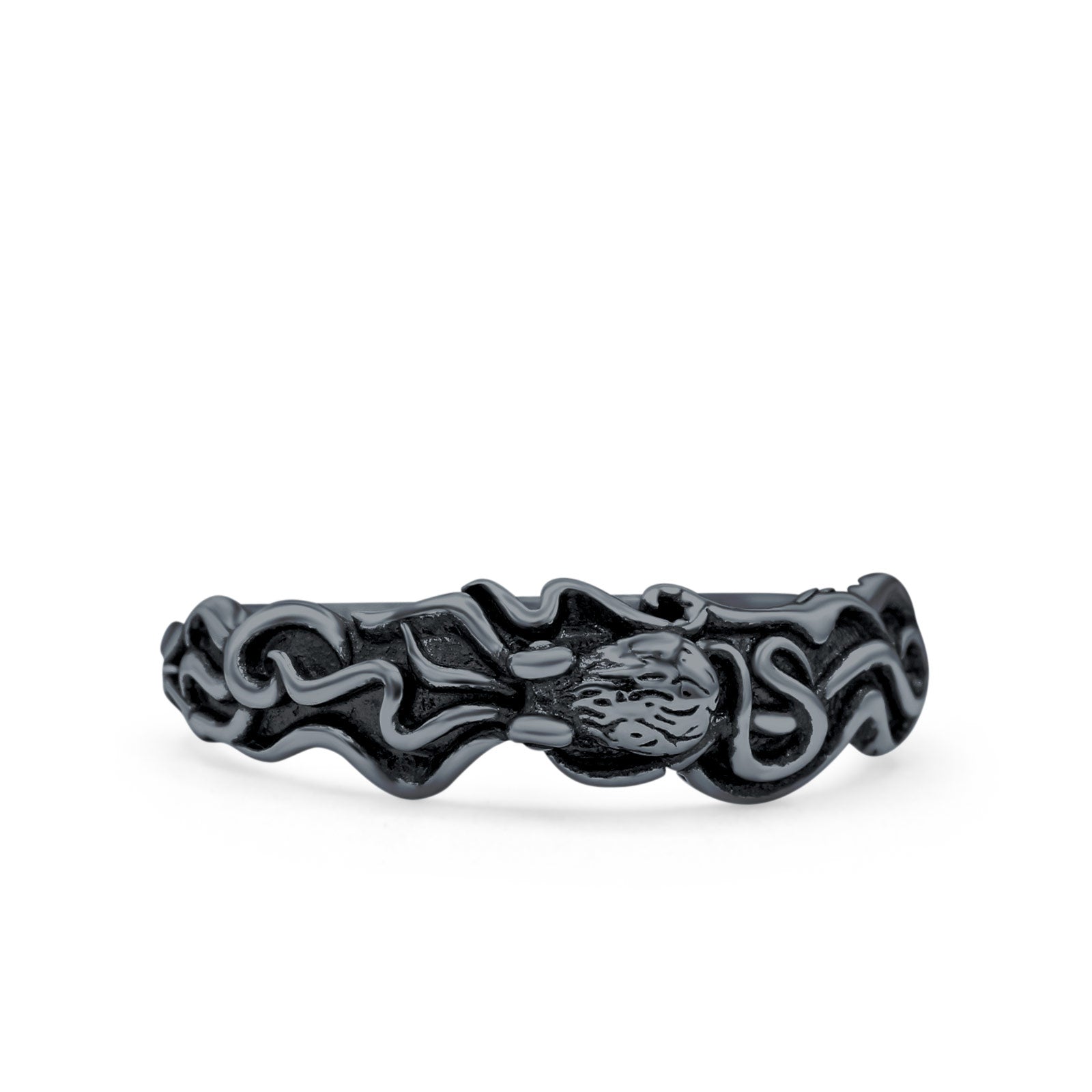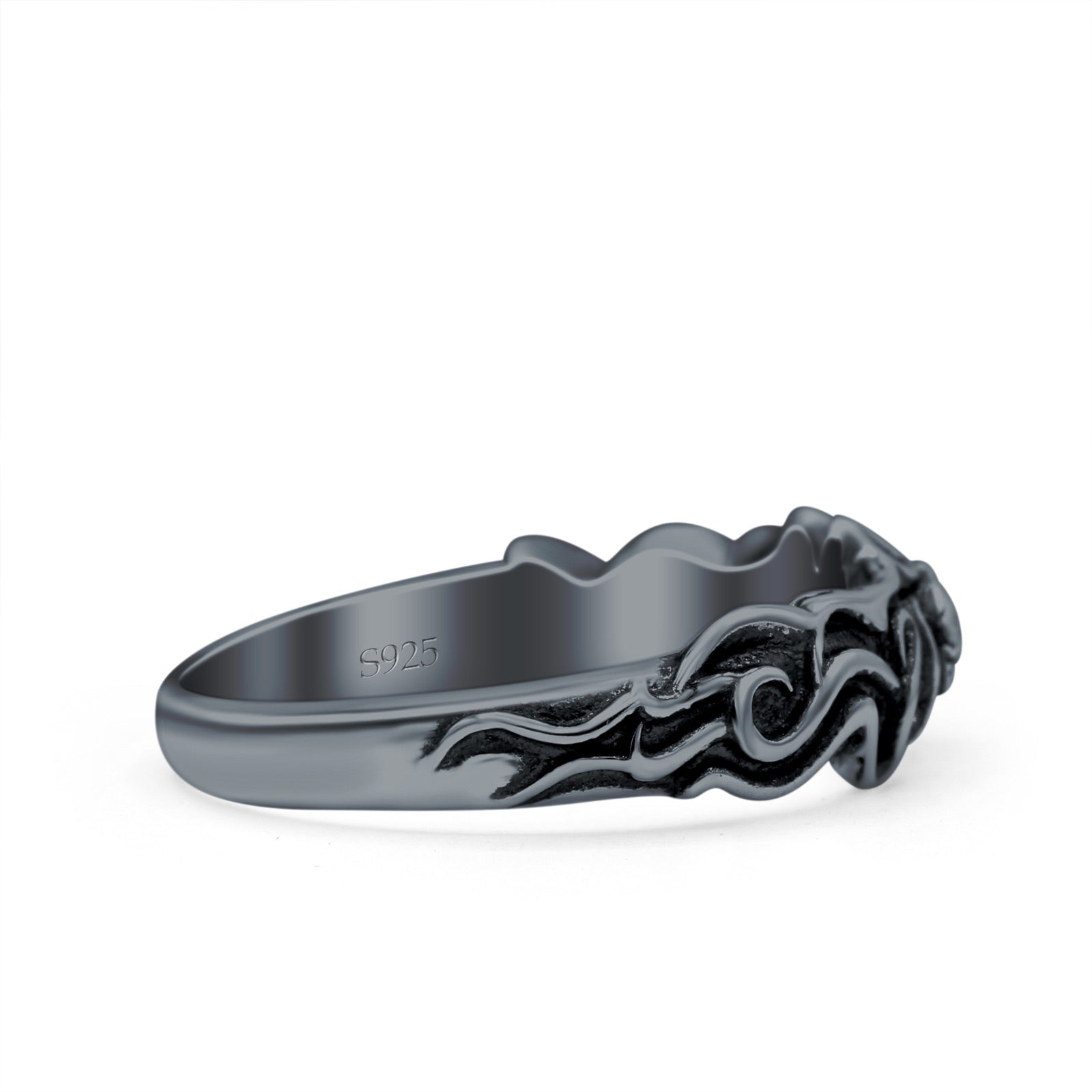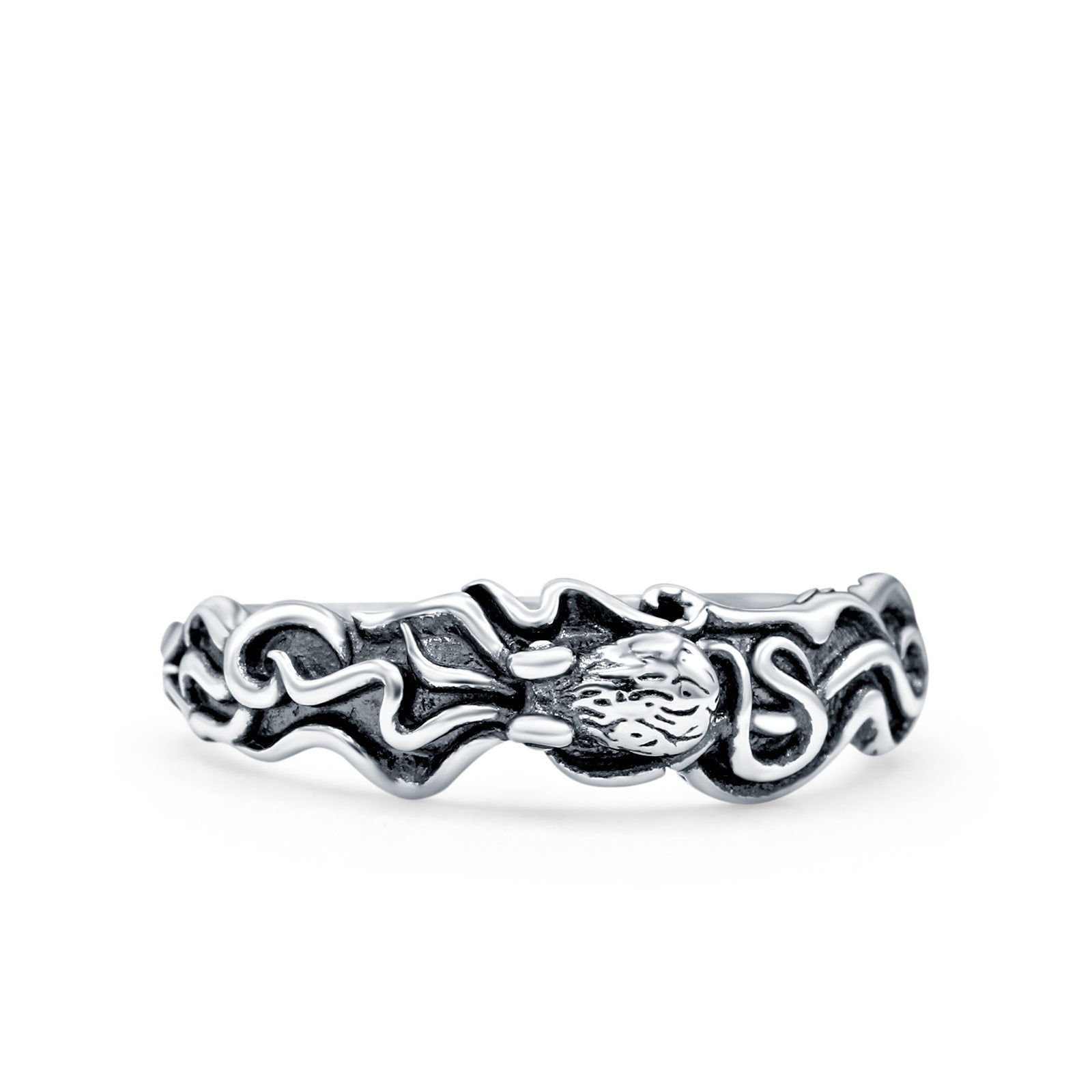 Octopus Ring Oxidized Band Solid 925 Sterling Silver Thumb Ring (6mm)