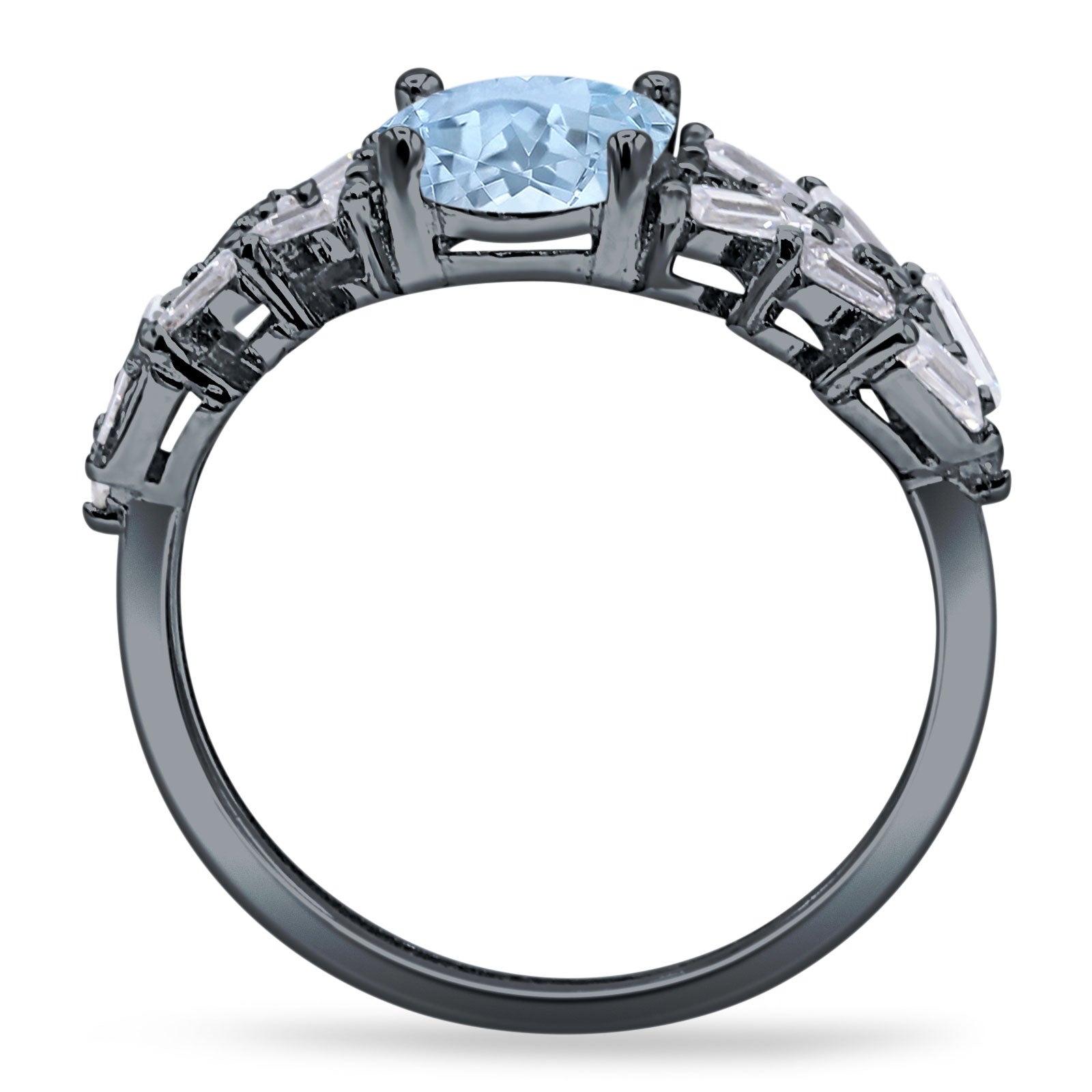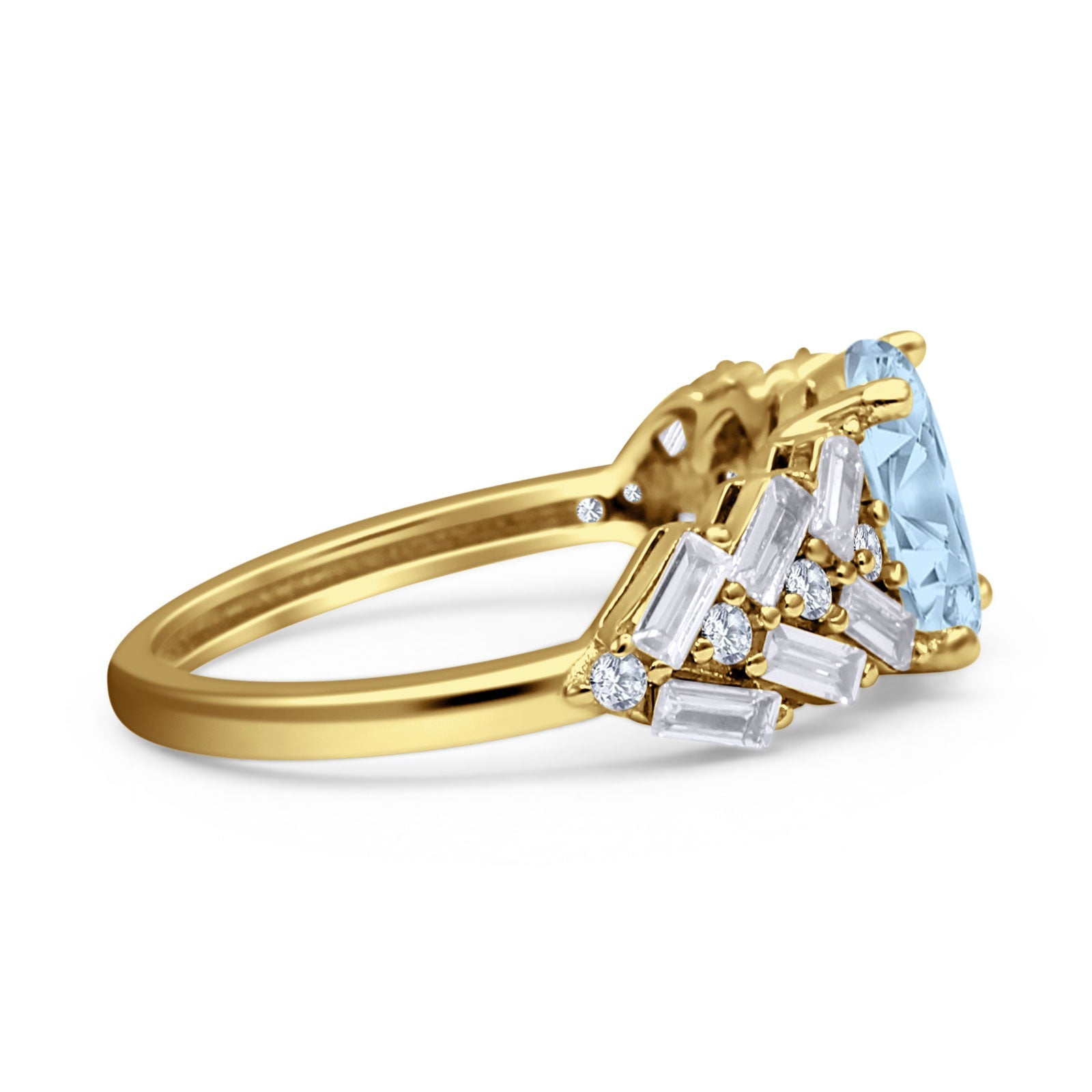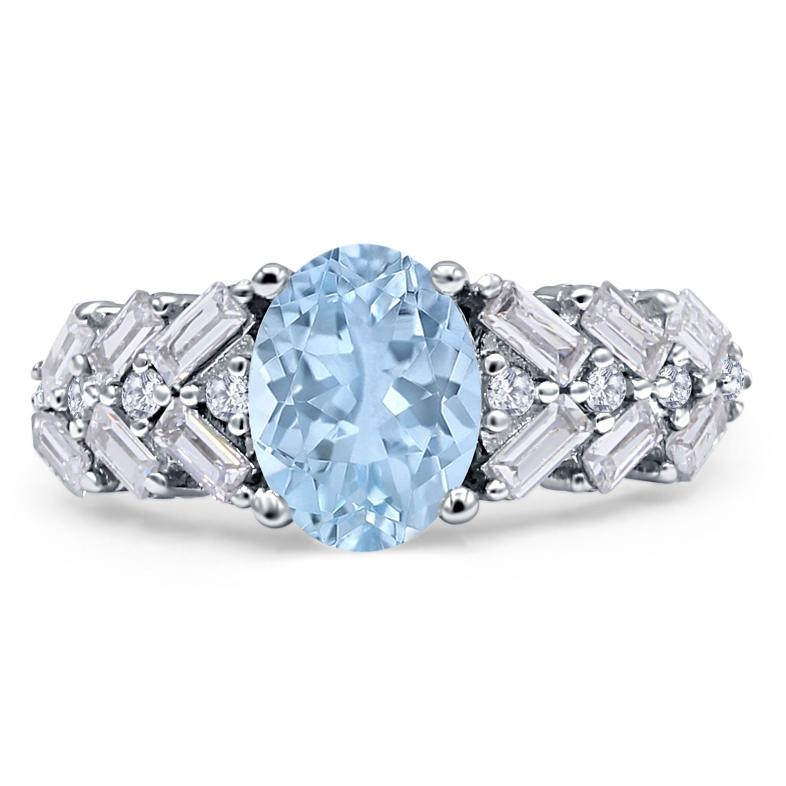 Ring Design: Oval Aquamarine CZ Cluster Baguette Cocktail Ring.