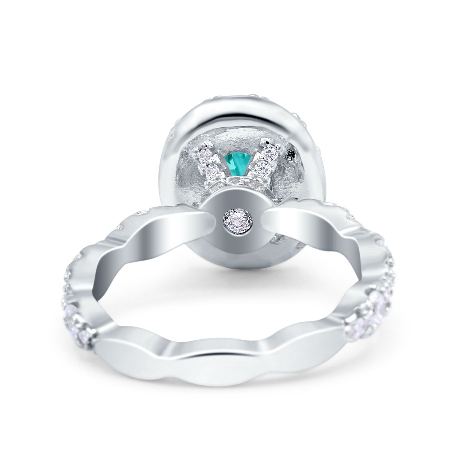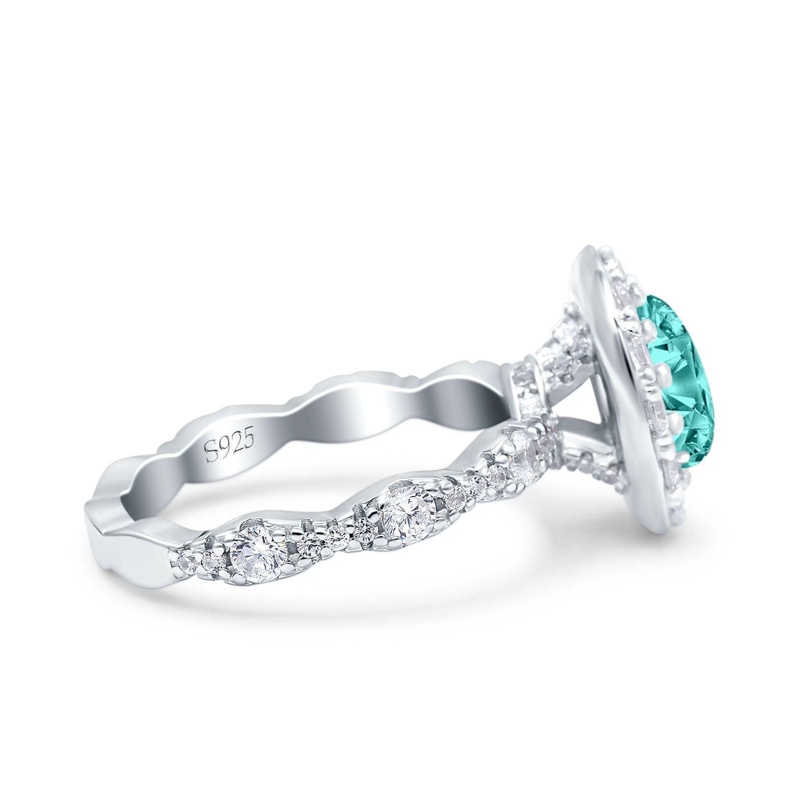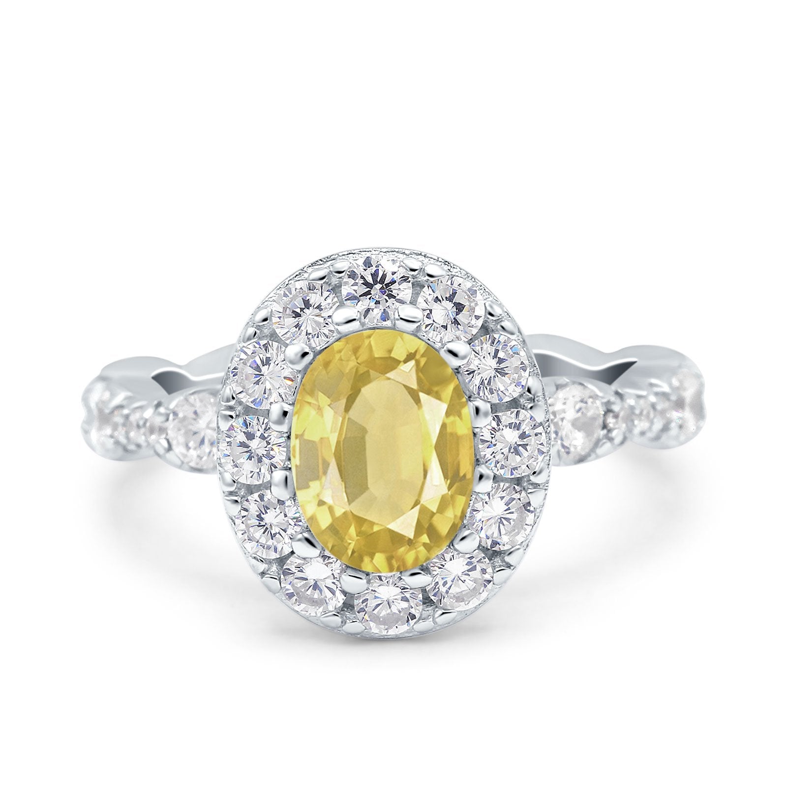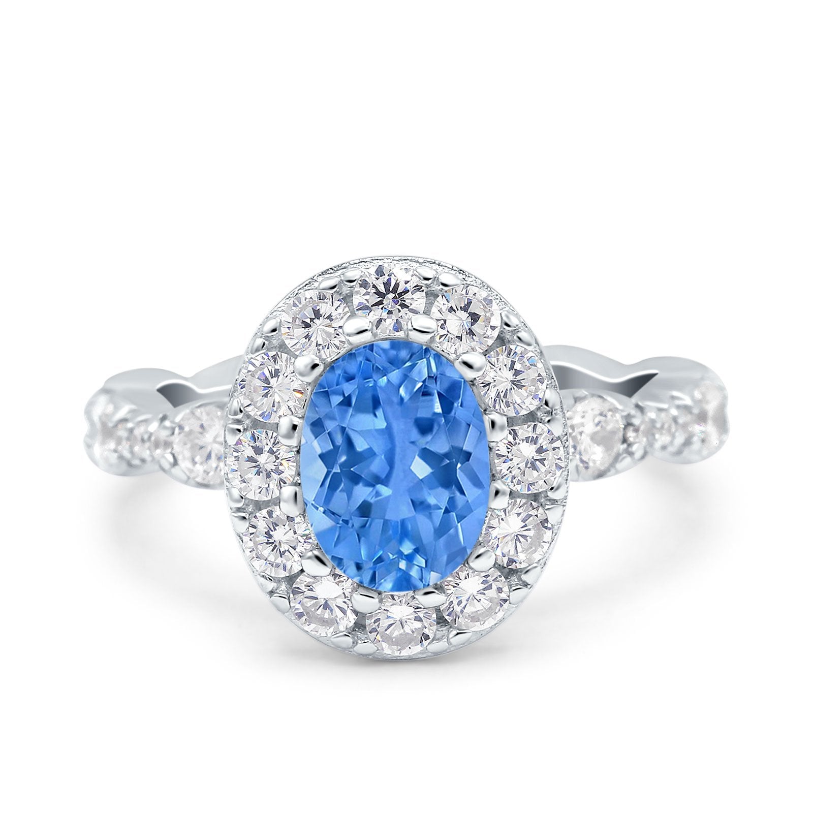 Oval Art Deco Halo Engagement Wedding Bridal Ring Round Simulated Cubic Zirconia 925 Sterling Silver