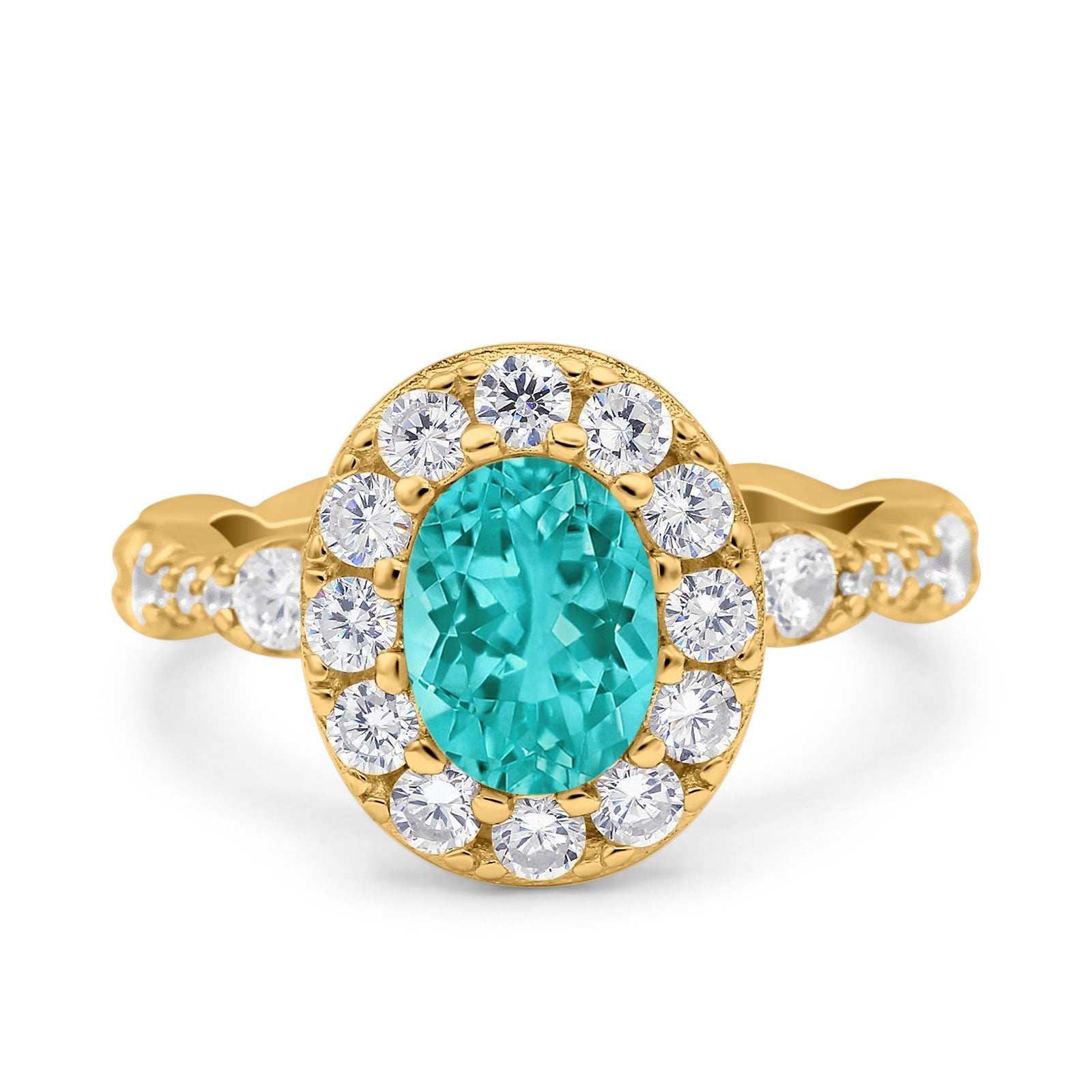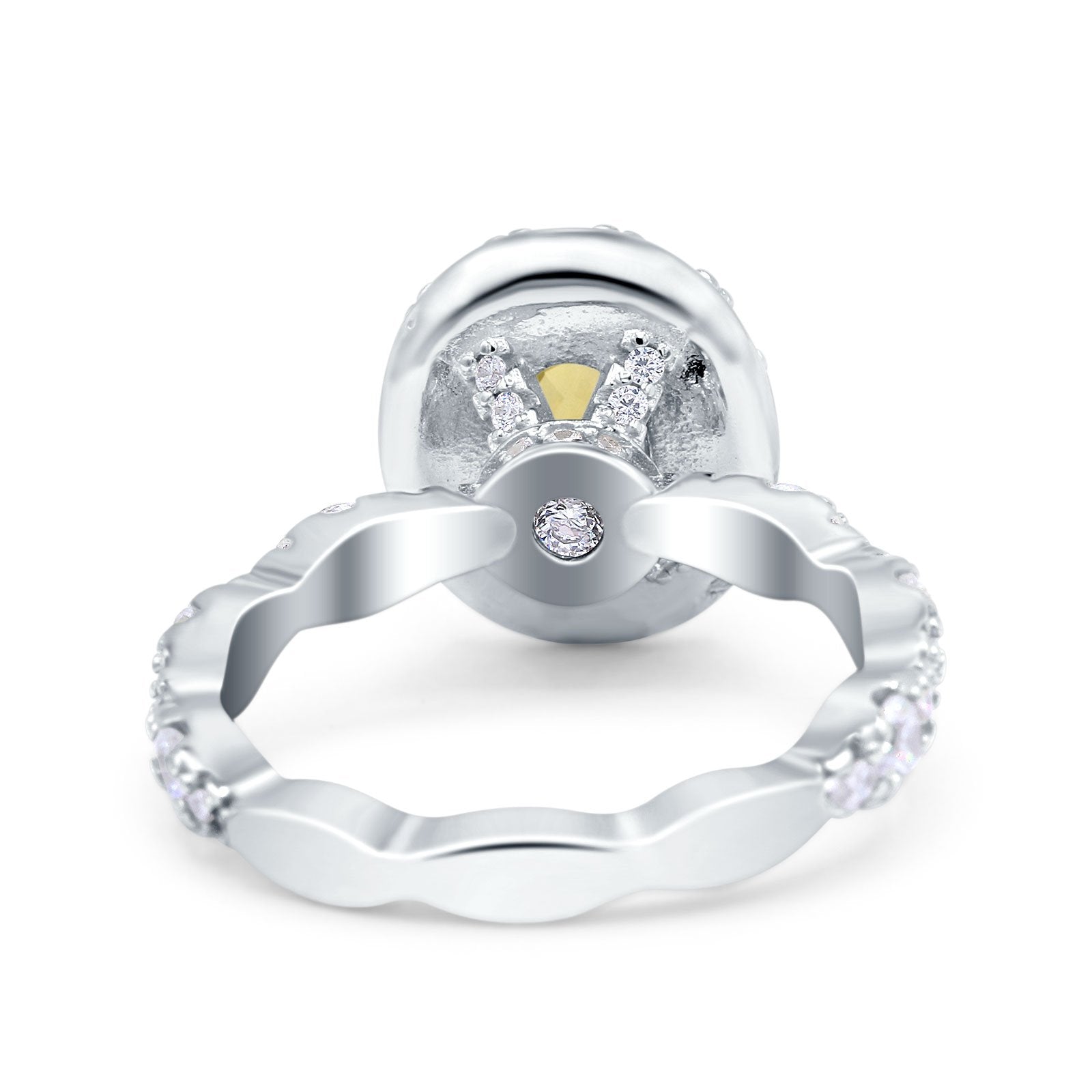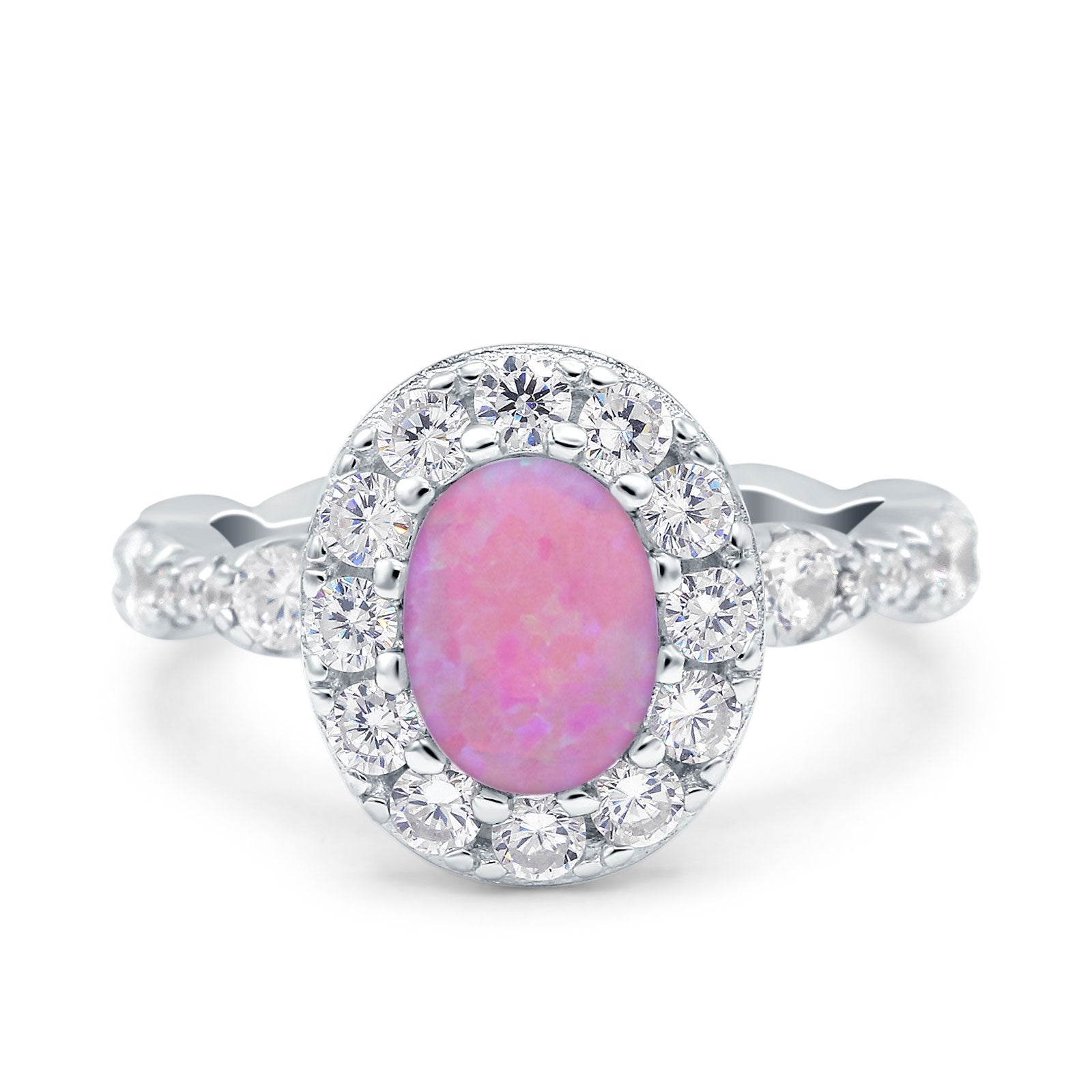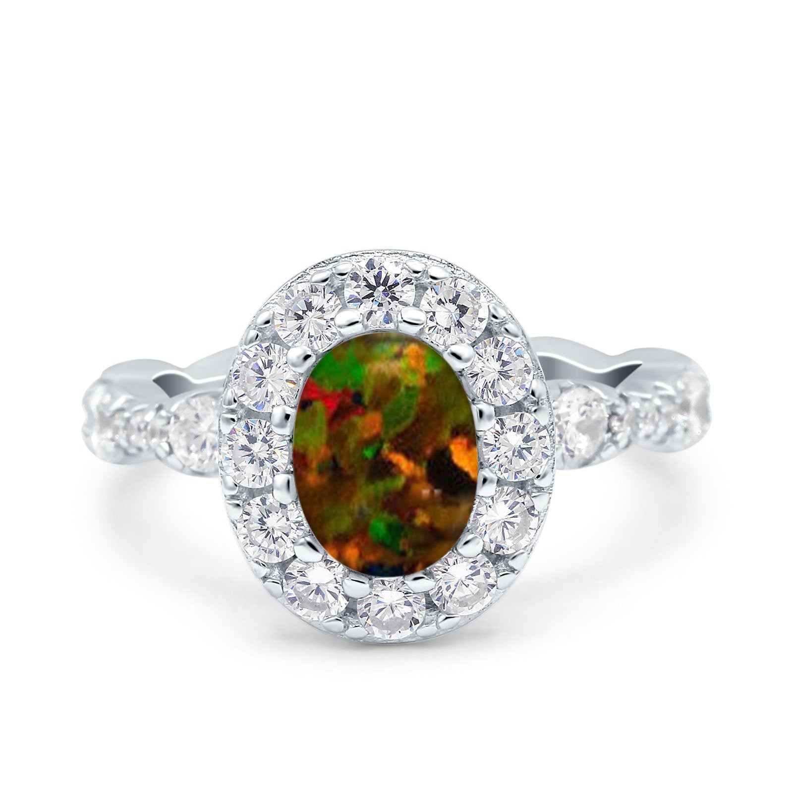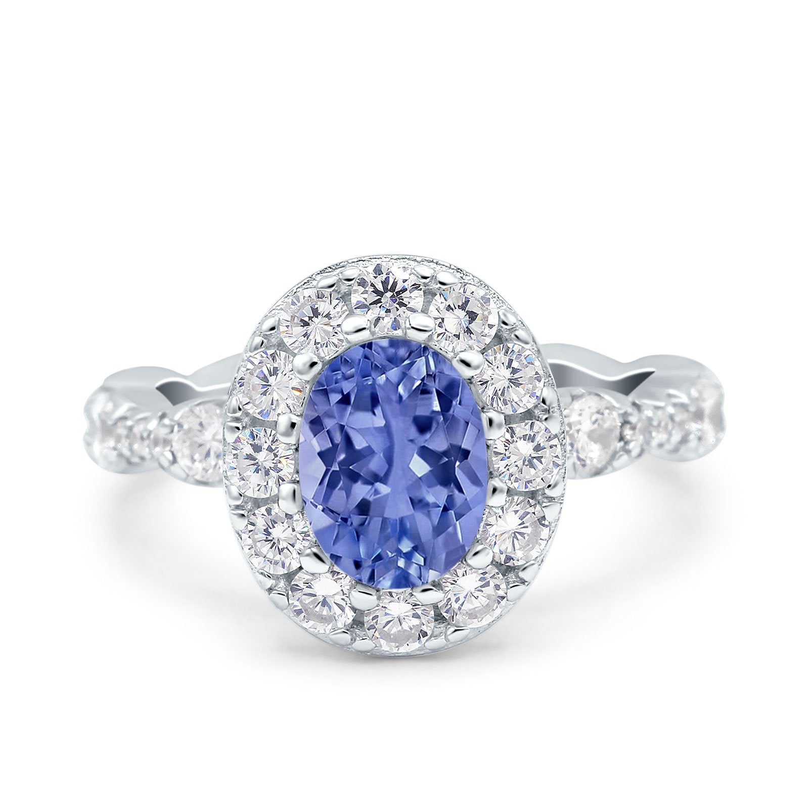 Oval Art Deco Halo Engagement Wedding Bridal Ring Round Simulated Cubic Zirconia 925 Sterling Silver