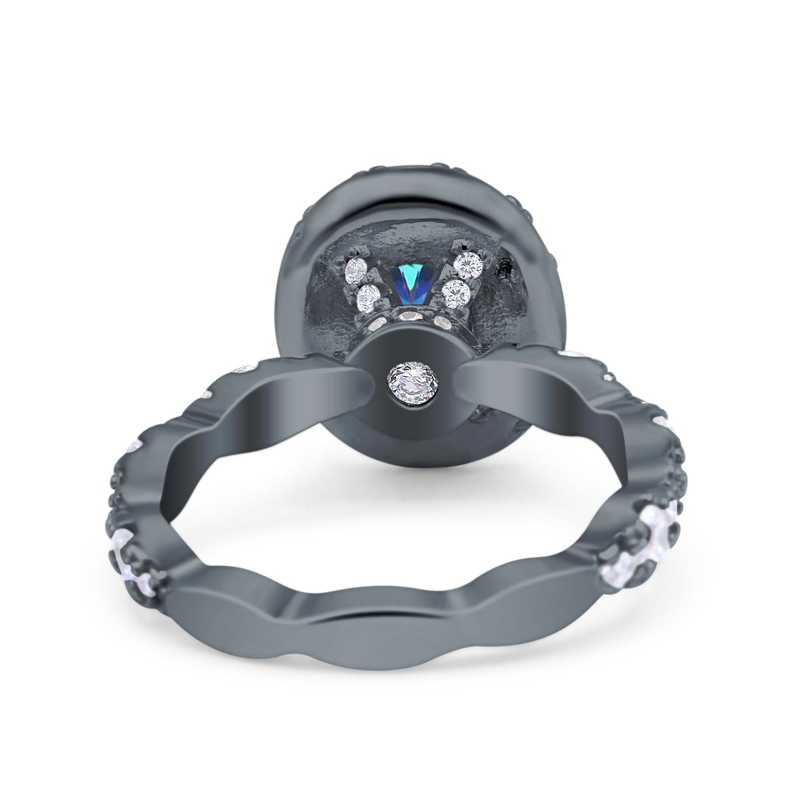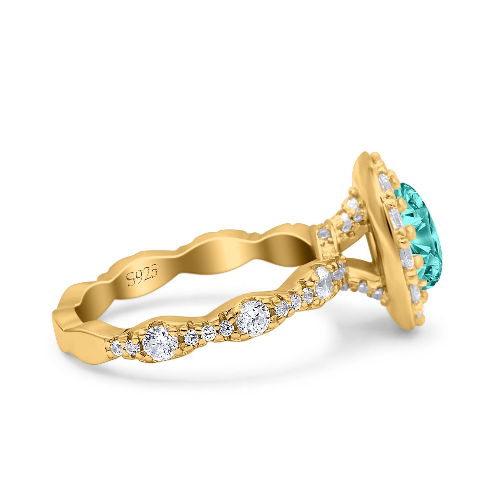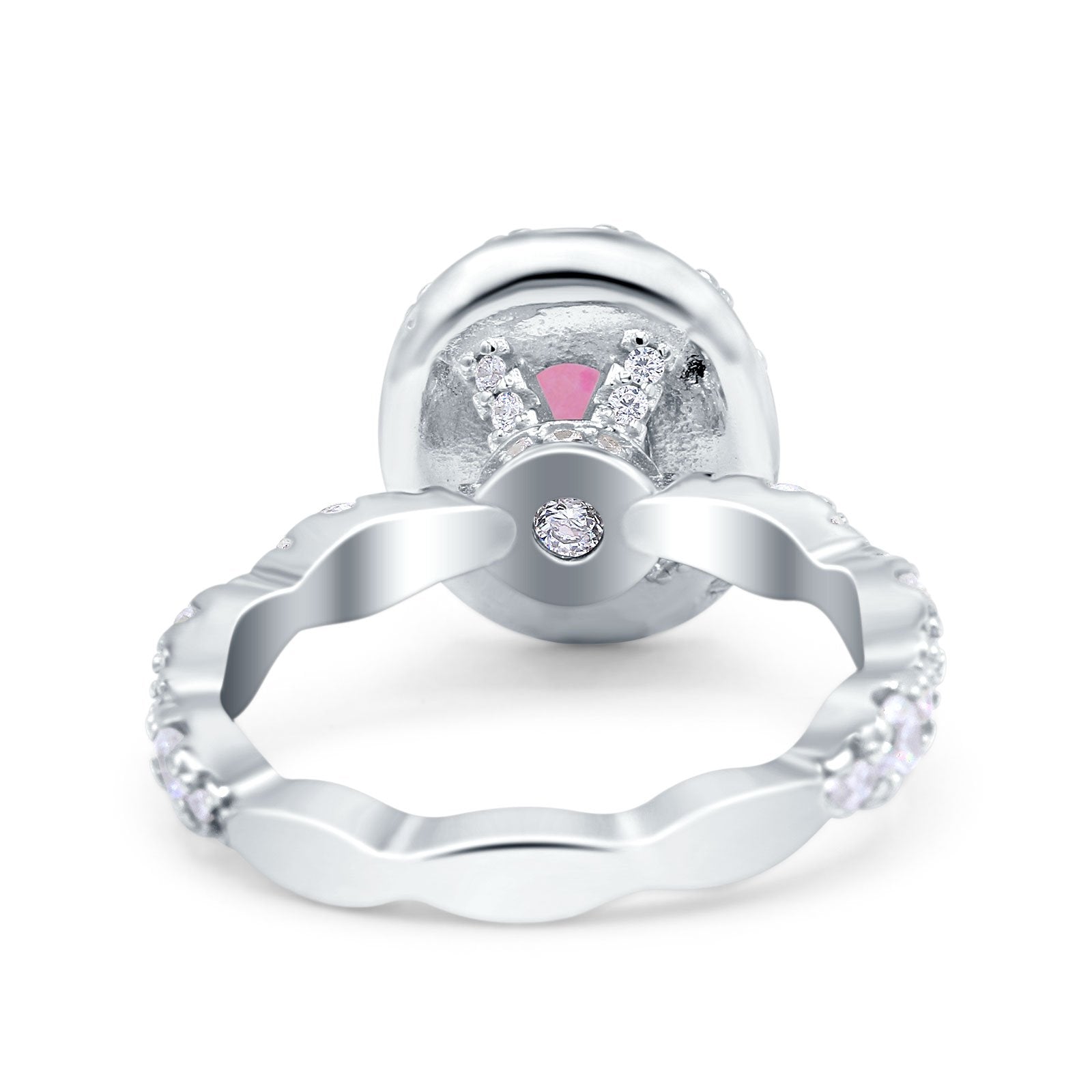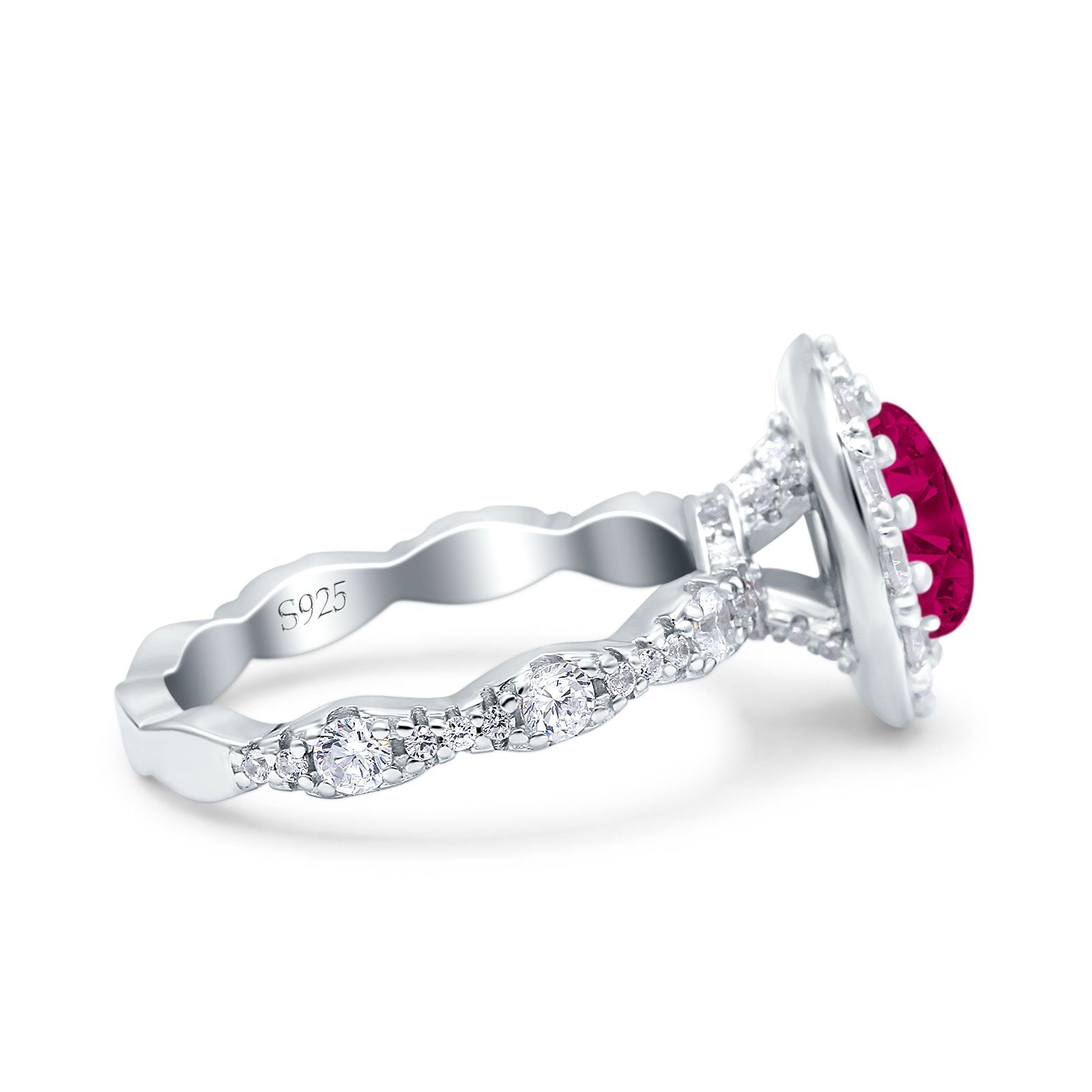 Oval Art Deco Halo Engagement Wedding Bridal Ring Round Simulated Cubic Zirconia 925 Sterling Silver