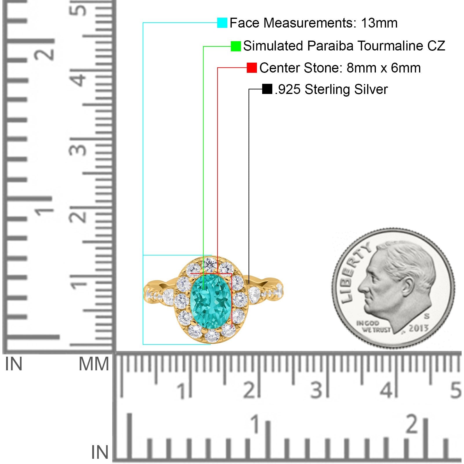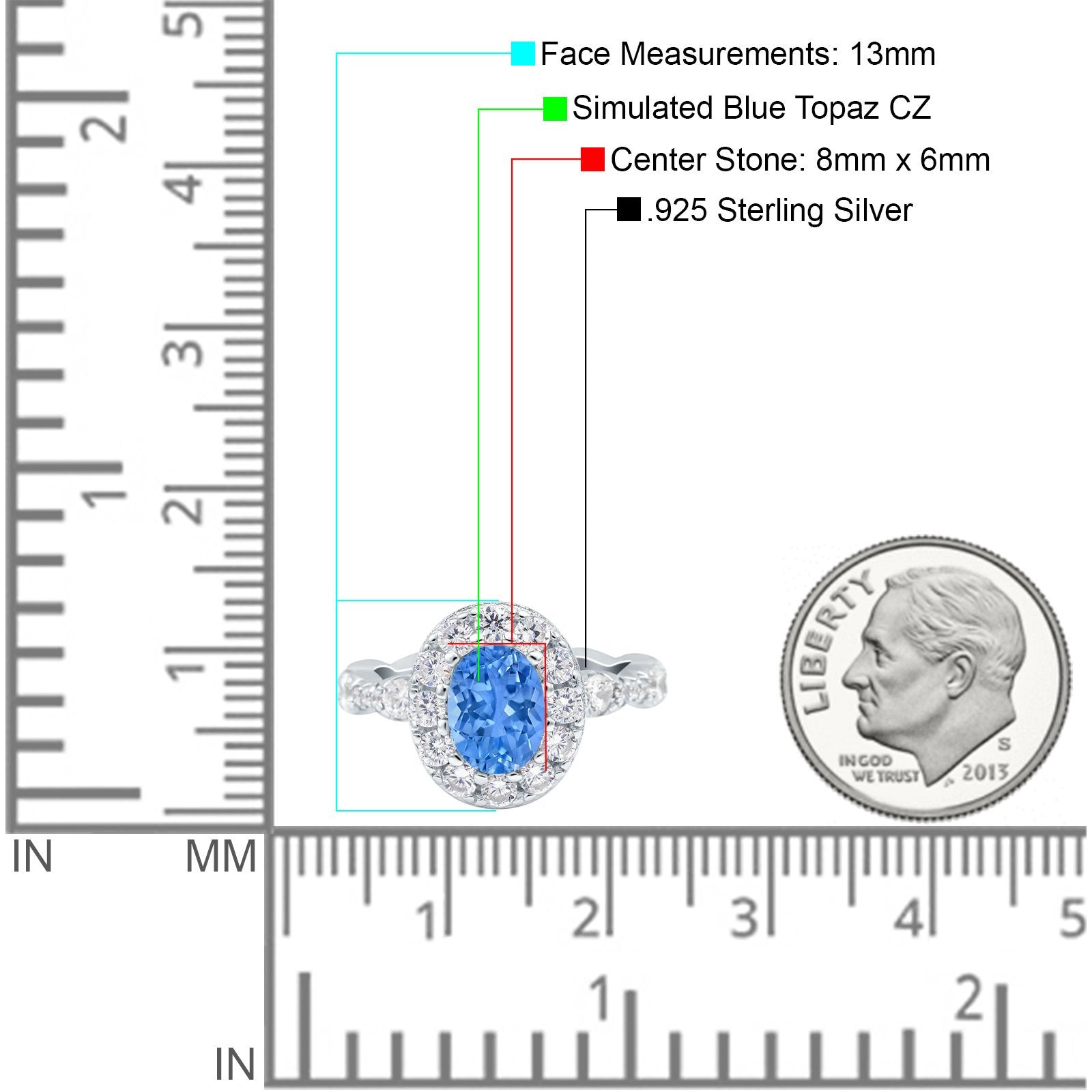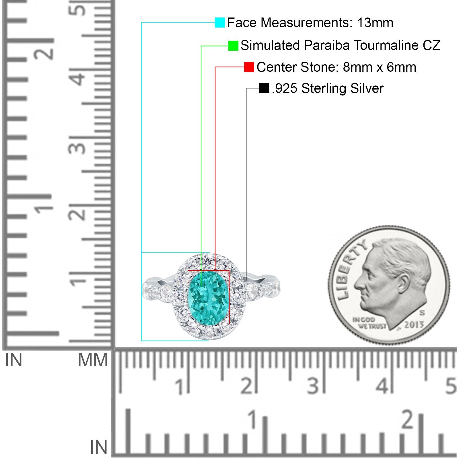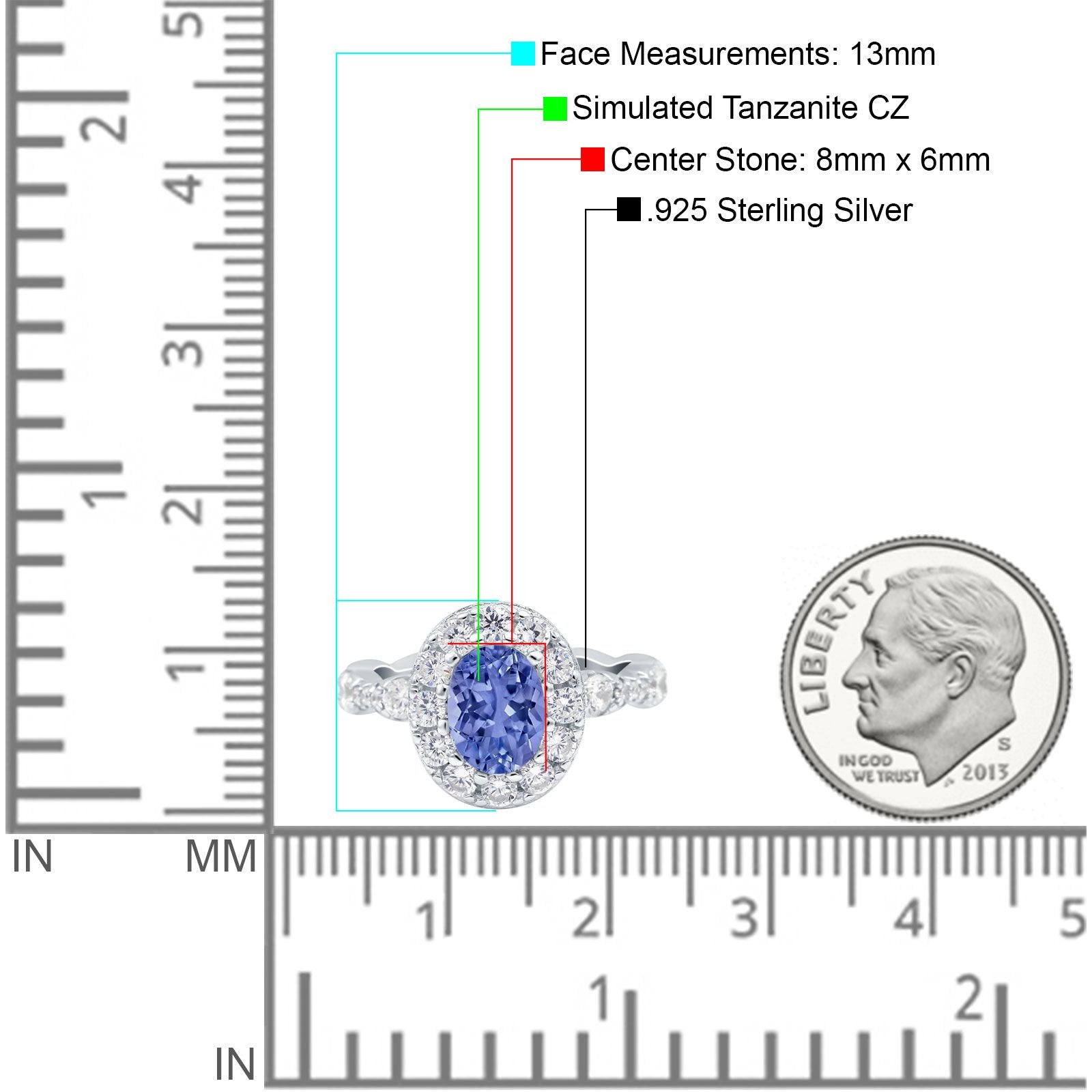 Center Stone Measurements: 8mmx6mm