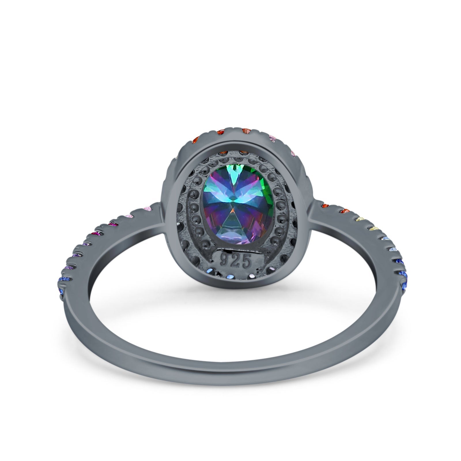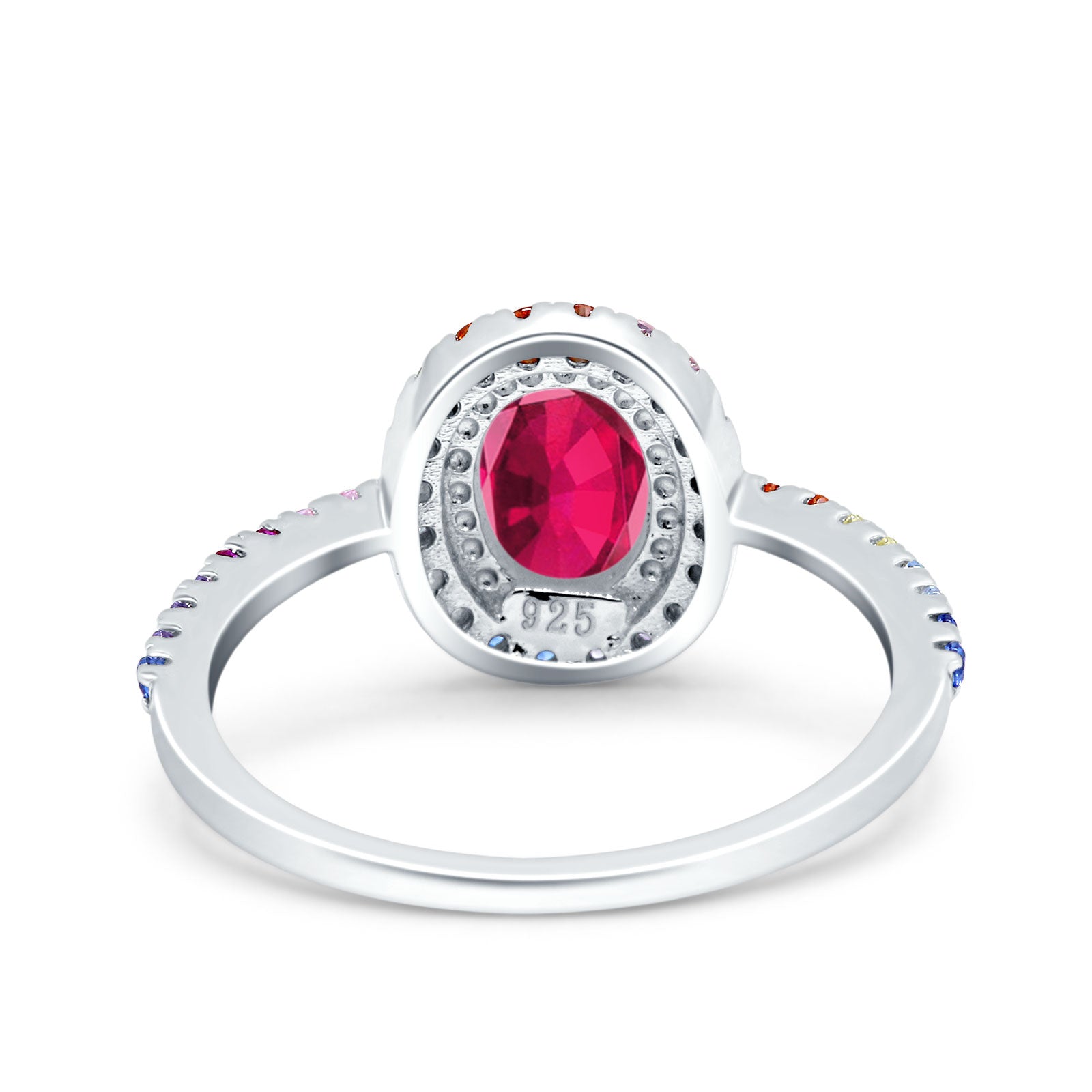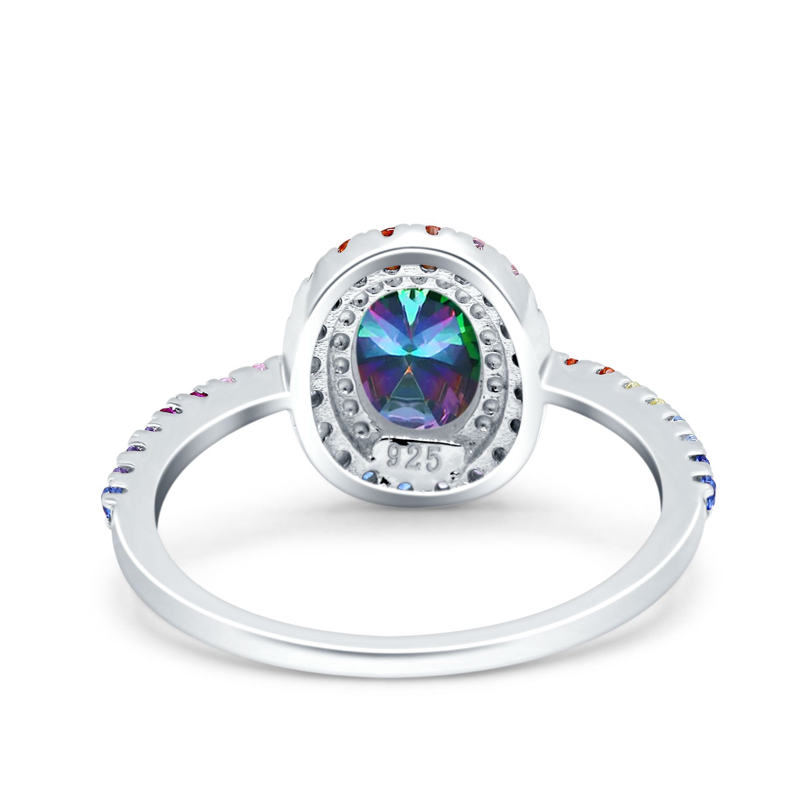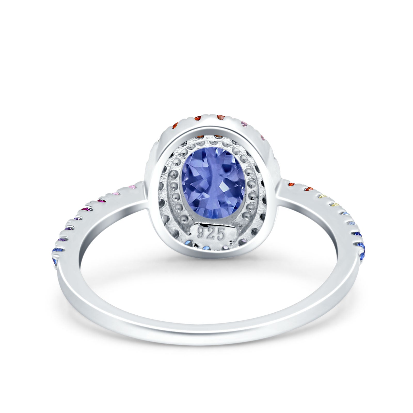 Oval Art Deco Multiple Color Wedding Bridal Ring Simulated Cubic Zirconia 925 Sterling Silver
