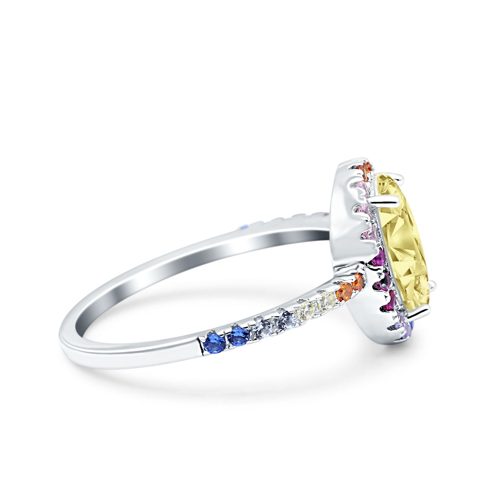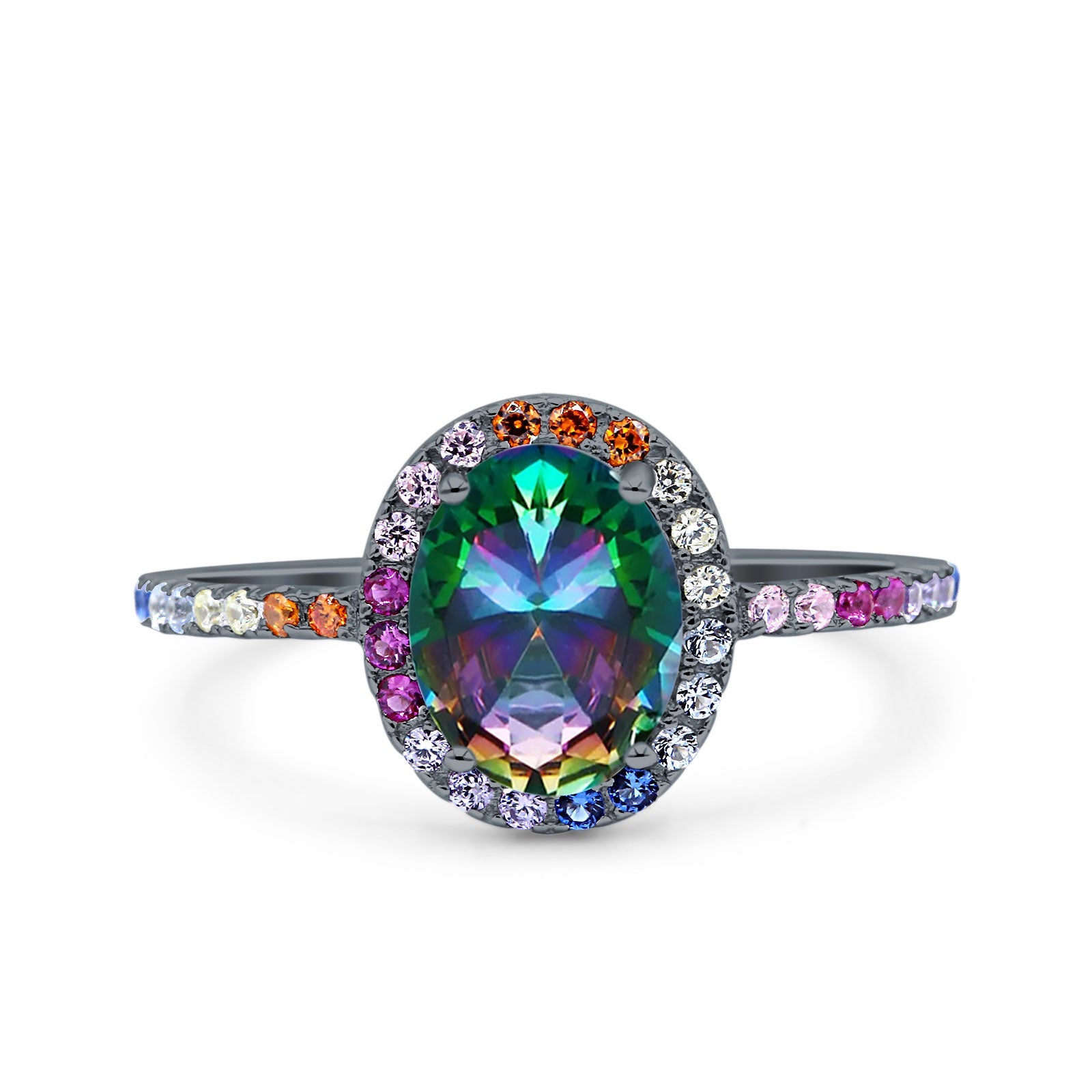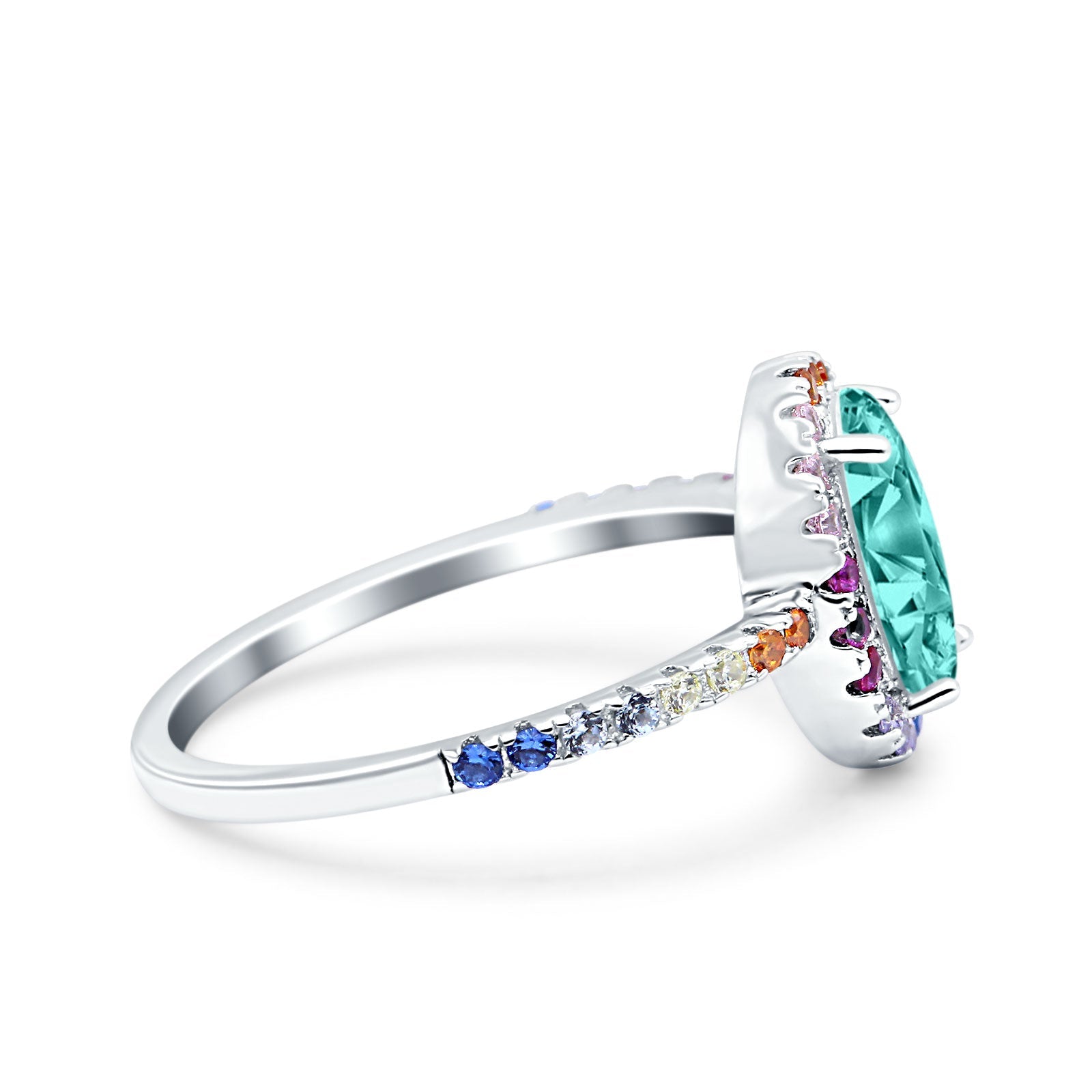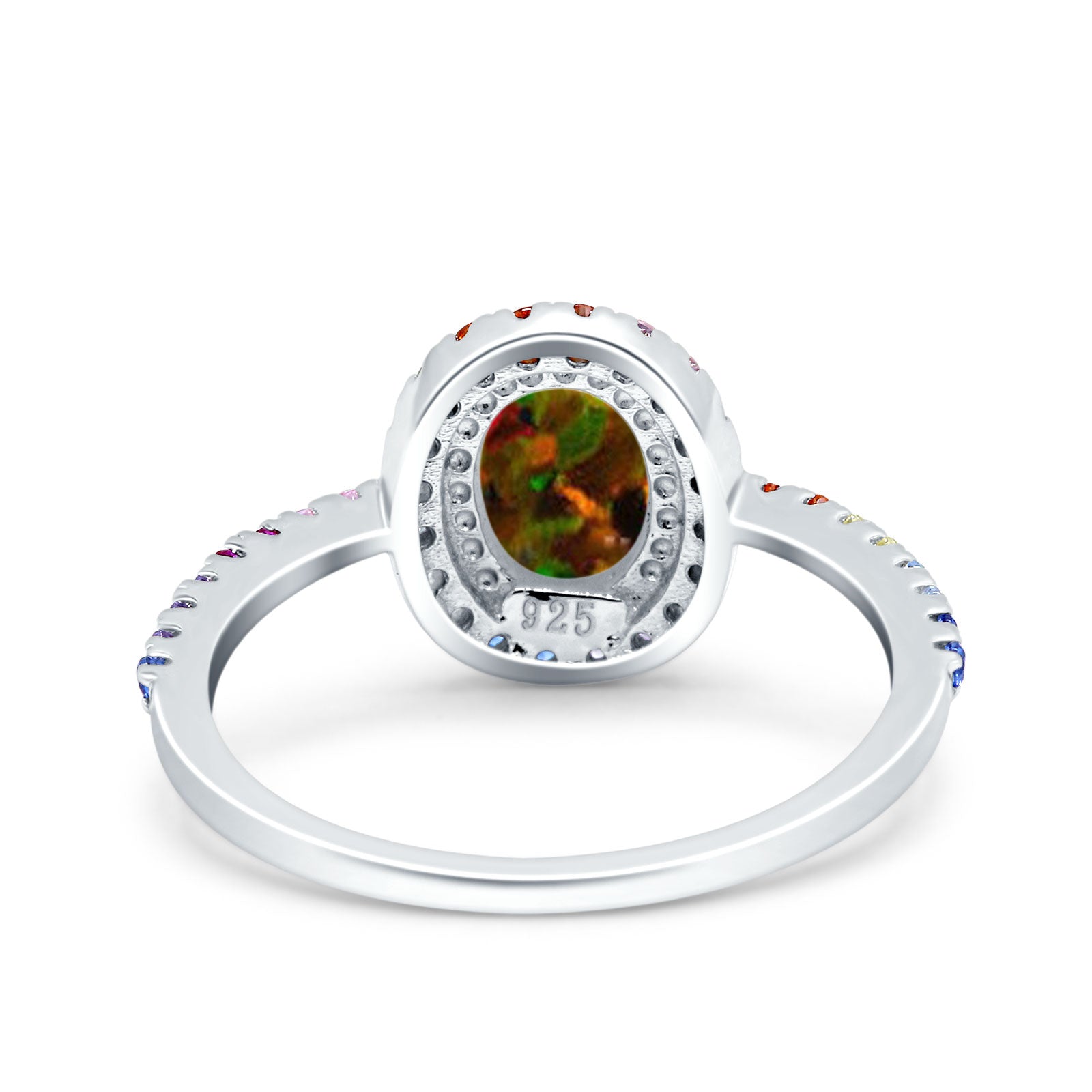 Oval Art Deco Multiple Color Wedding Bridal Ring Simulated Cubic Zirconia 925 Sterling Silver