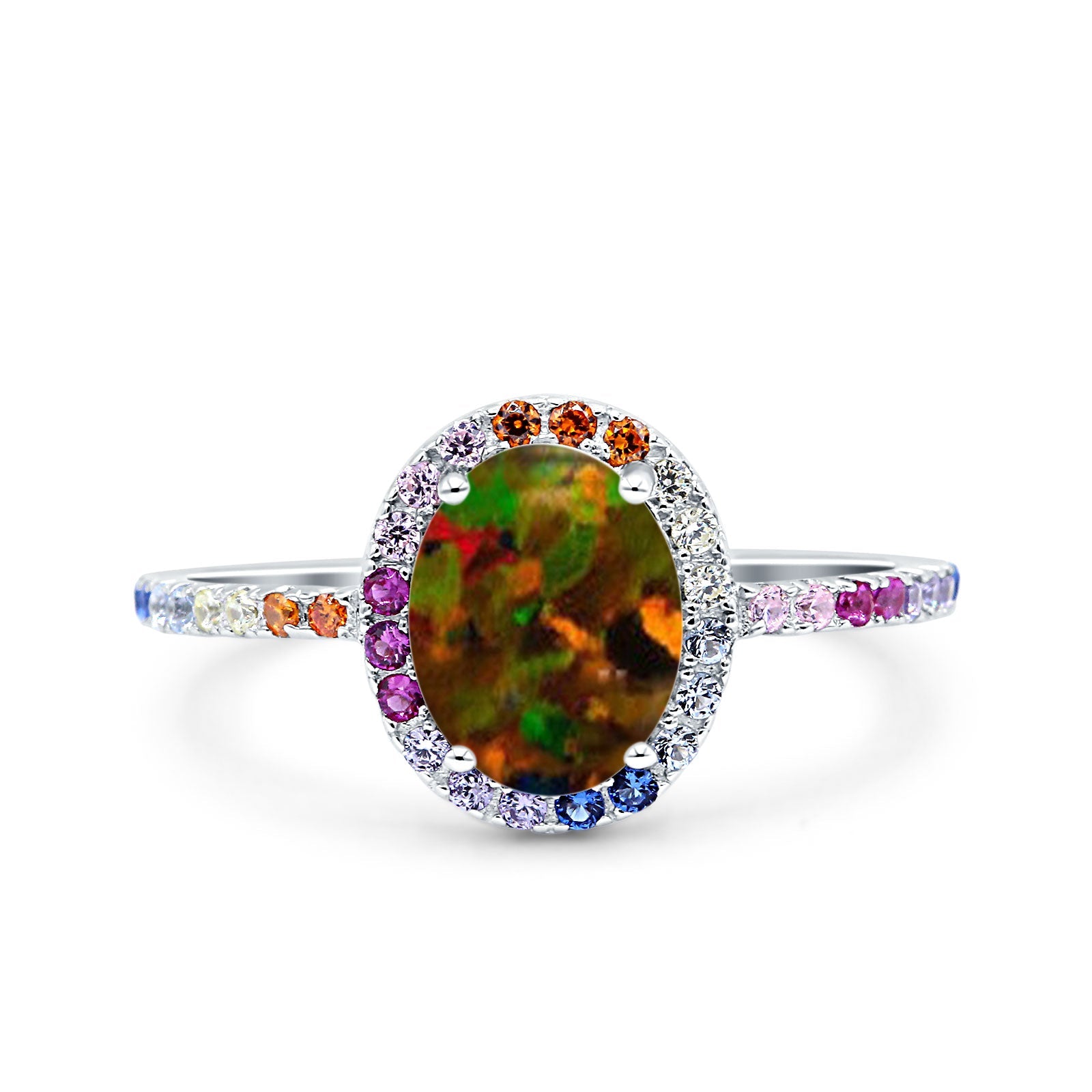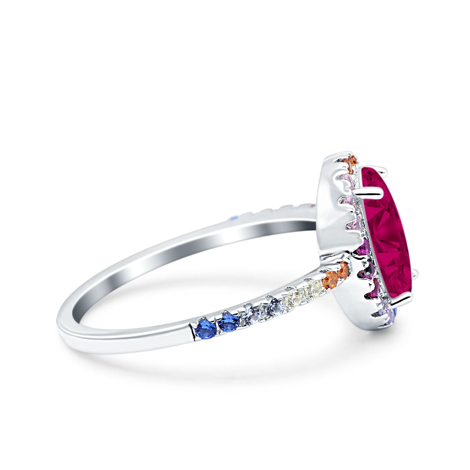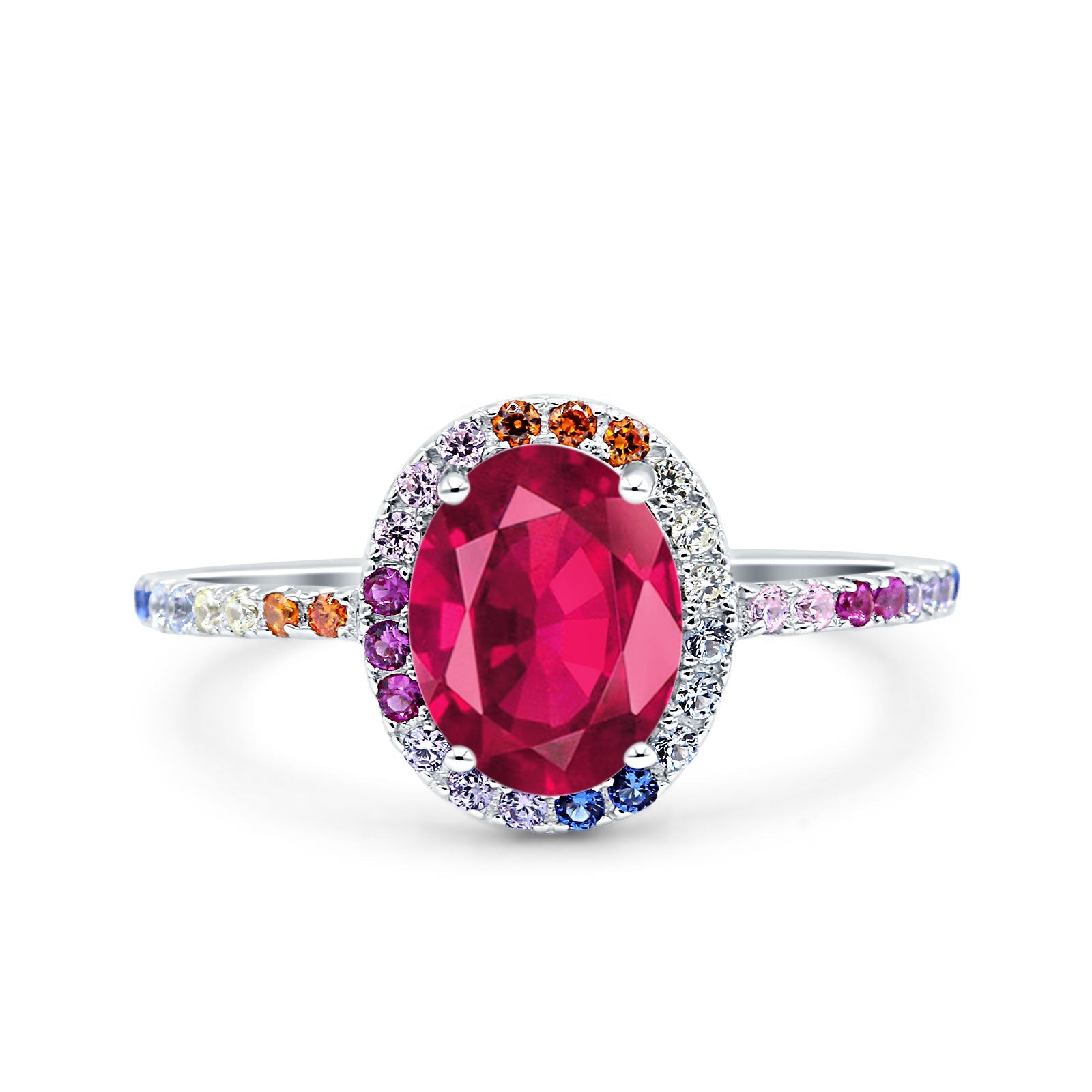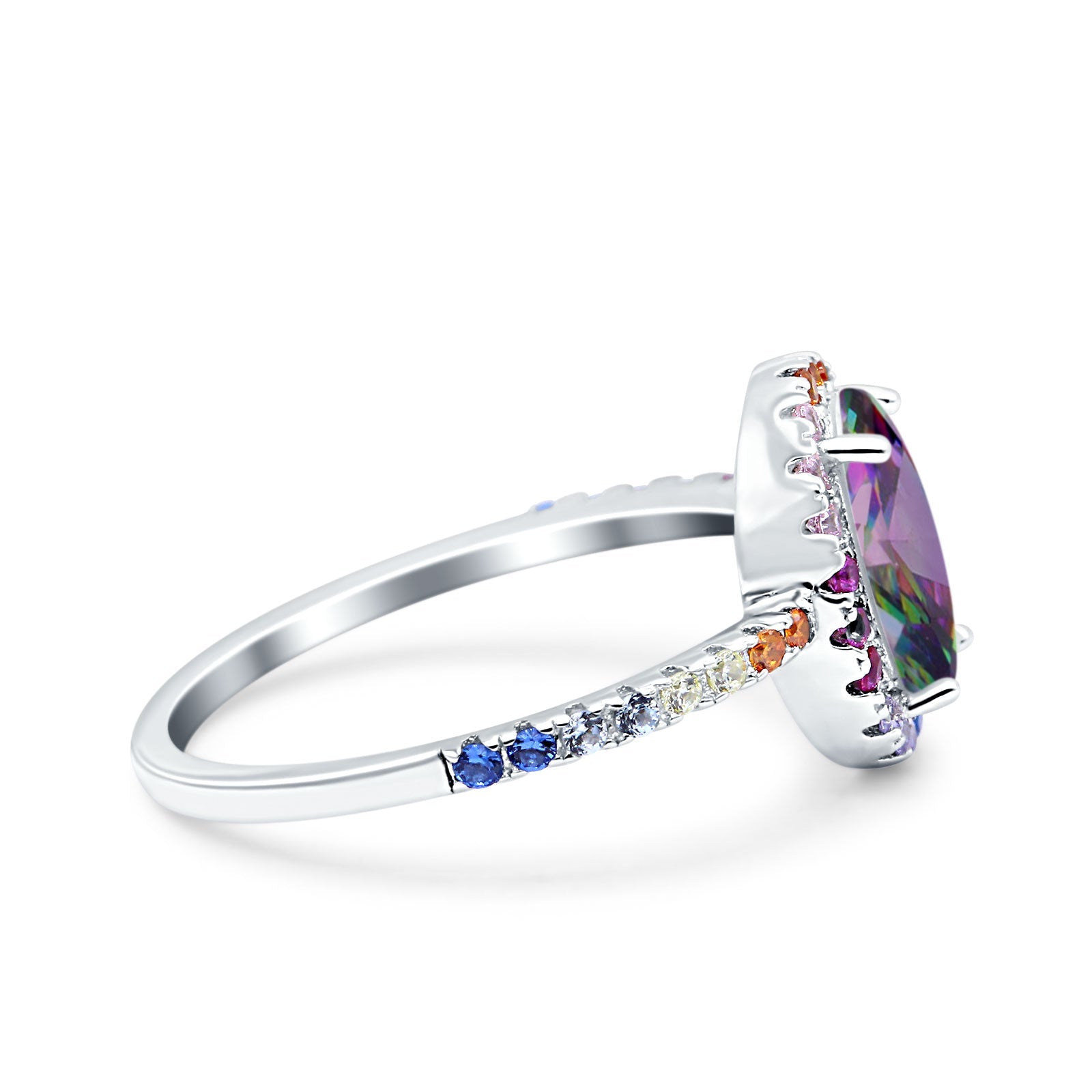Oval Art Deco Multiple Color Wedding Bridal Ring Simulated Cubic Zirconia 925 Sterling Silver