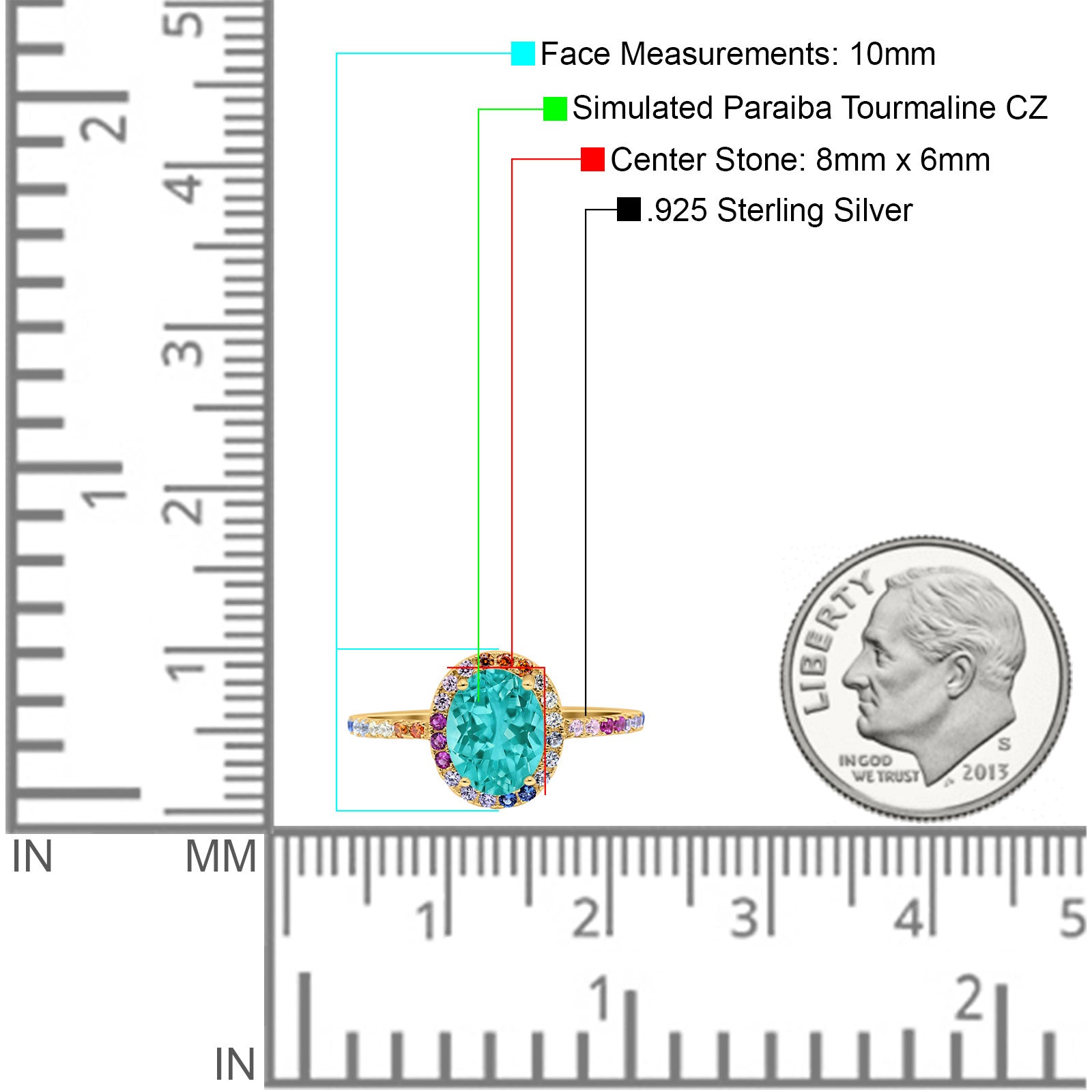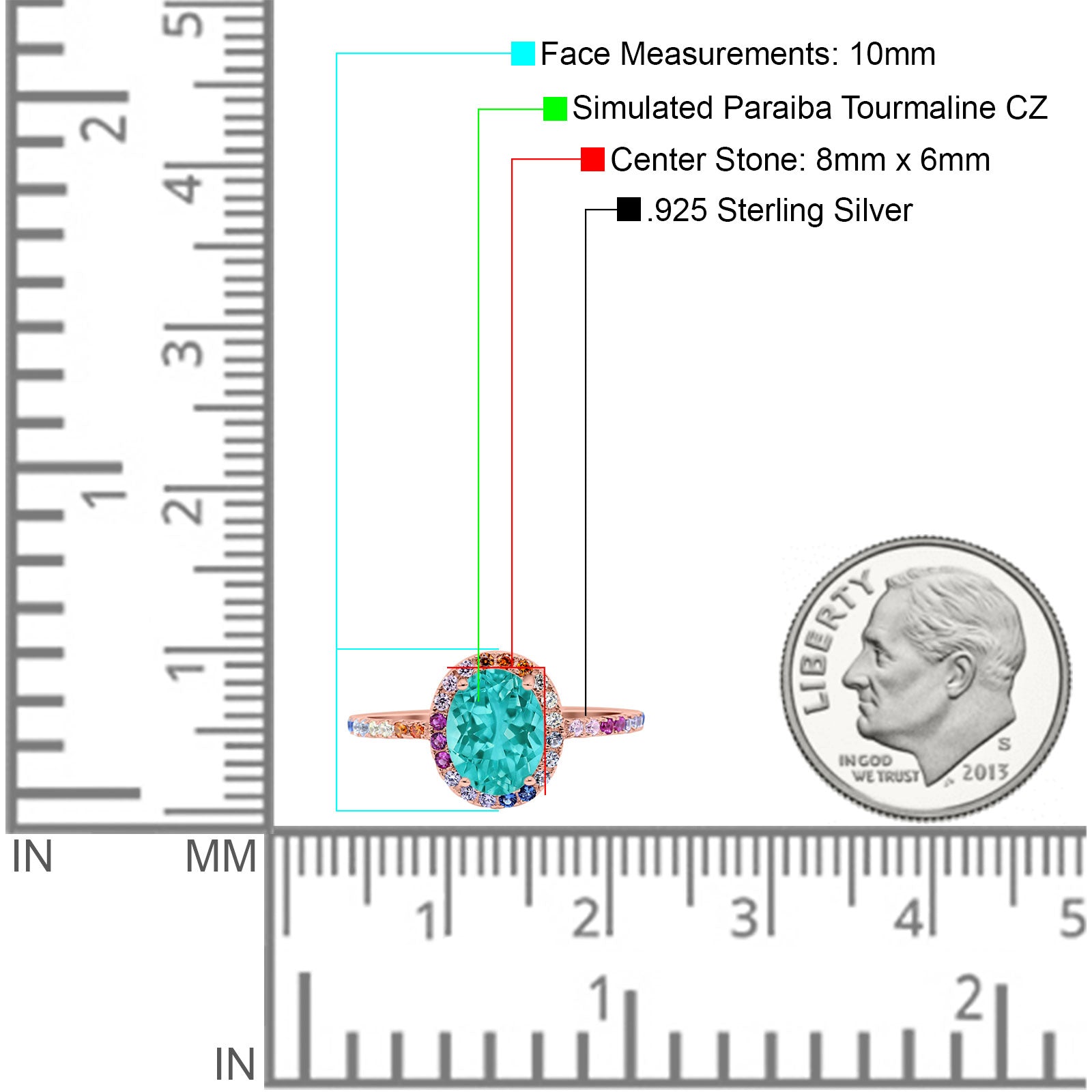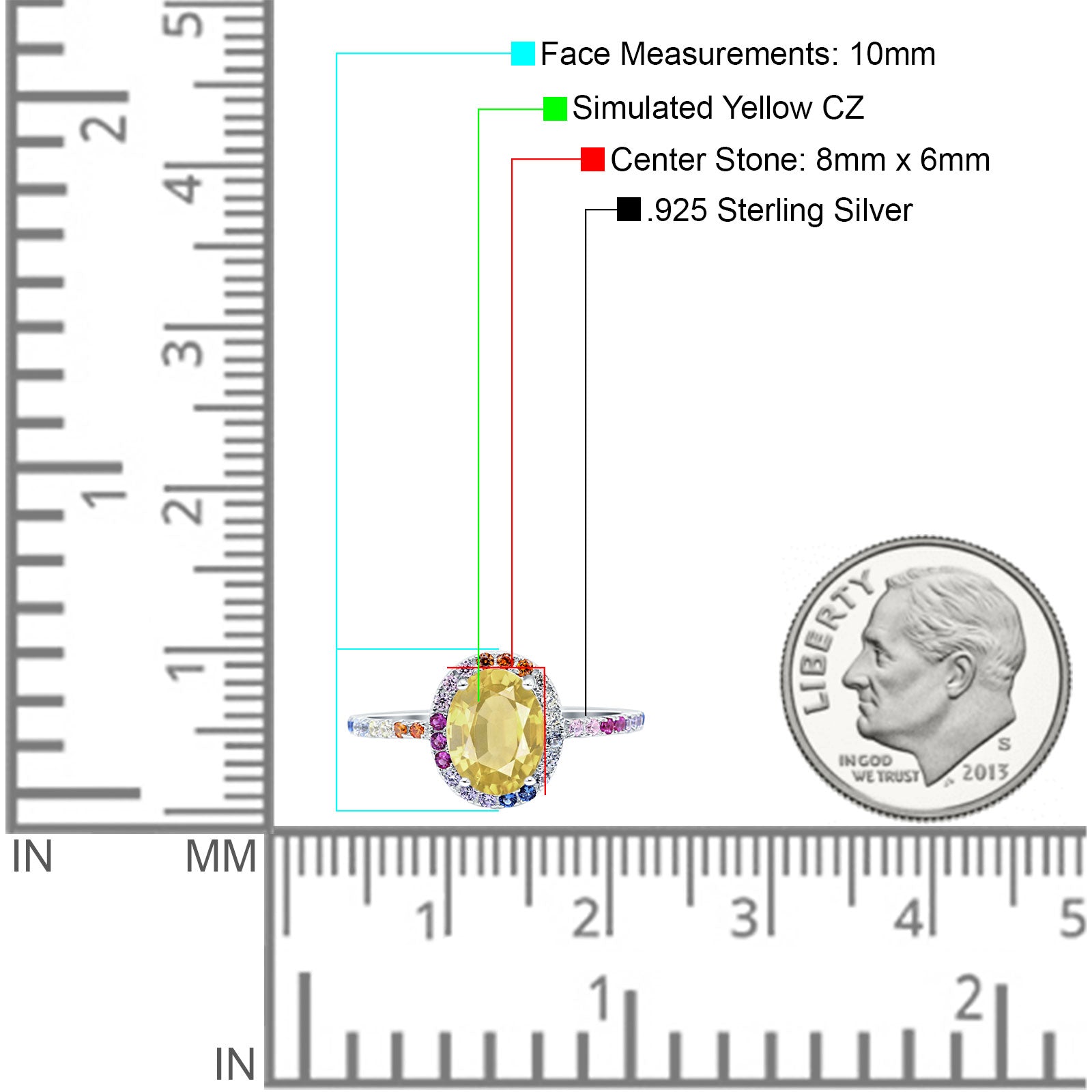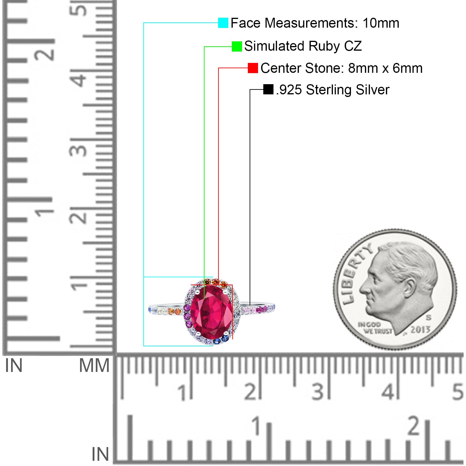 Oval Art Deco Multiple Color Wedding Bridal Ring Simulated Cubic Zirconia 925 Sterling Silver
