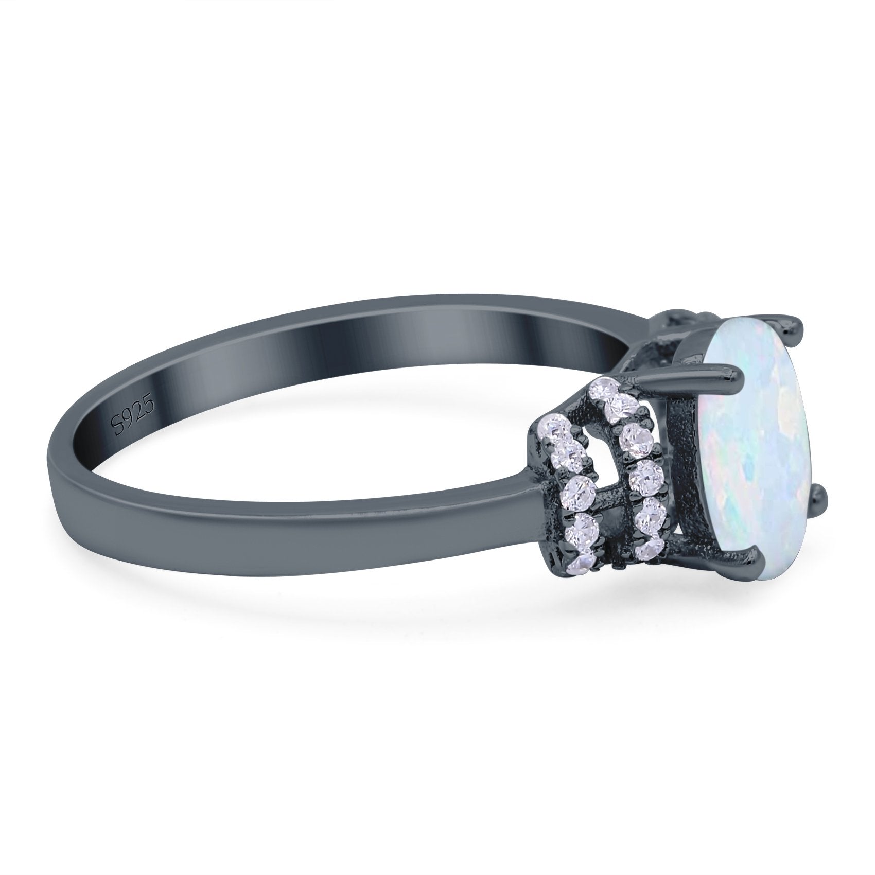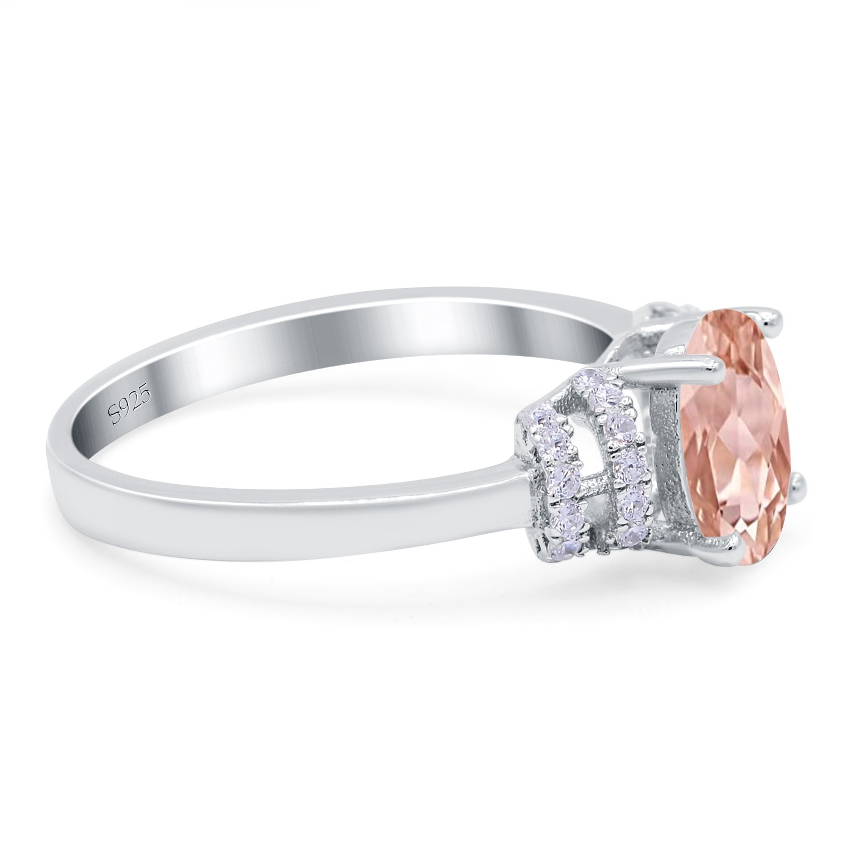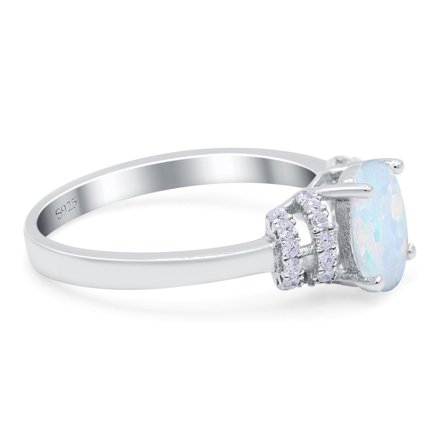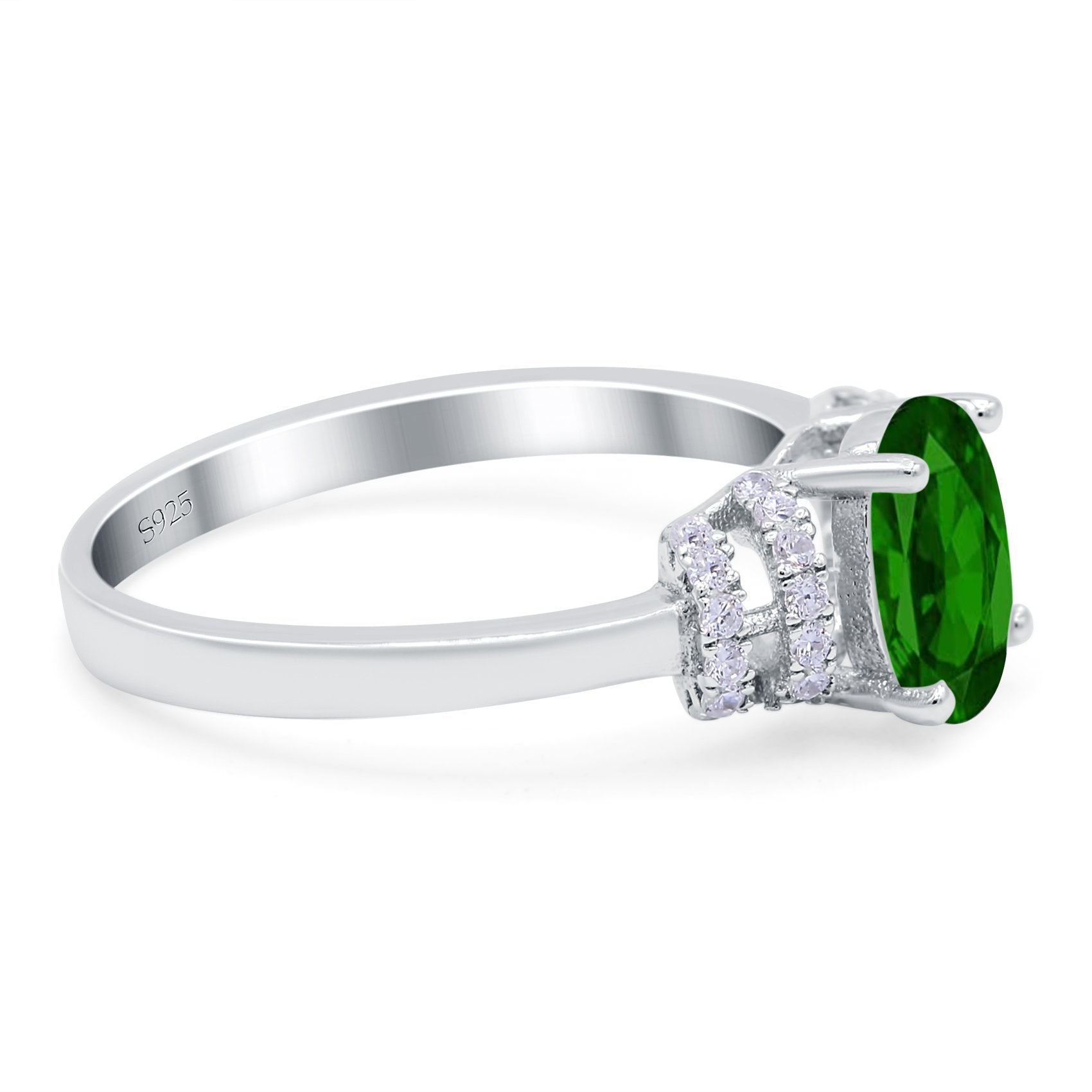 Oval Art Deco Wedding Bridal Ring Simulated Cubic Zirconia 925 Sterling Silver