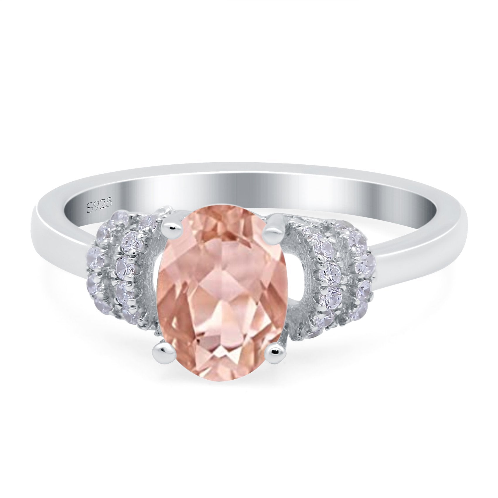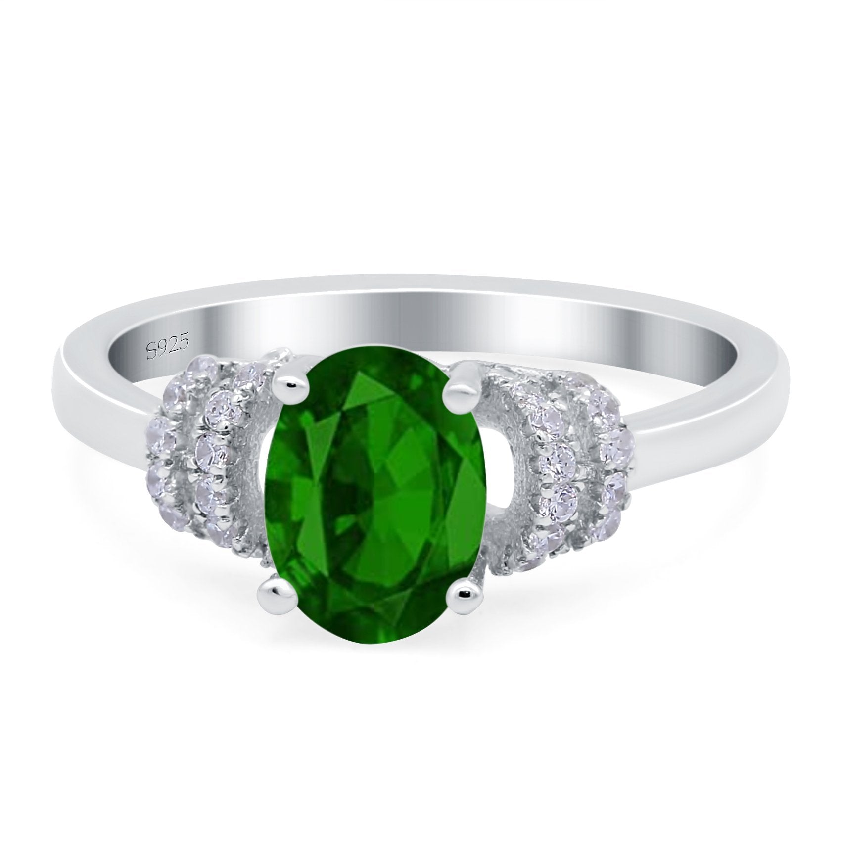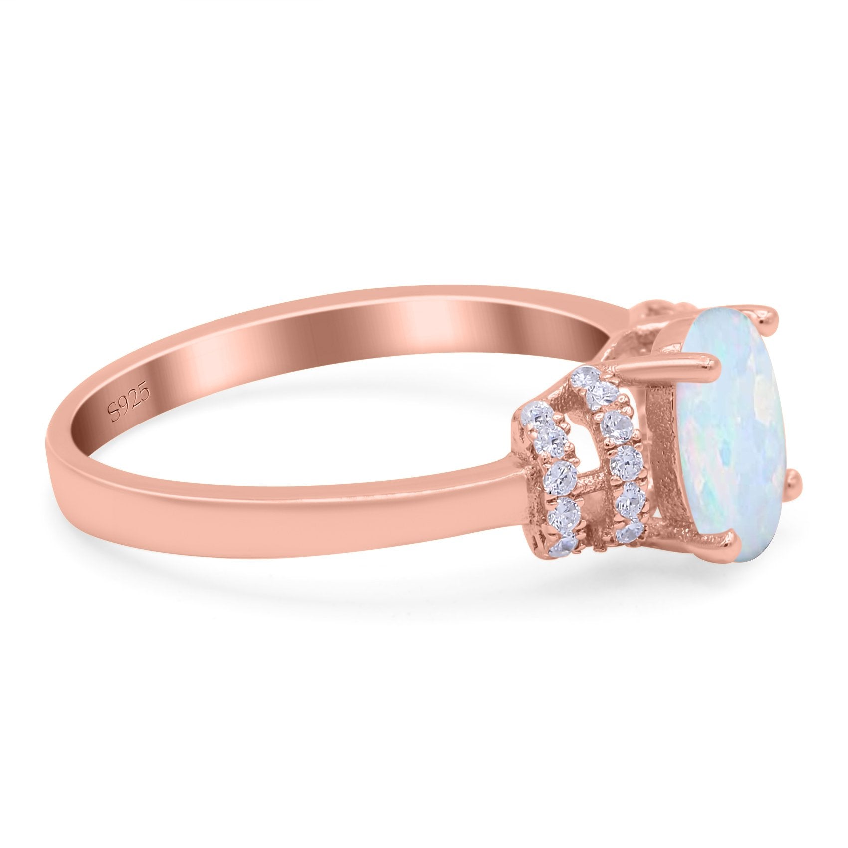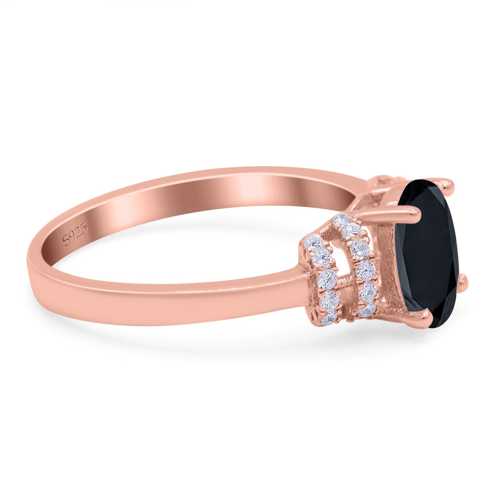 Oval Art Deco Wedding Bridal Ring Simulated Cubic Zirconia 925 Sterling Silver