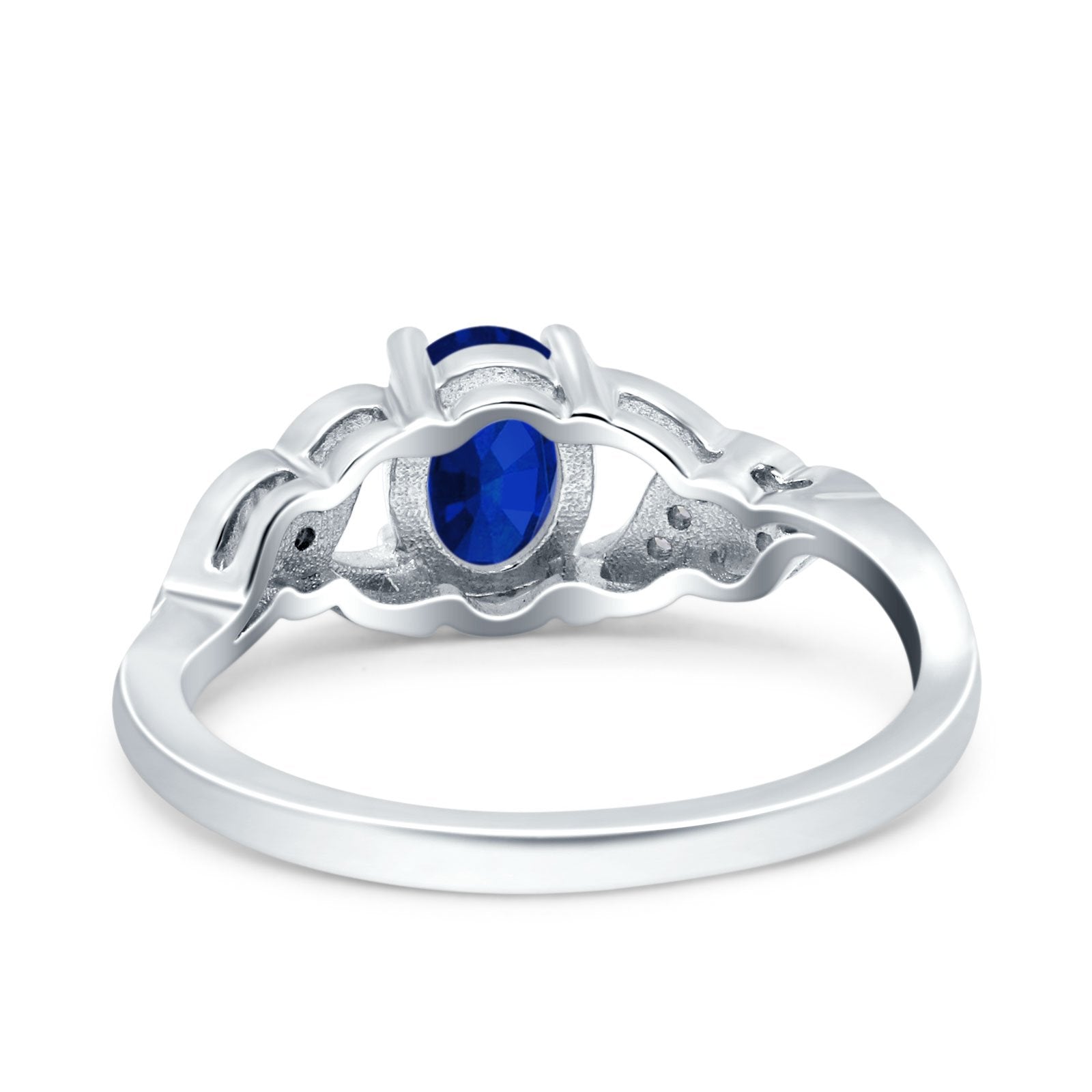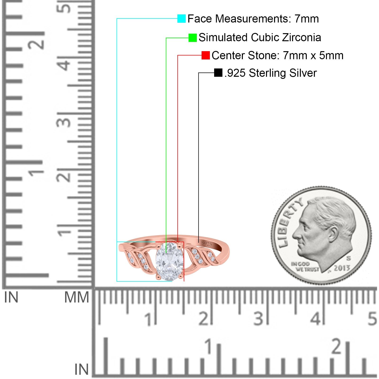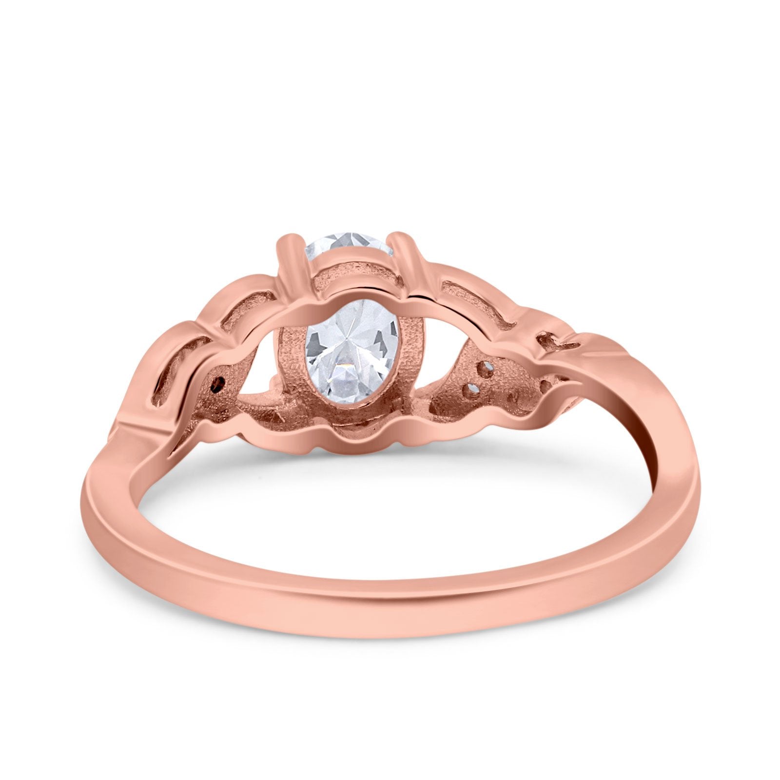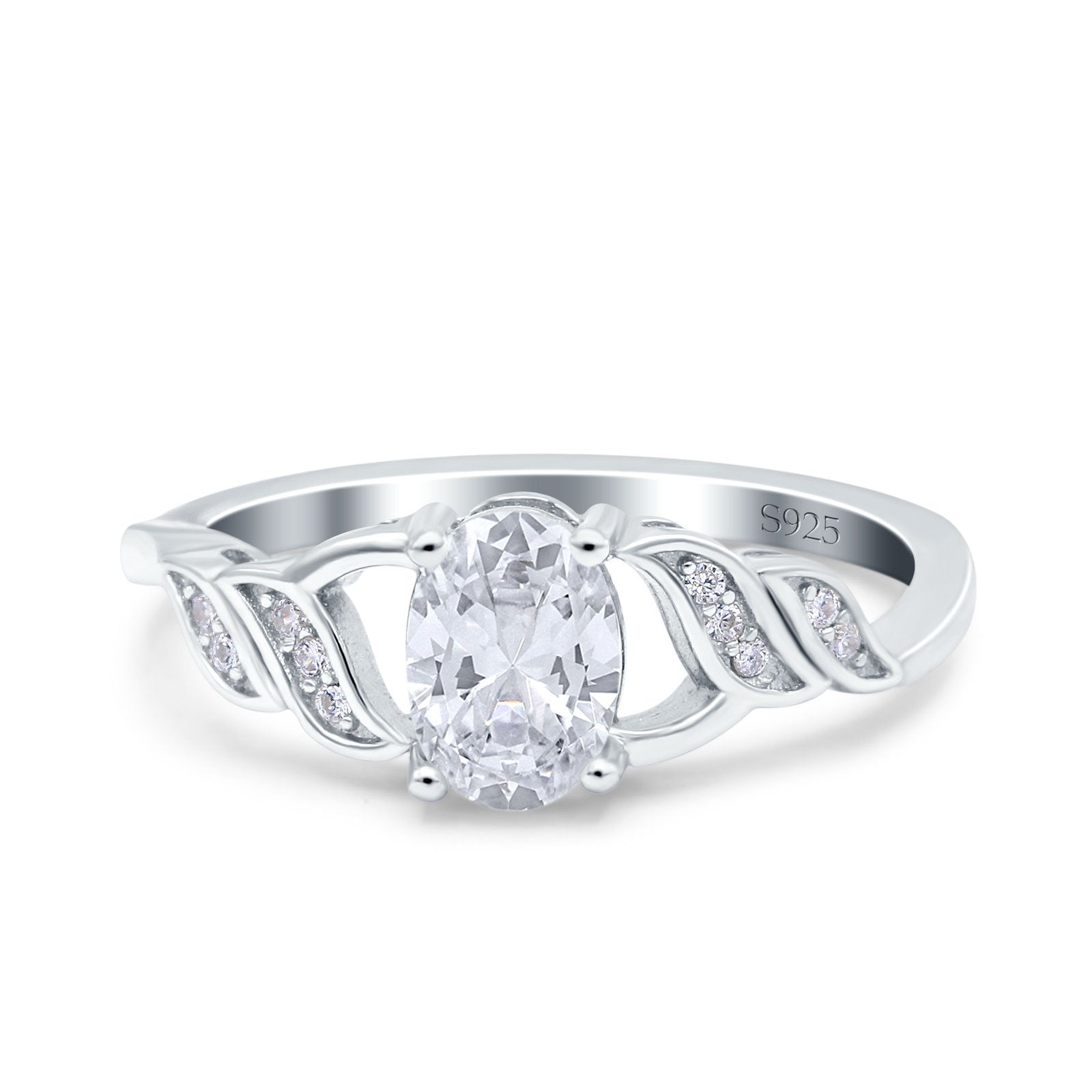 Oval Art Deco Wedding Engagement Bridal Ring Round Simulated Cubic Zirconia 925 Sterling Silver