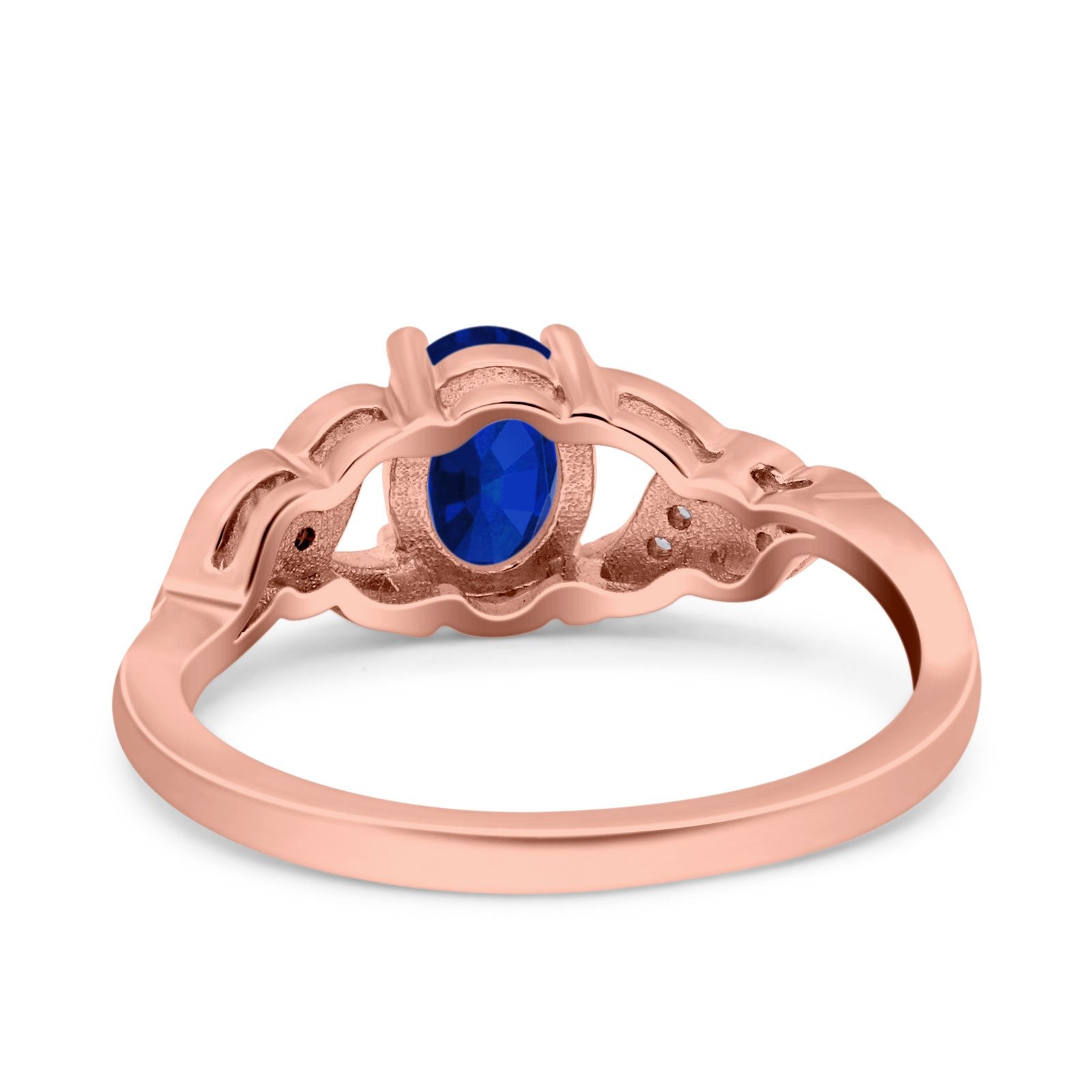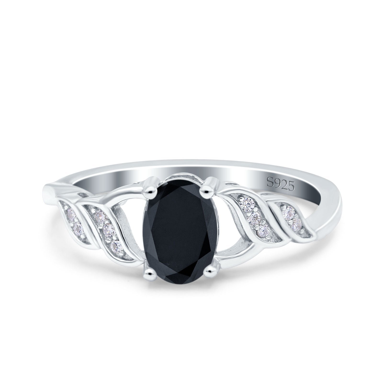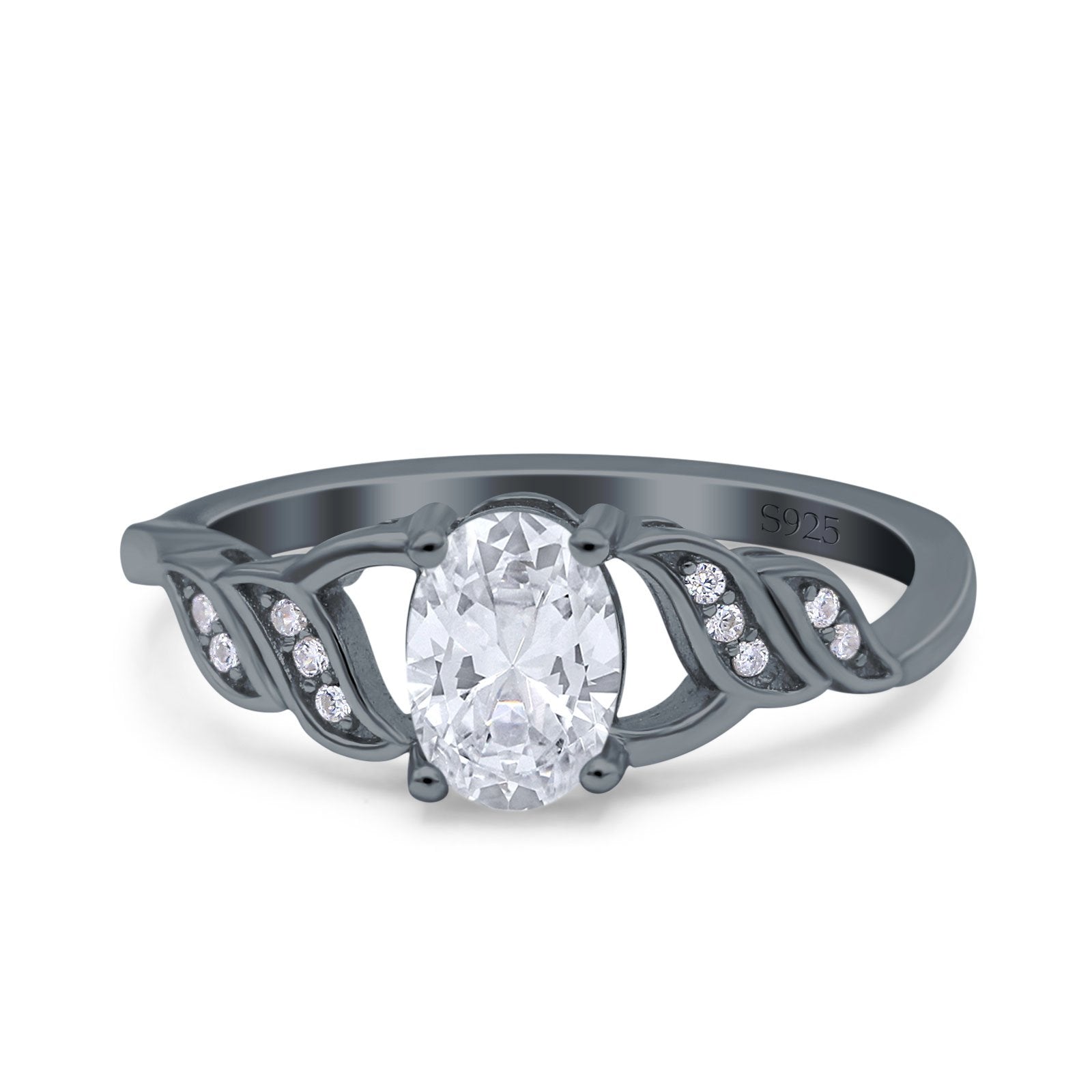 Oval Art Deco Wedding Engagement Bridal Ring Round Simulated Cubic Zirconia 925 Sterling Silver