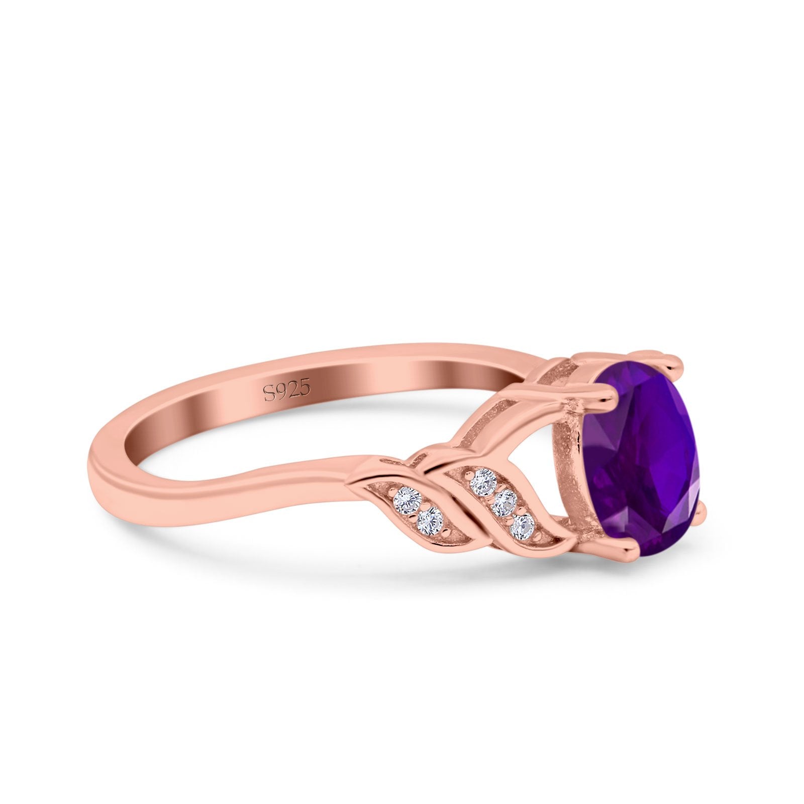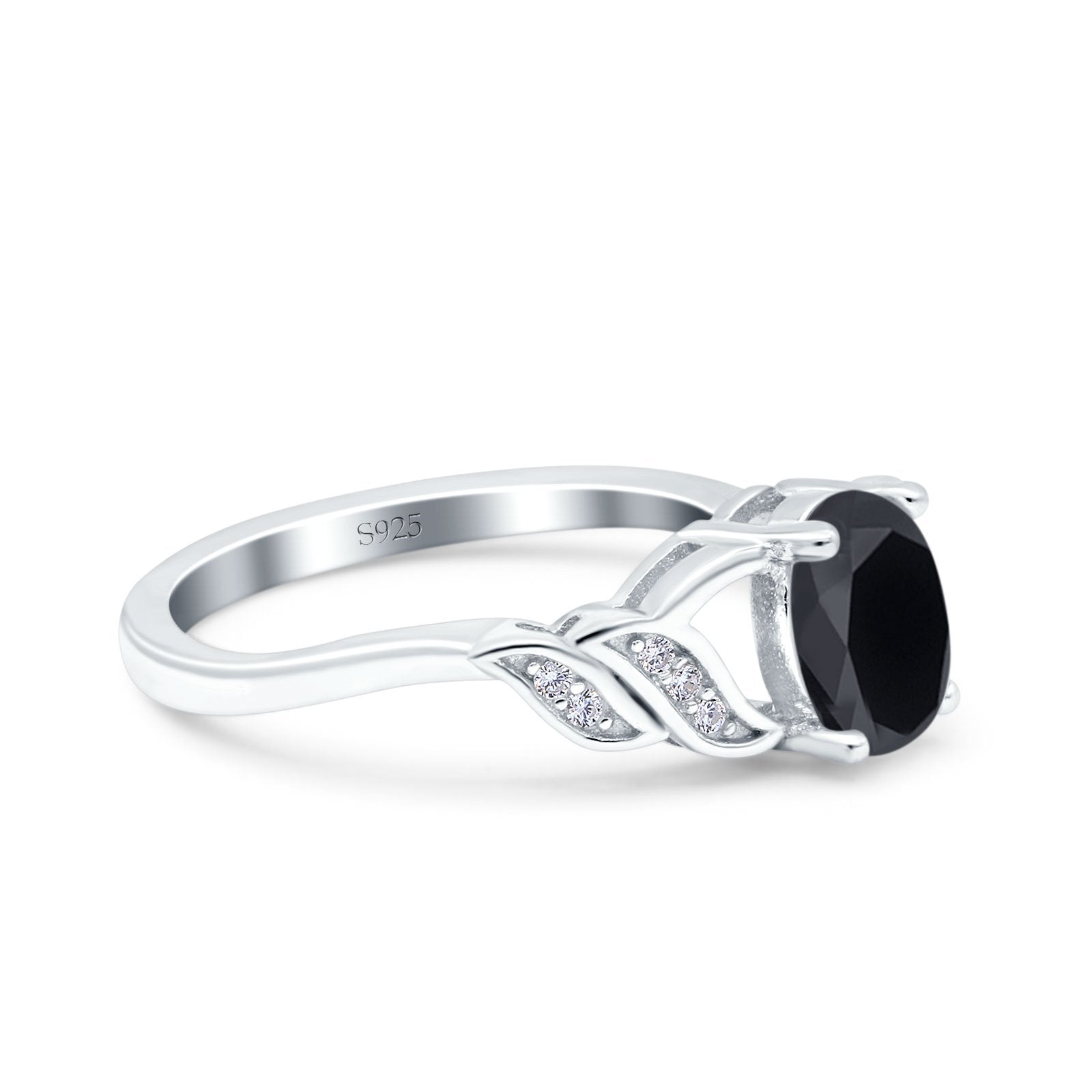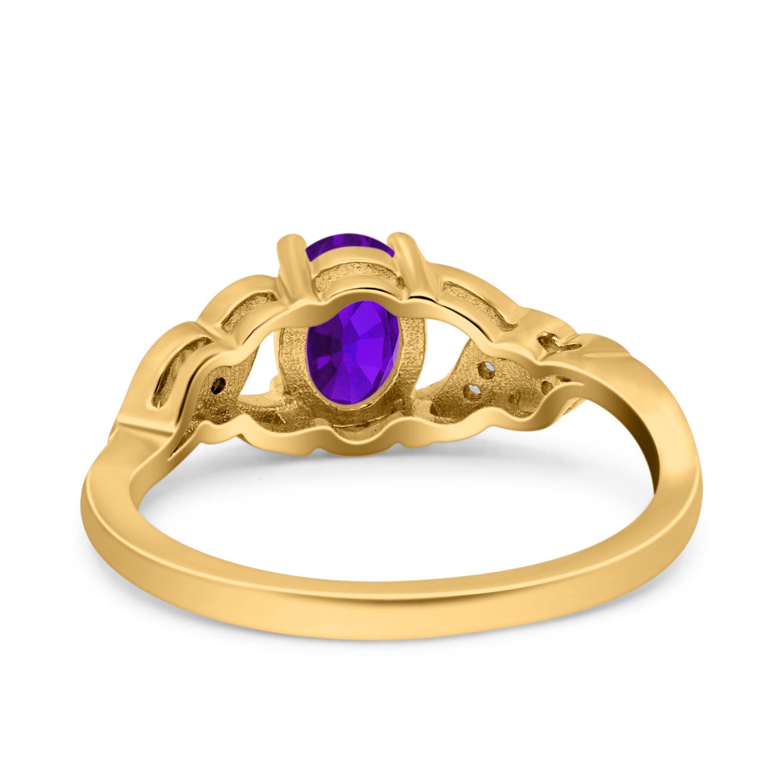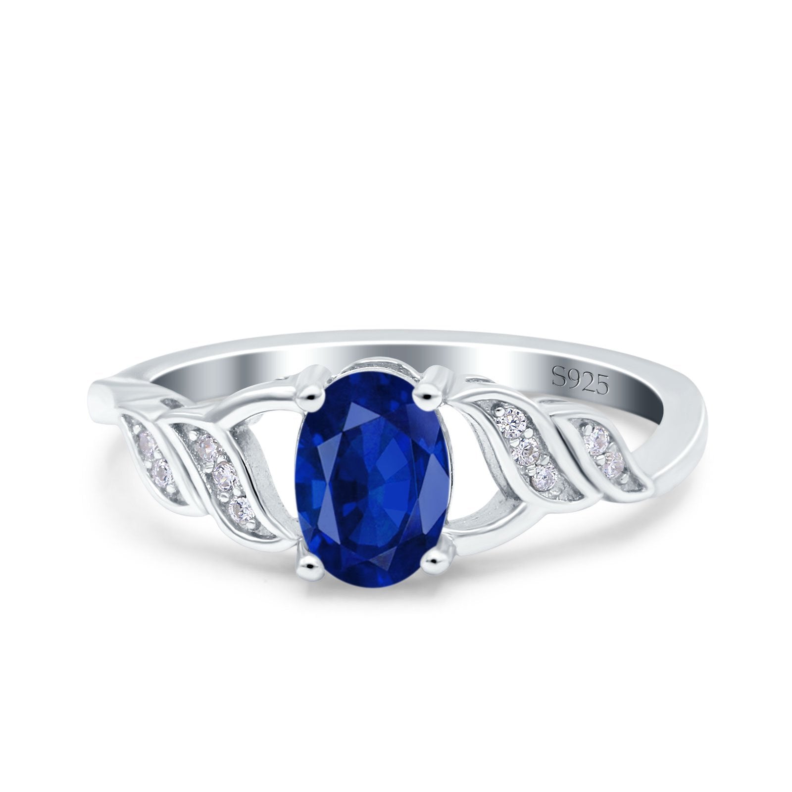 Oval Art Deco Wedding Engagement Bridal Ring Round Simulated Cubic Zirconia 925 Sterling Silver