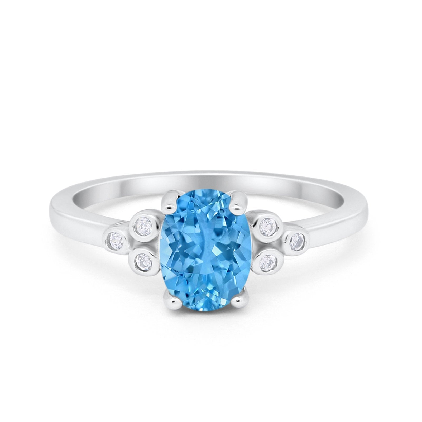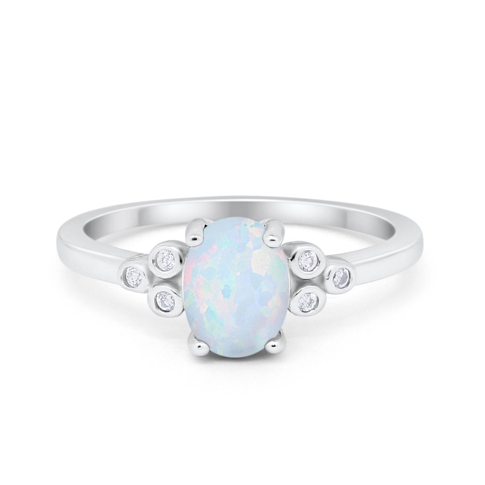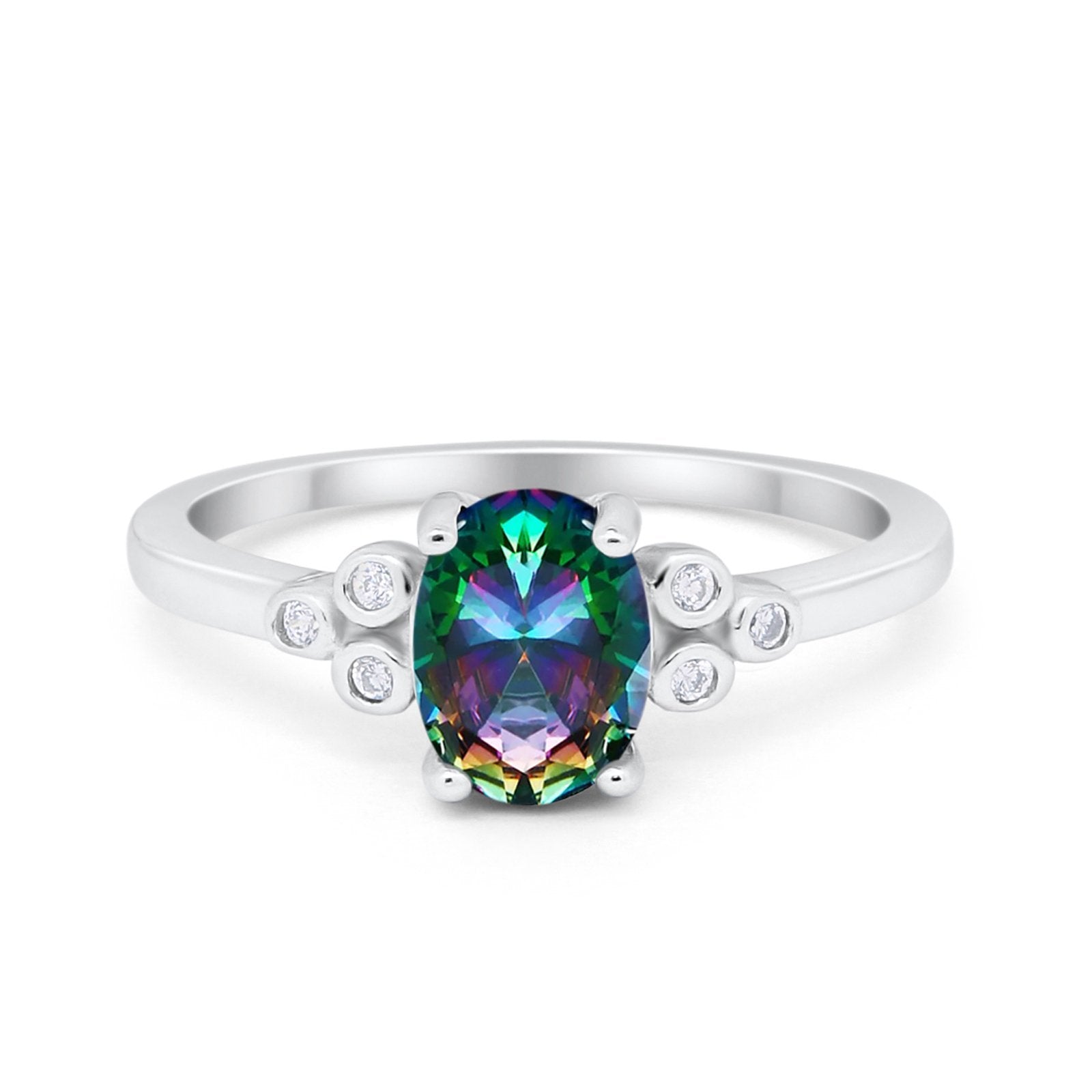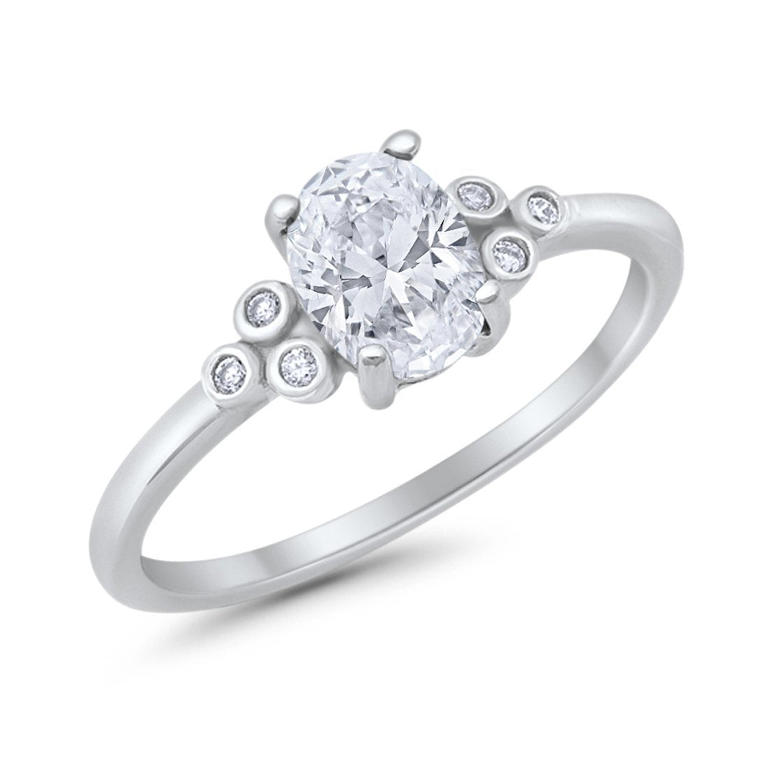 Oval Art Deco Wedding Engagement Ring Round Simulated Cubic Zirconia 925 Sterling Silver