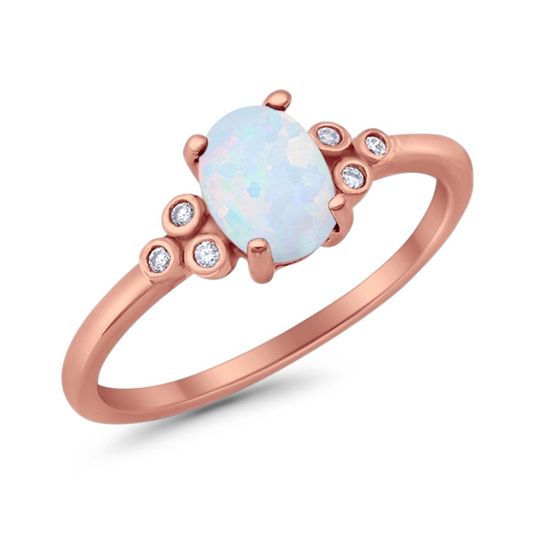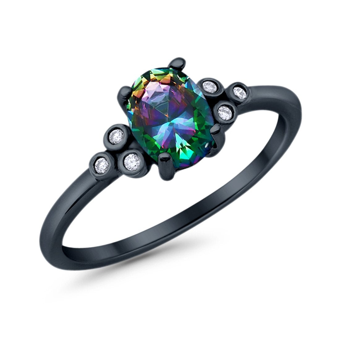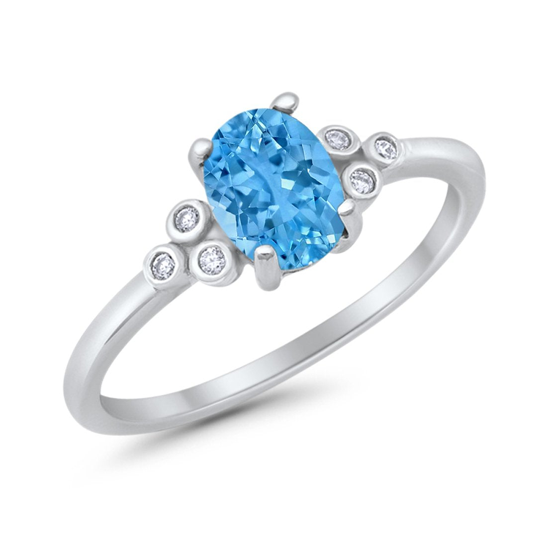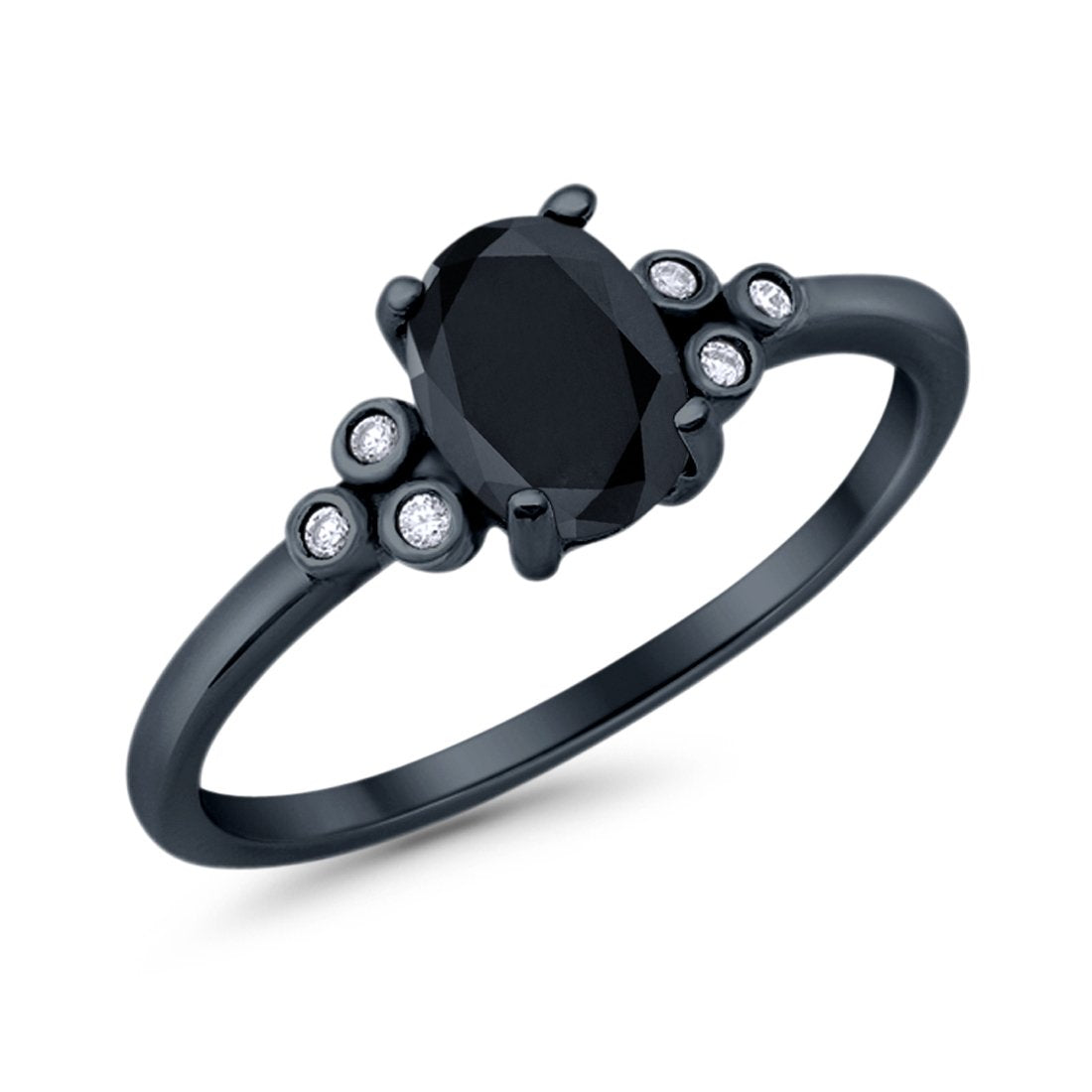 Oval Art Deco Wedding Engagement Ring Round Simulated Cubic Zirconia 925 Sterling Silver