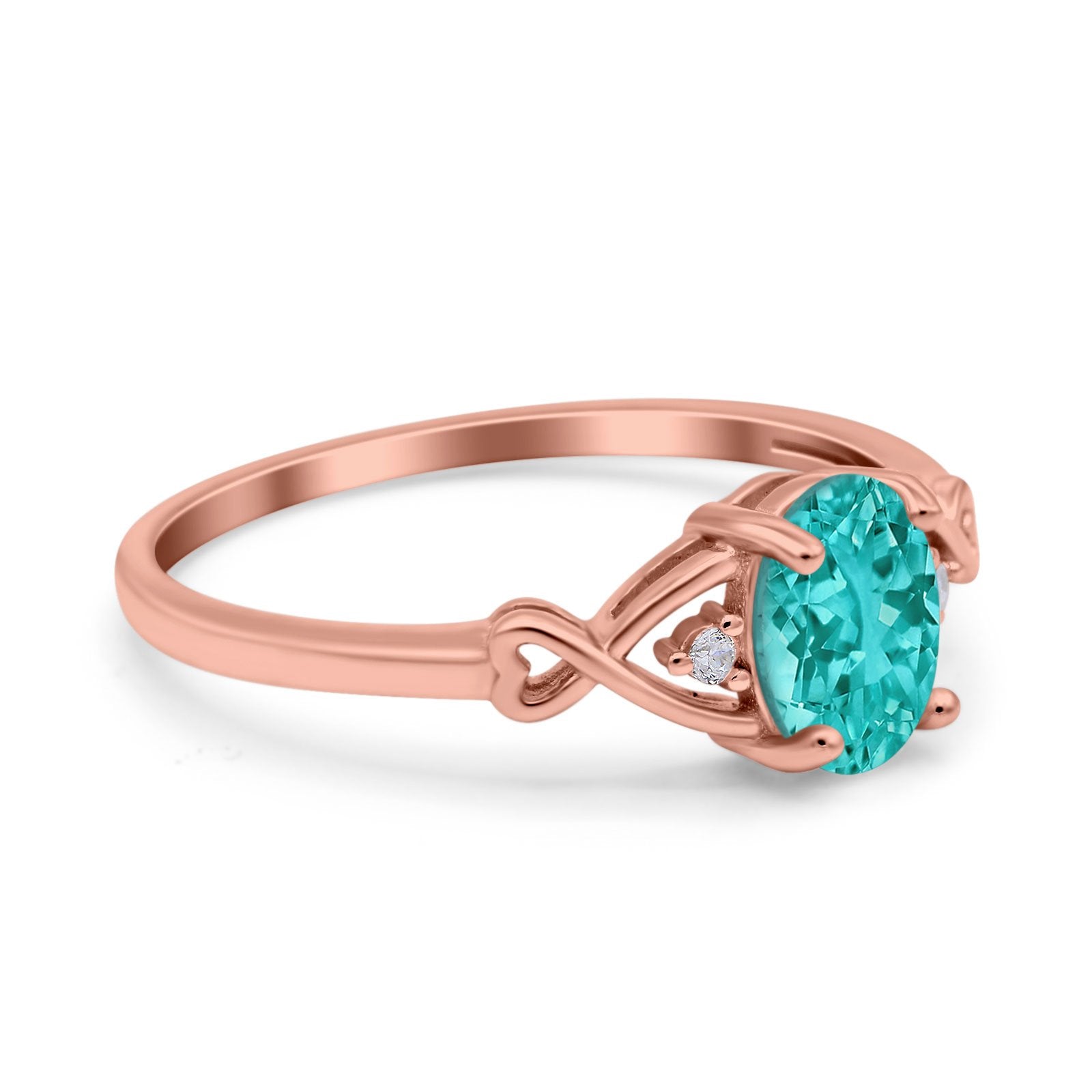 CZ & Blue Sapphire CZ Rose Tone Silver