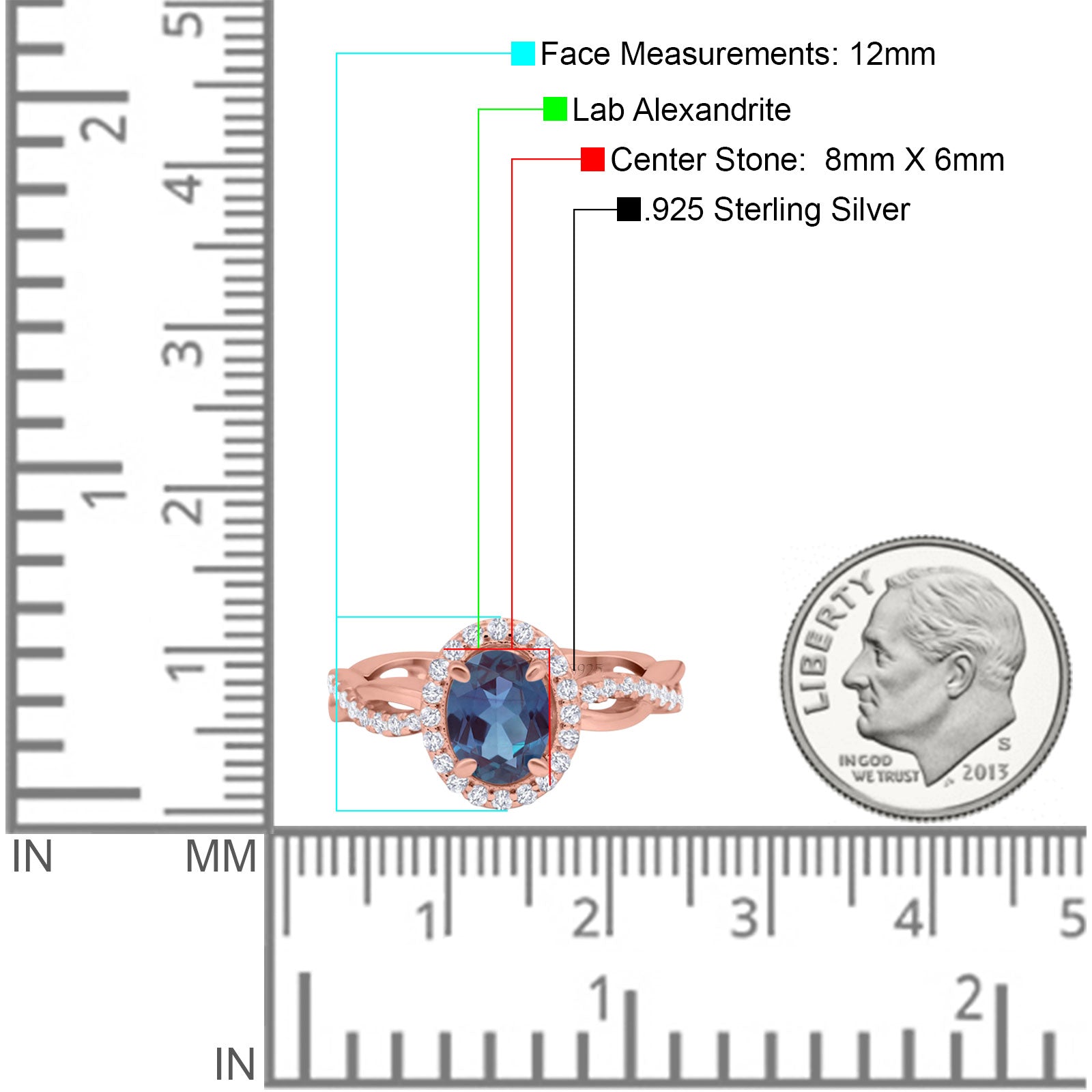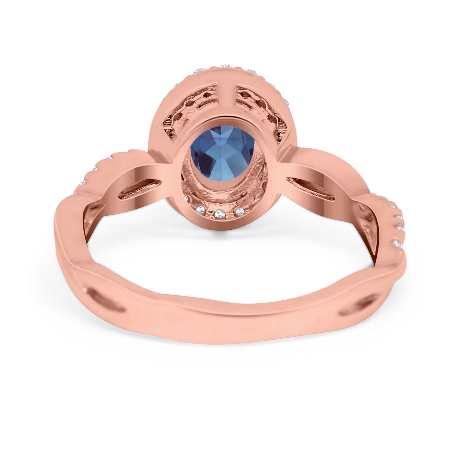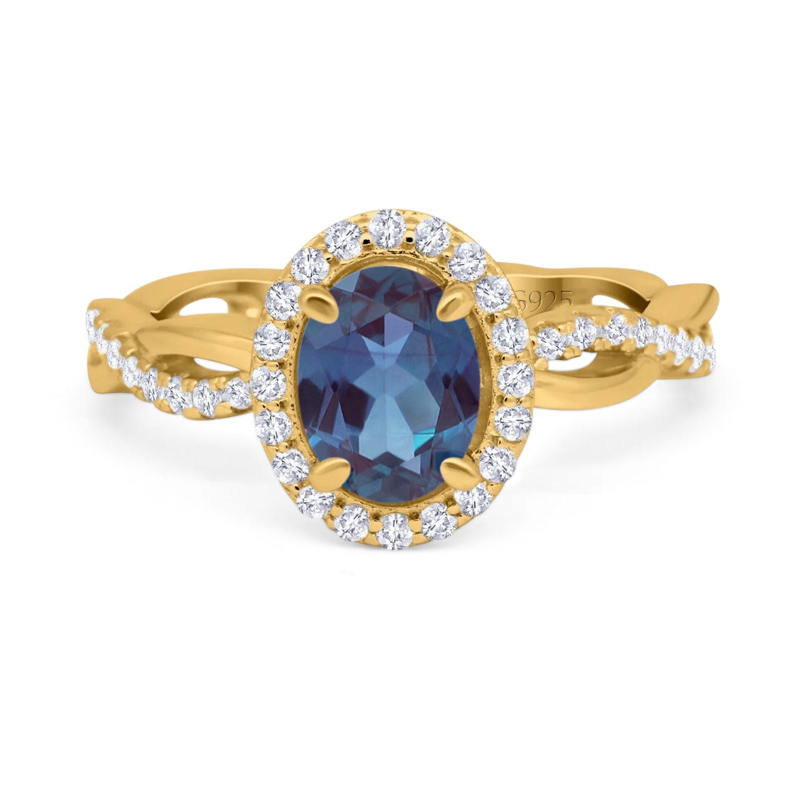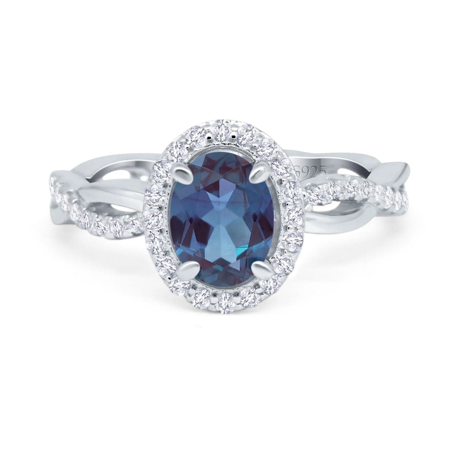 Oval Lab Alexandrite Halo CZ Split Shank Twisted Ring 925 Sterling Silver