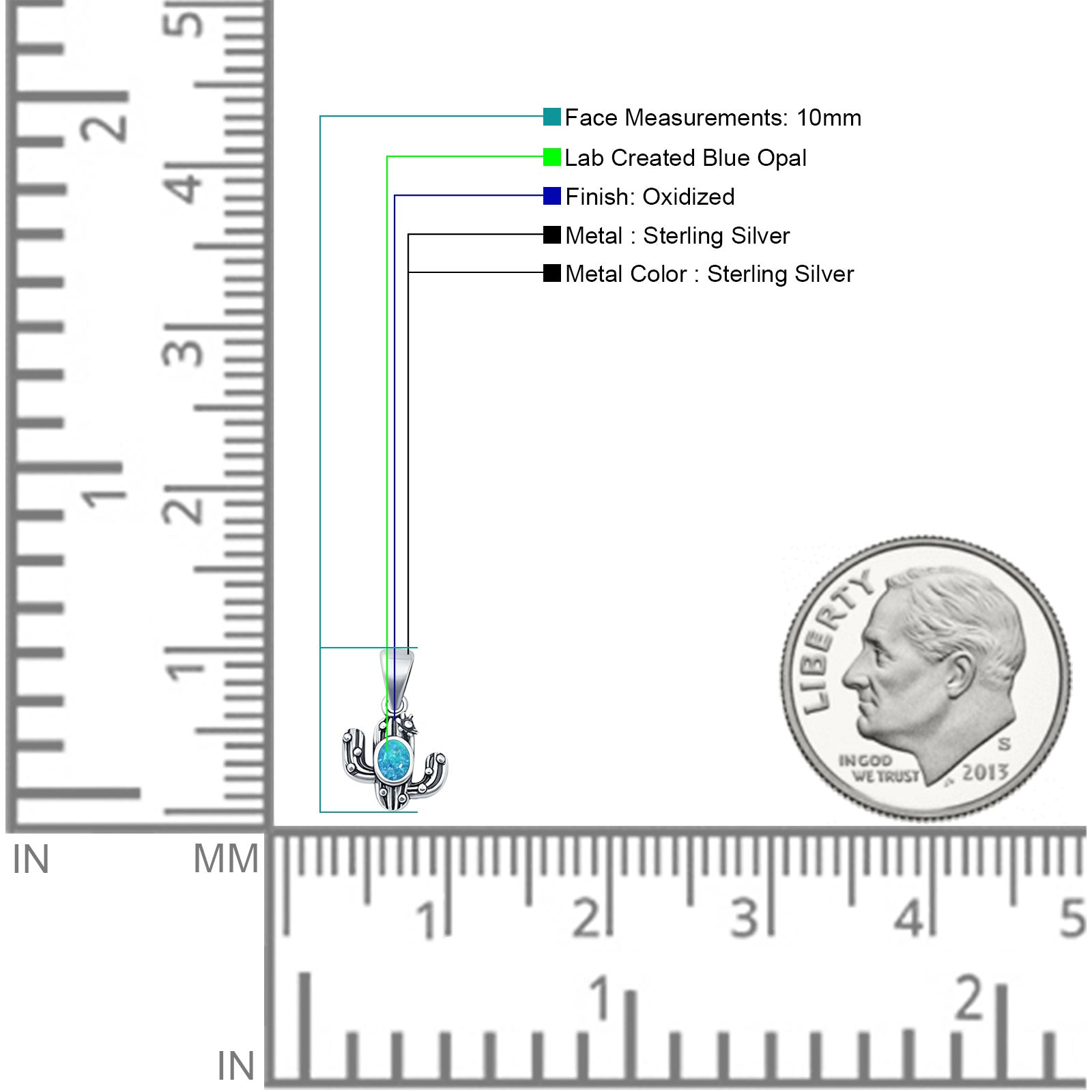 Oval Lab Created Blue Opal Cactus Pendant Rope Chain Necklace Oxidized 925 Sterling Silver