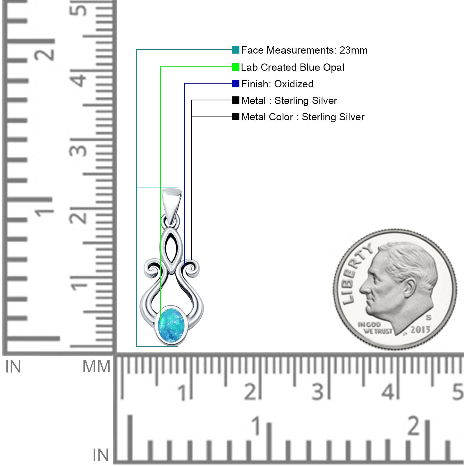 Oval Lab Created Blue Opal Filigree Pendant Rope Chain Necklace Oxidized 925 Sterling Silver