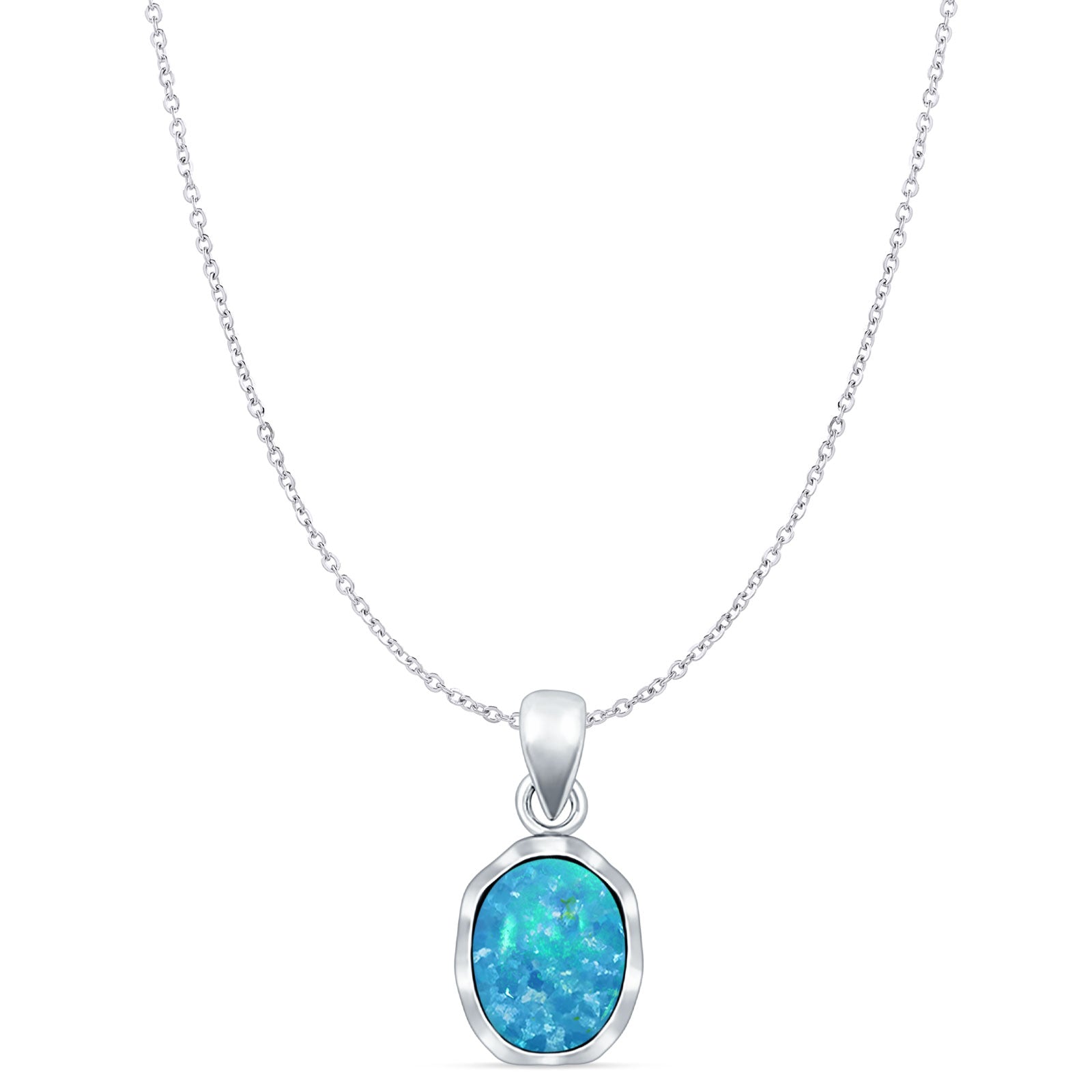 Style: Oval Lab Created Blue Opal Solitaire Pendant Necklace