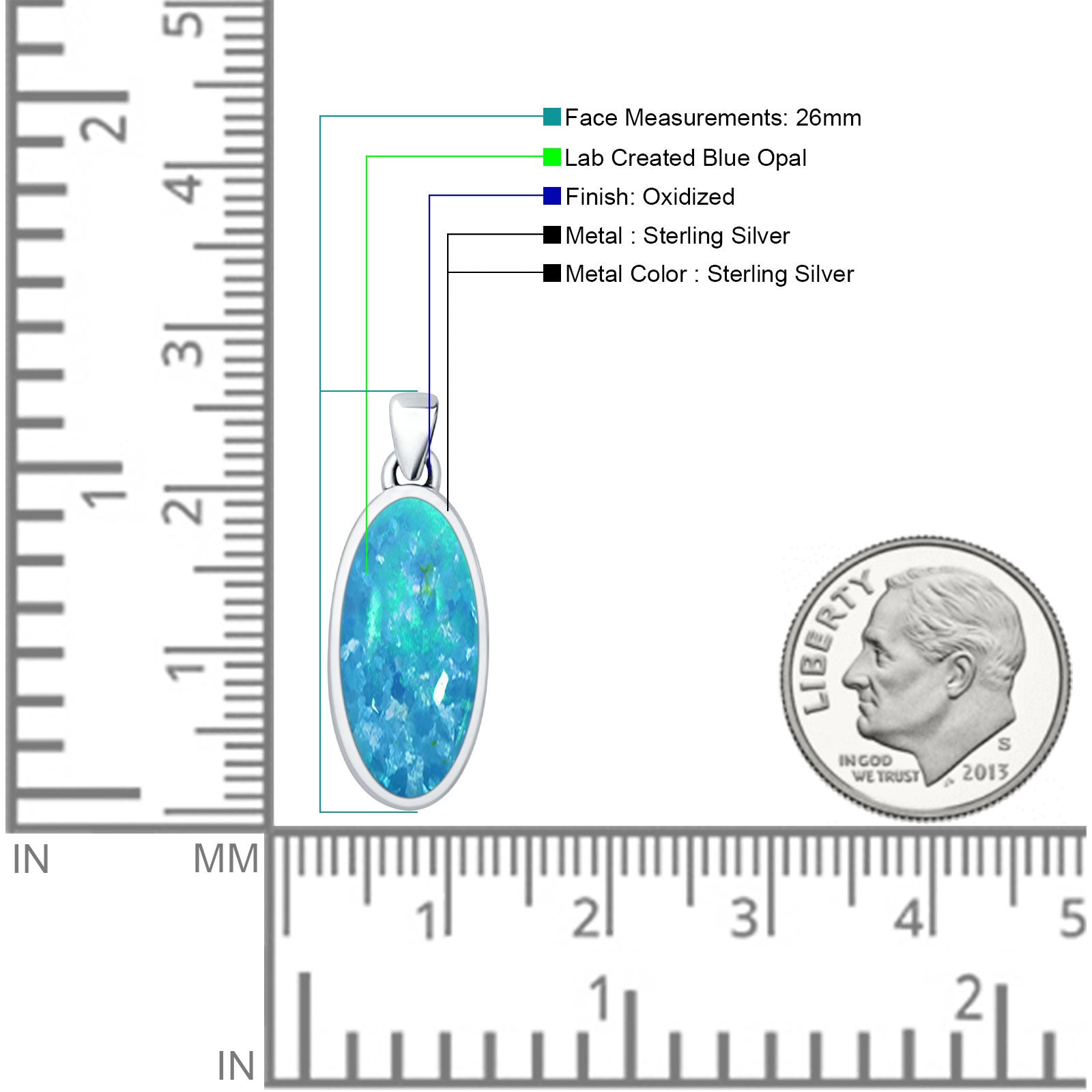 Style: Oxidized Oval Lab Created Blue Opal Solitaire Pendant Necklace