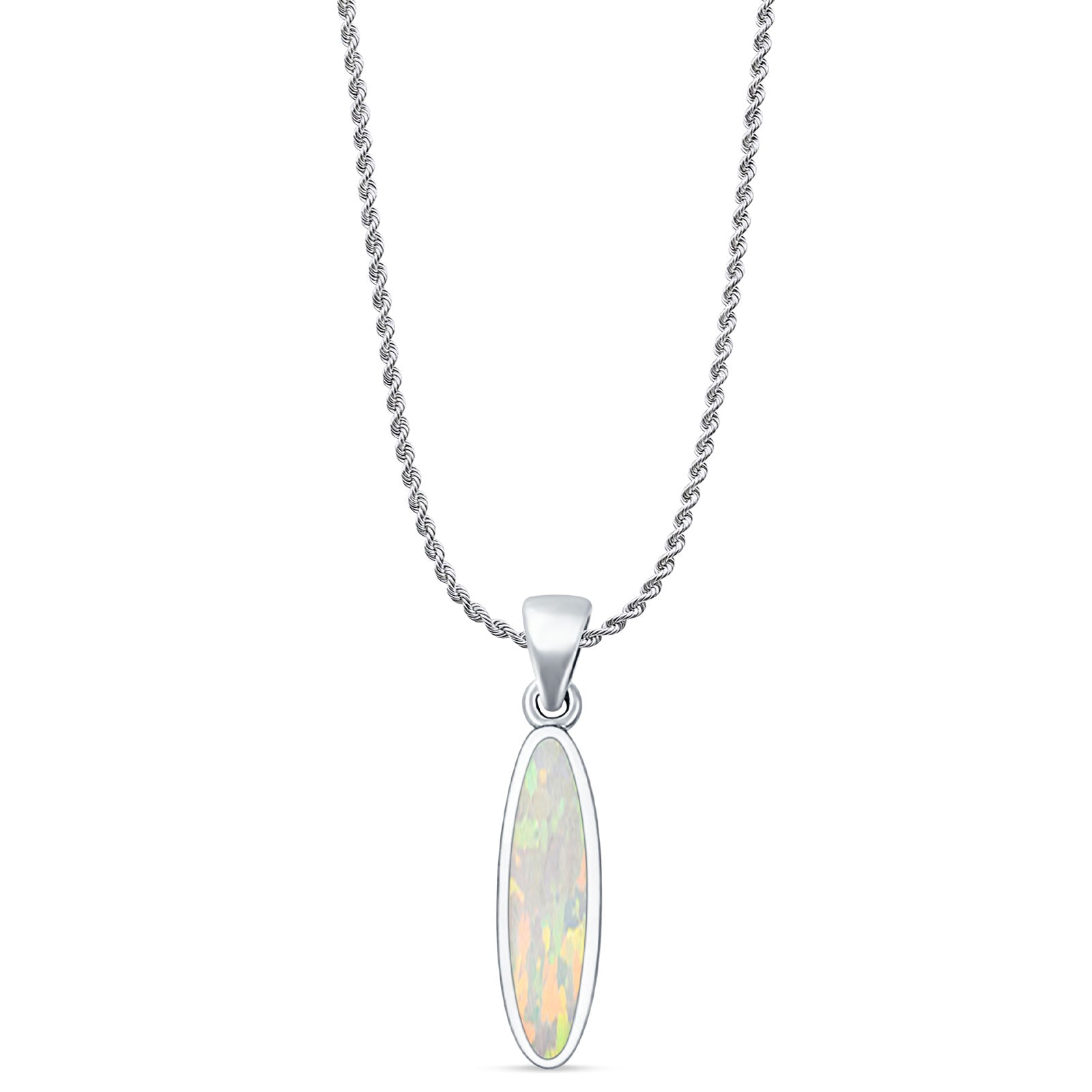 Oval Lab Created White Opal Pendant Rope Chain Necklace Oxidized 925 Sterling Silver