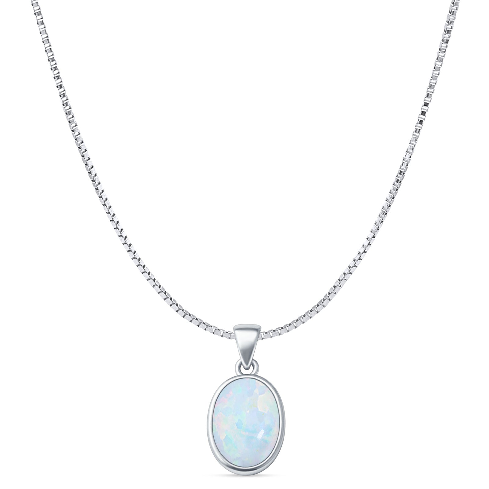 Oval Lab Created White Opal Solitaire Pendant Box Chain Necklace 925 Sterling Silver