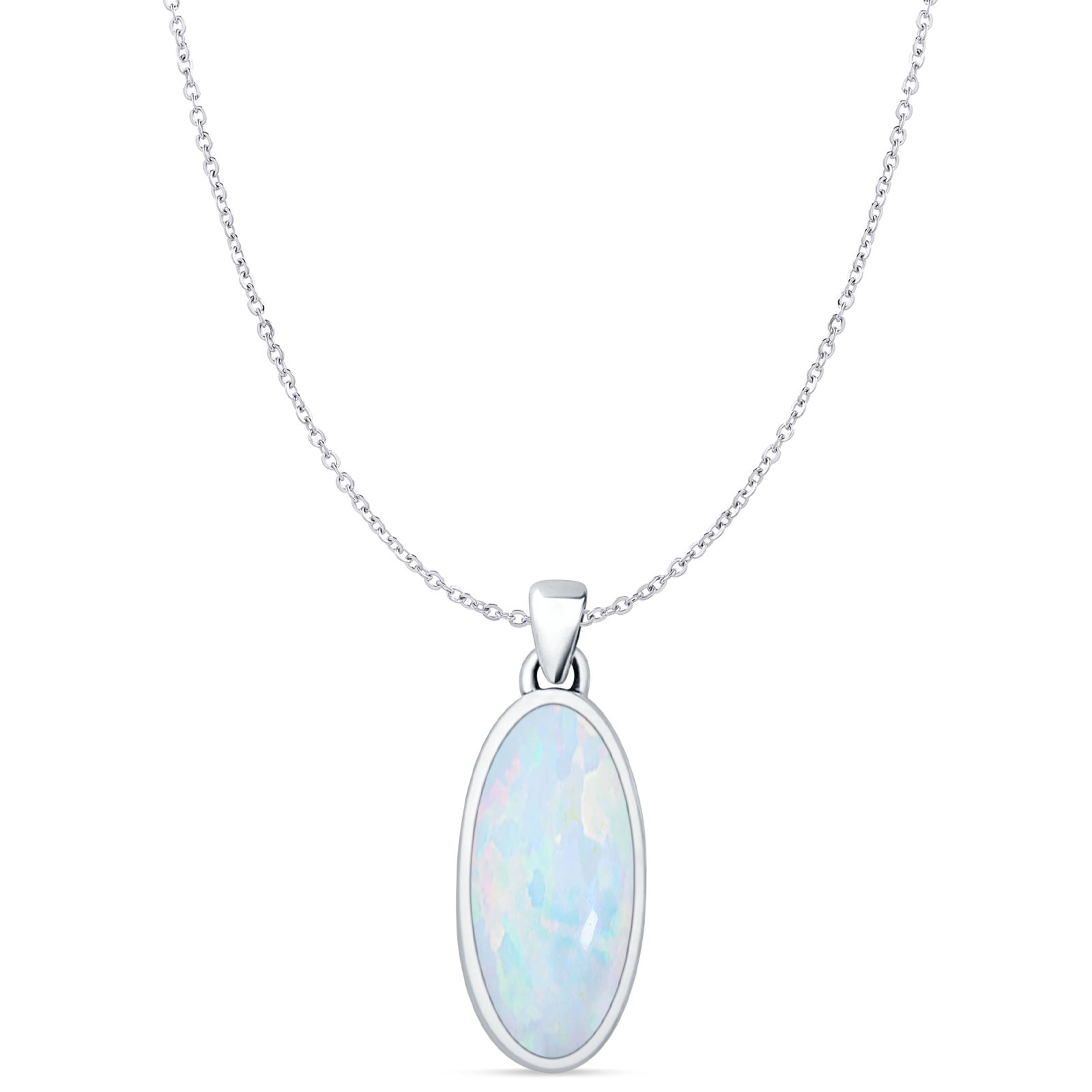 Style: Oxidized Oval Lab Created White Opal Solitaire Pendant Necklace