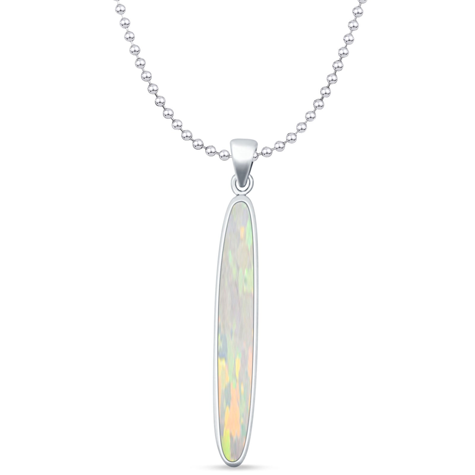 Oval Lab Created White Opal Stick Pendant Oxidized Bead Chain Necklace 925 Sterling Silver