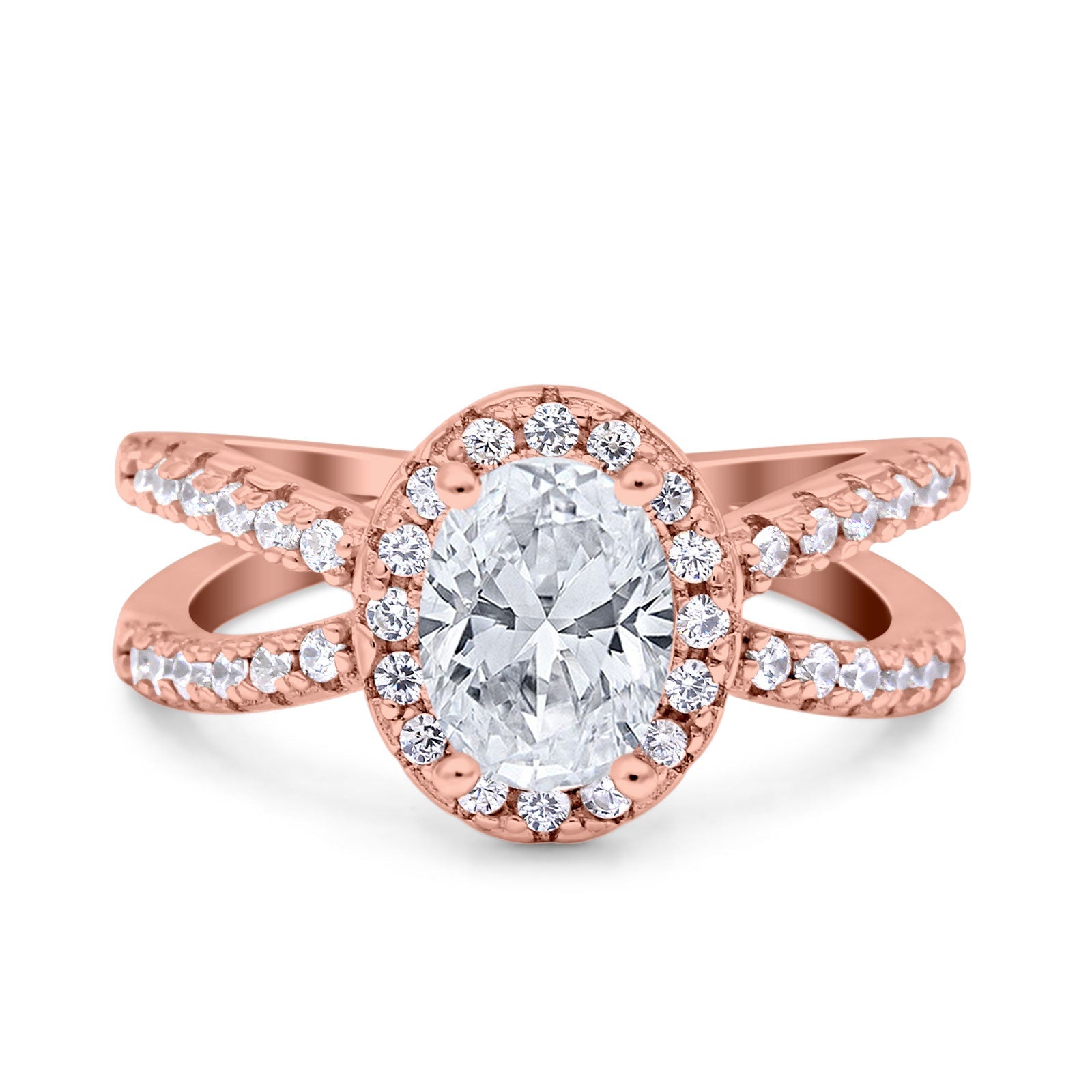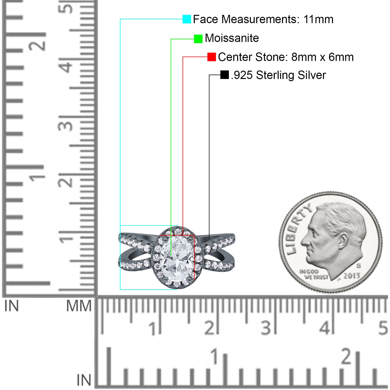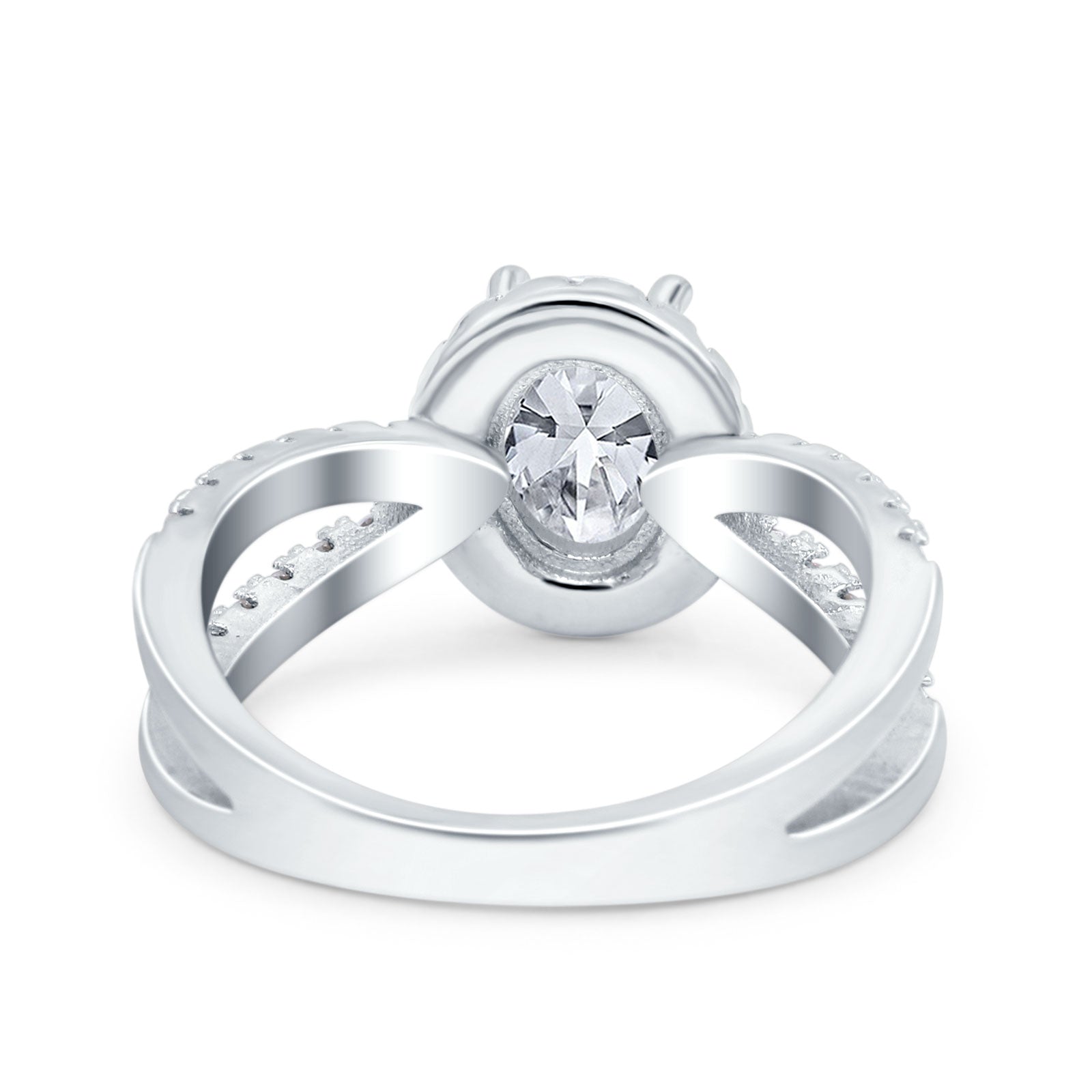 Oval Moissanite Halo Split Shank Ring 925 Sterling Silver