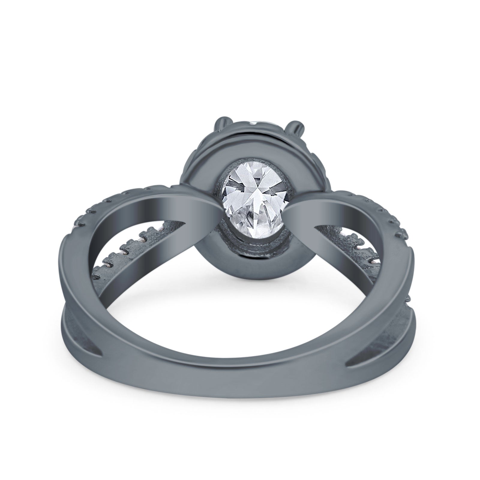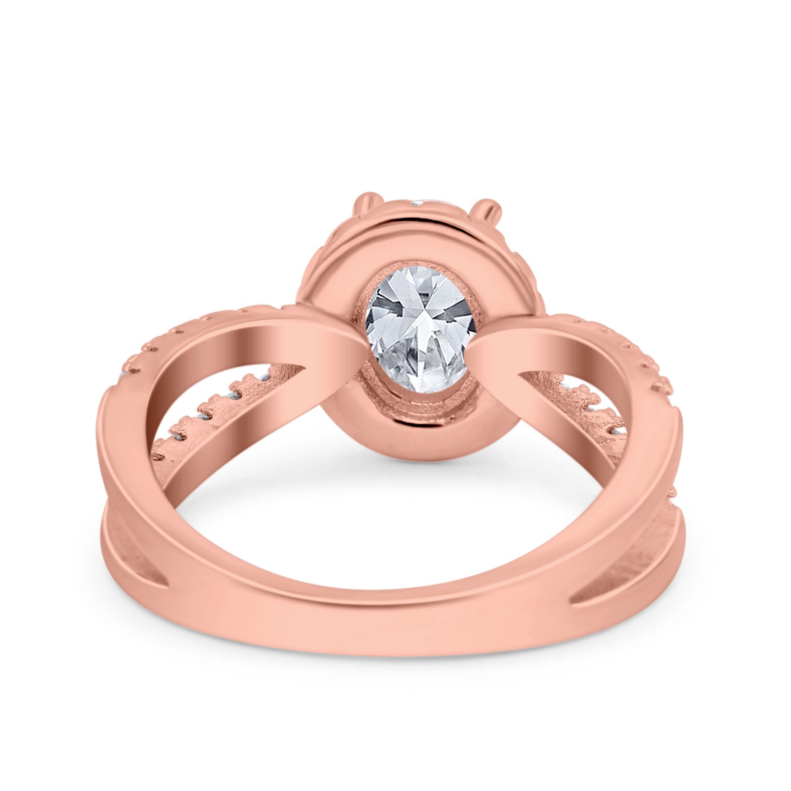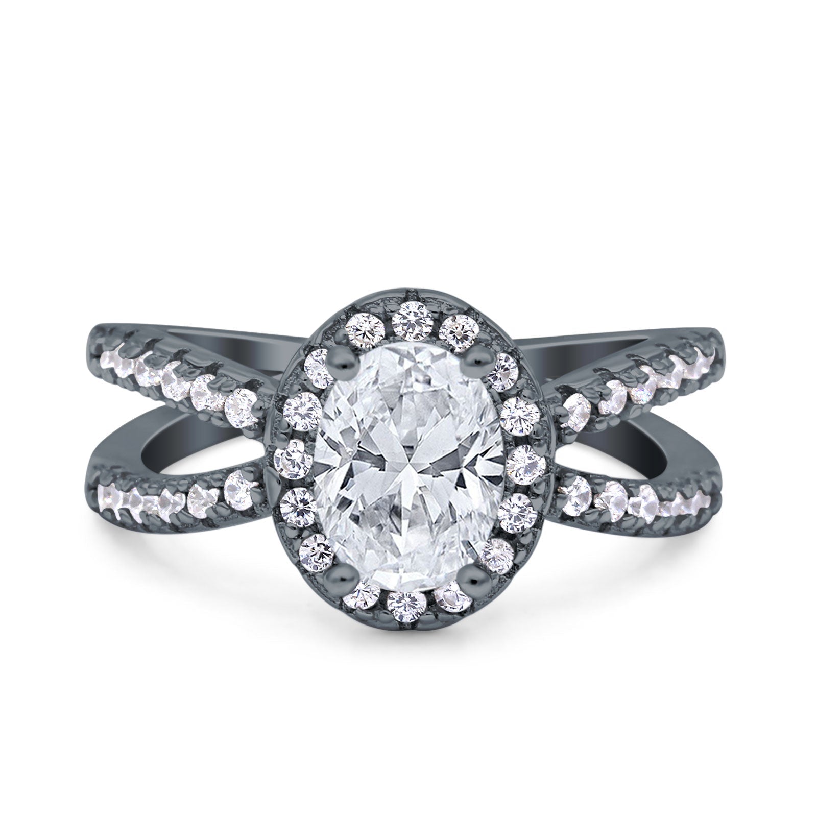 Oval Moissanite Halo Split Shank Ring 925 Sterling Silver