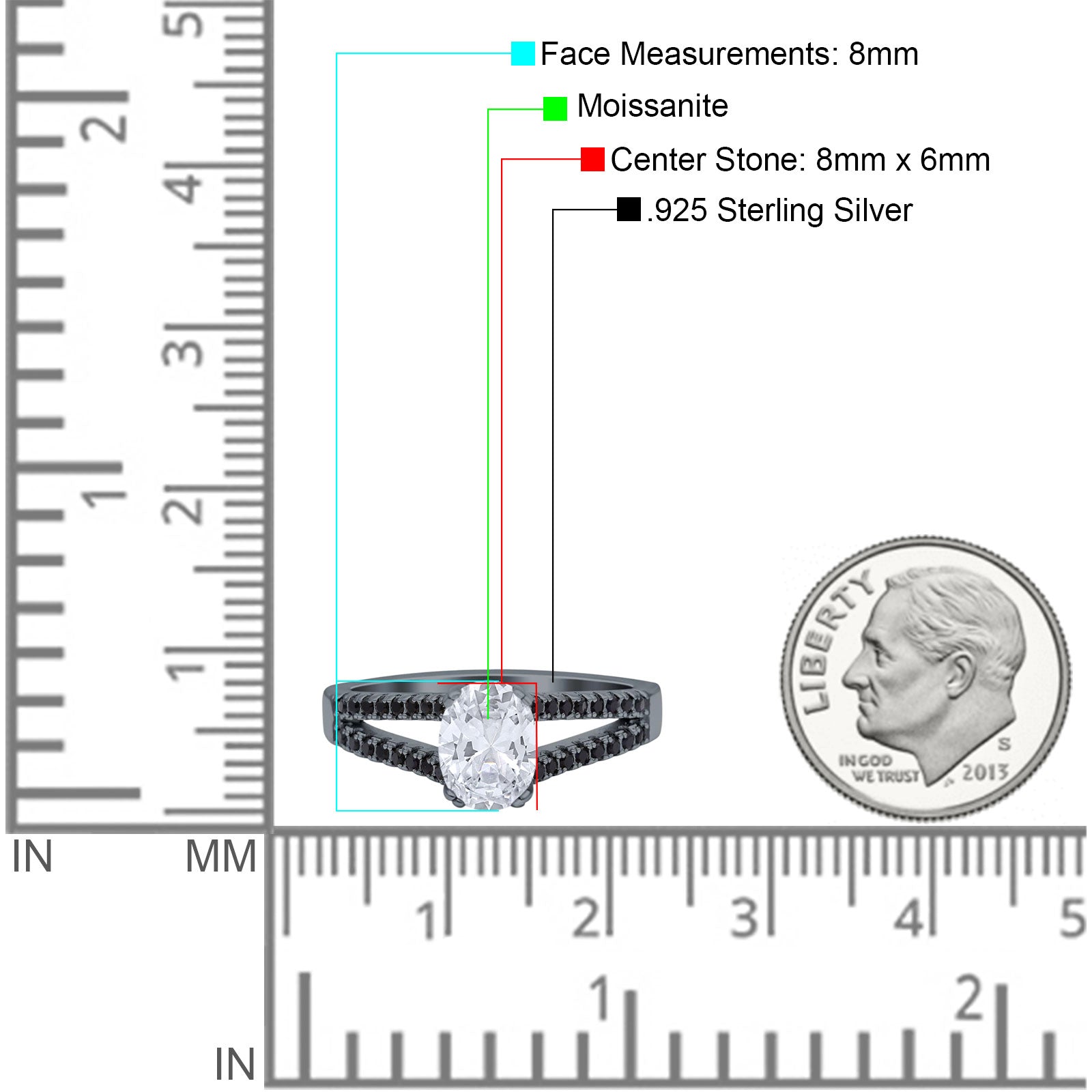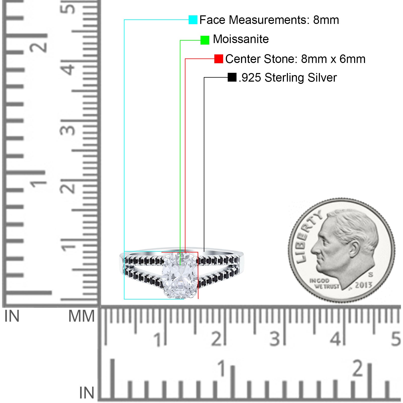 Center Stone Measurements:8mmX6mm.