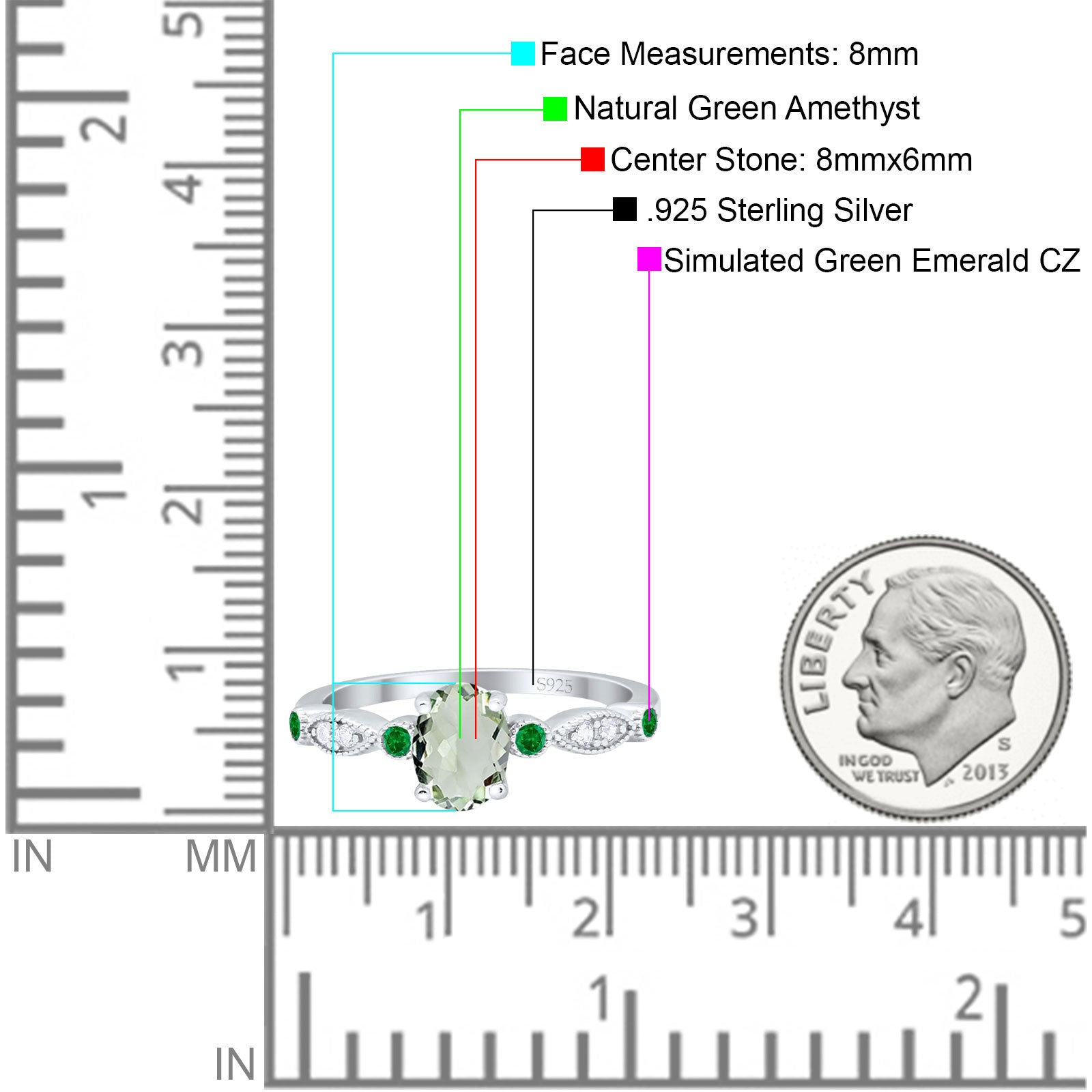 Side Stone: Green Emerald(CZ).