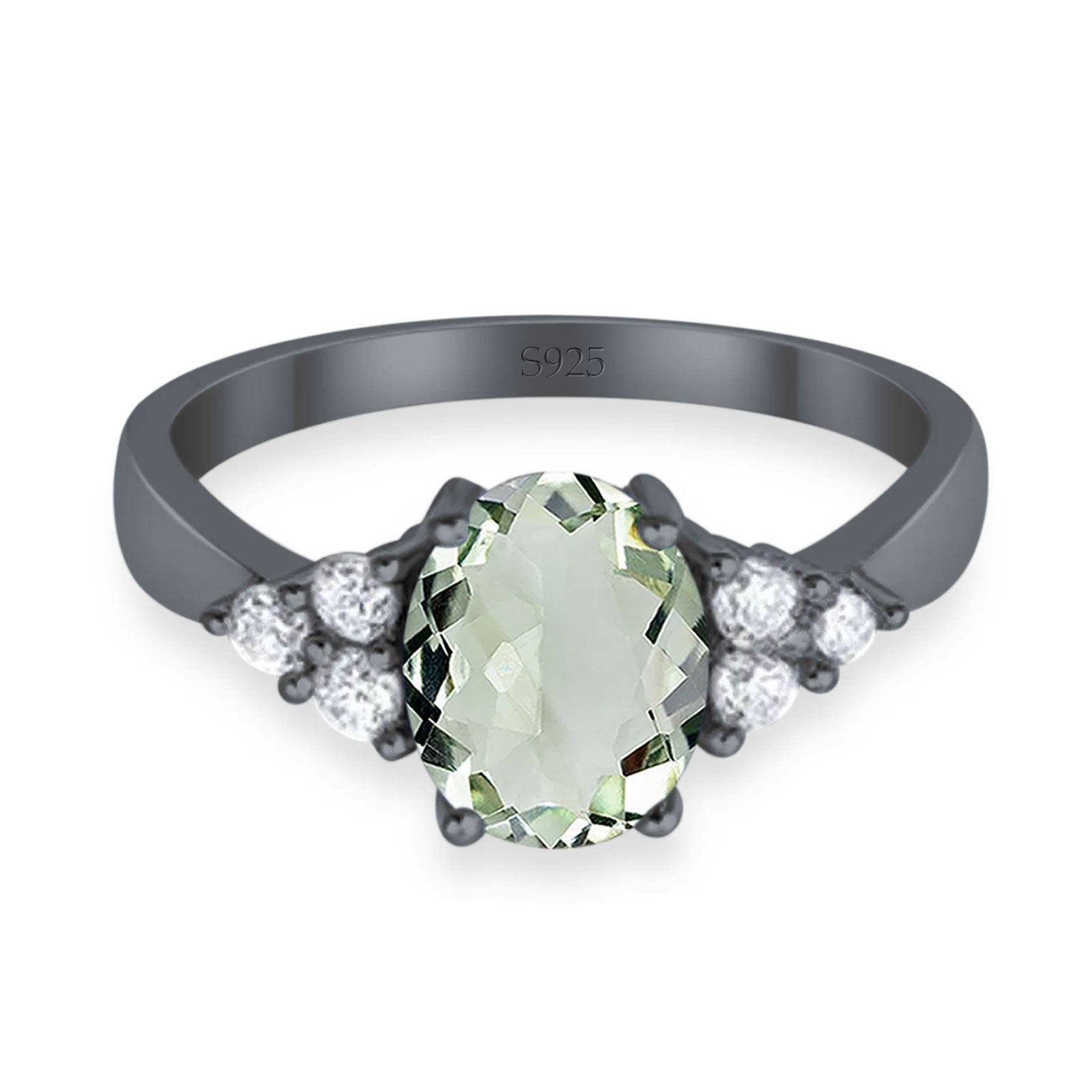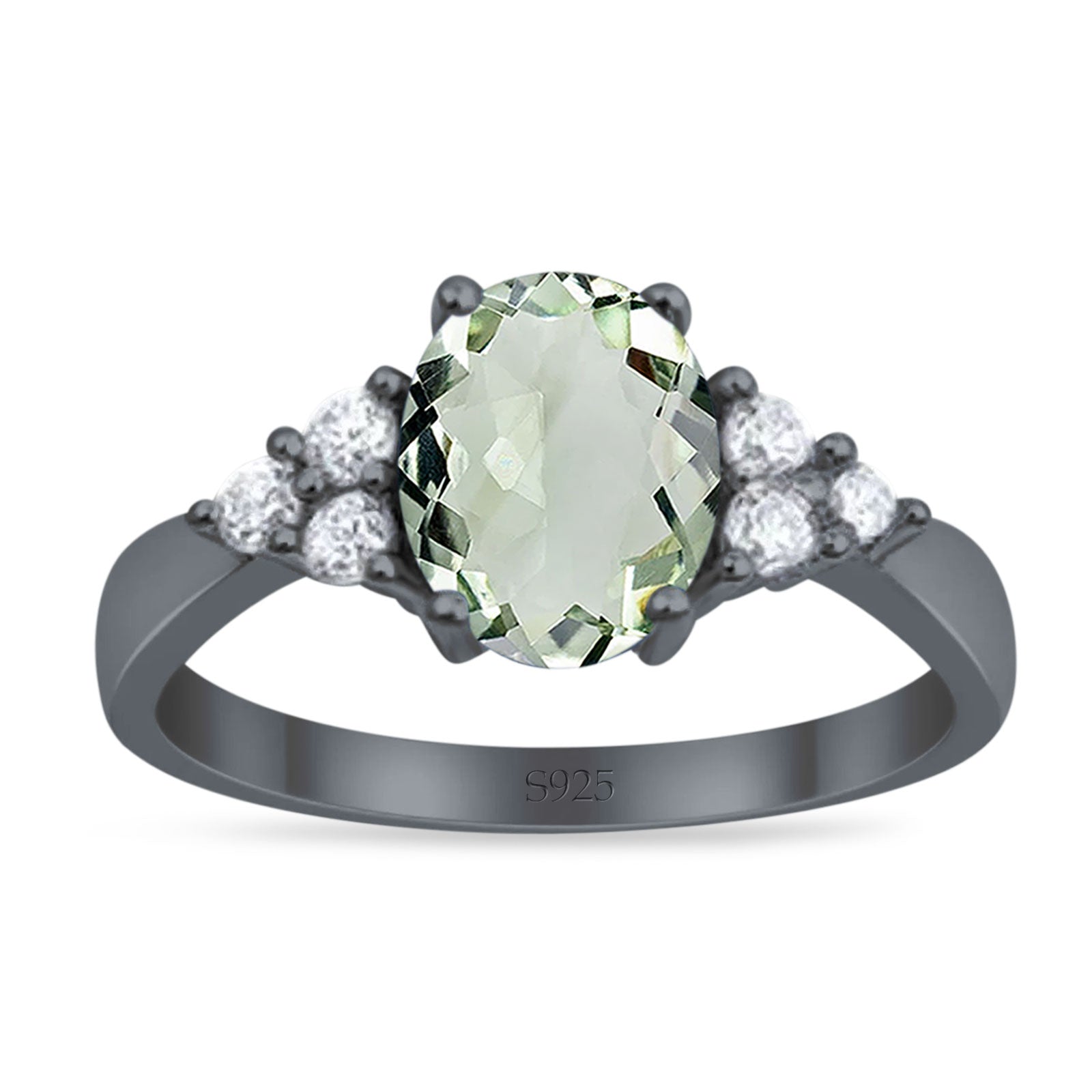 Natural Green Amethyst Prasiolite Black Tone Silver