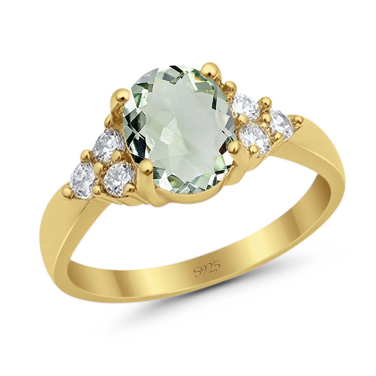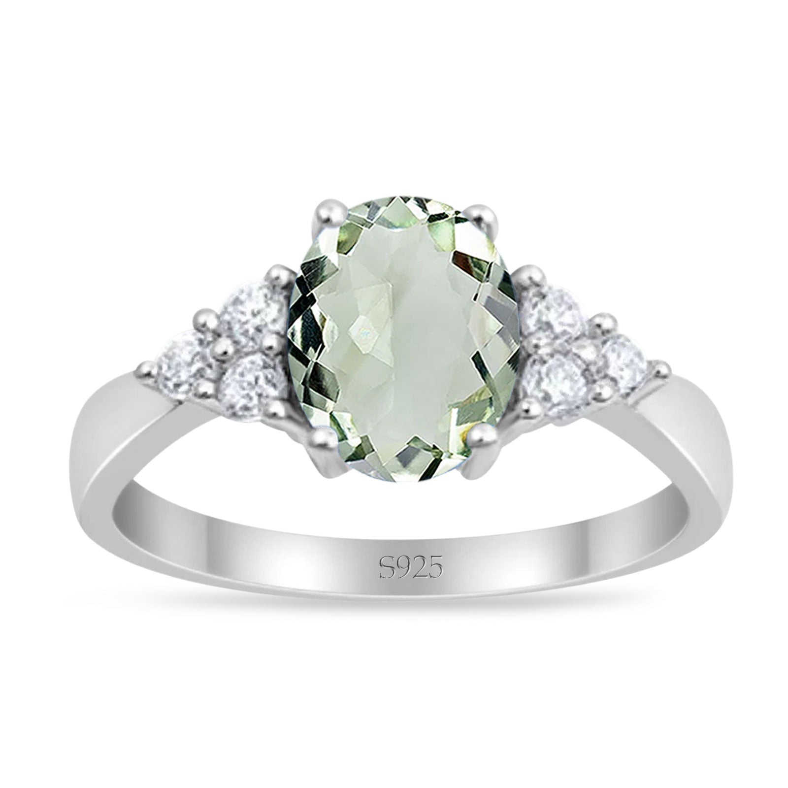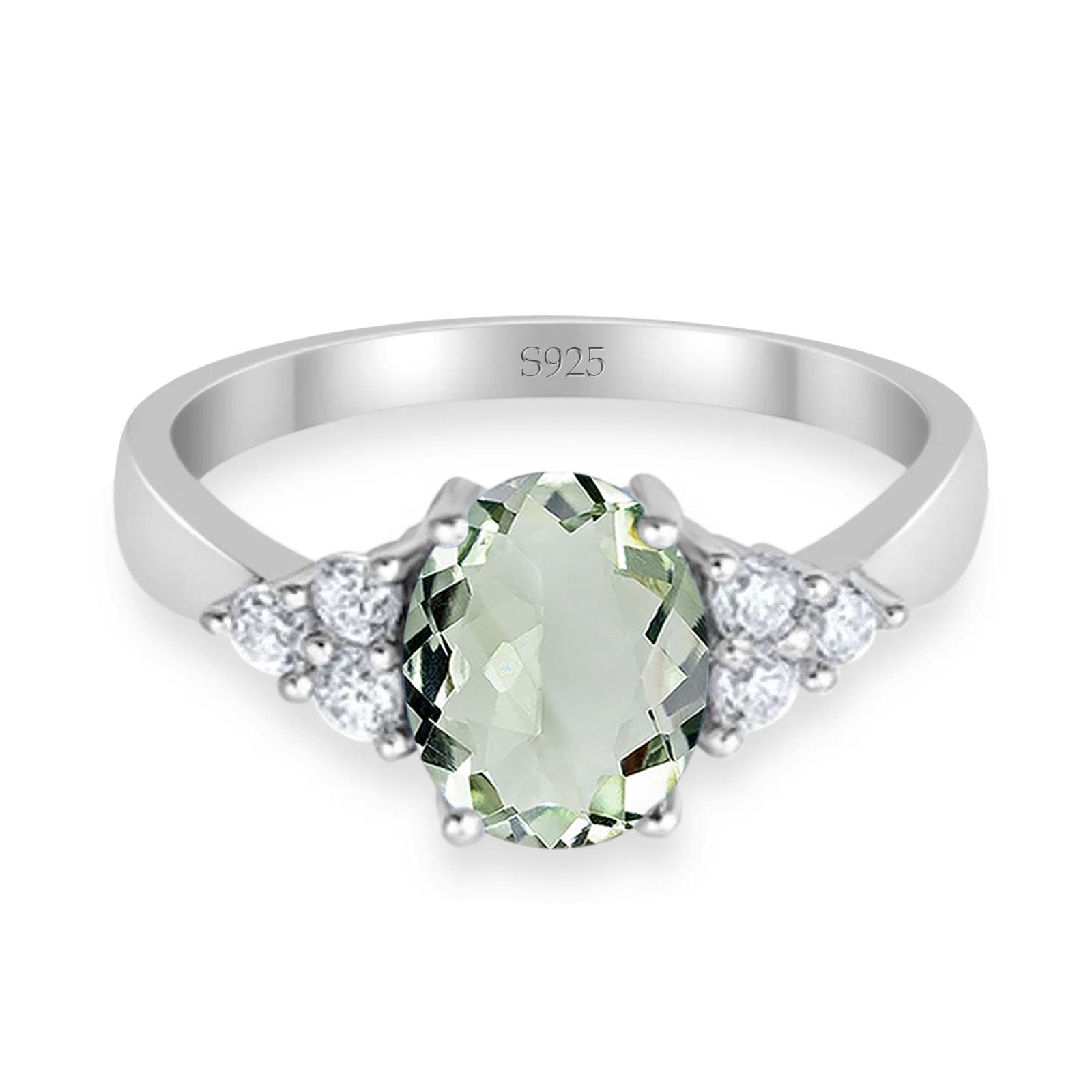 Oval Natural Green Amethyst Prasiolite Vintage Style Ring 925 Sterling Silver