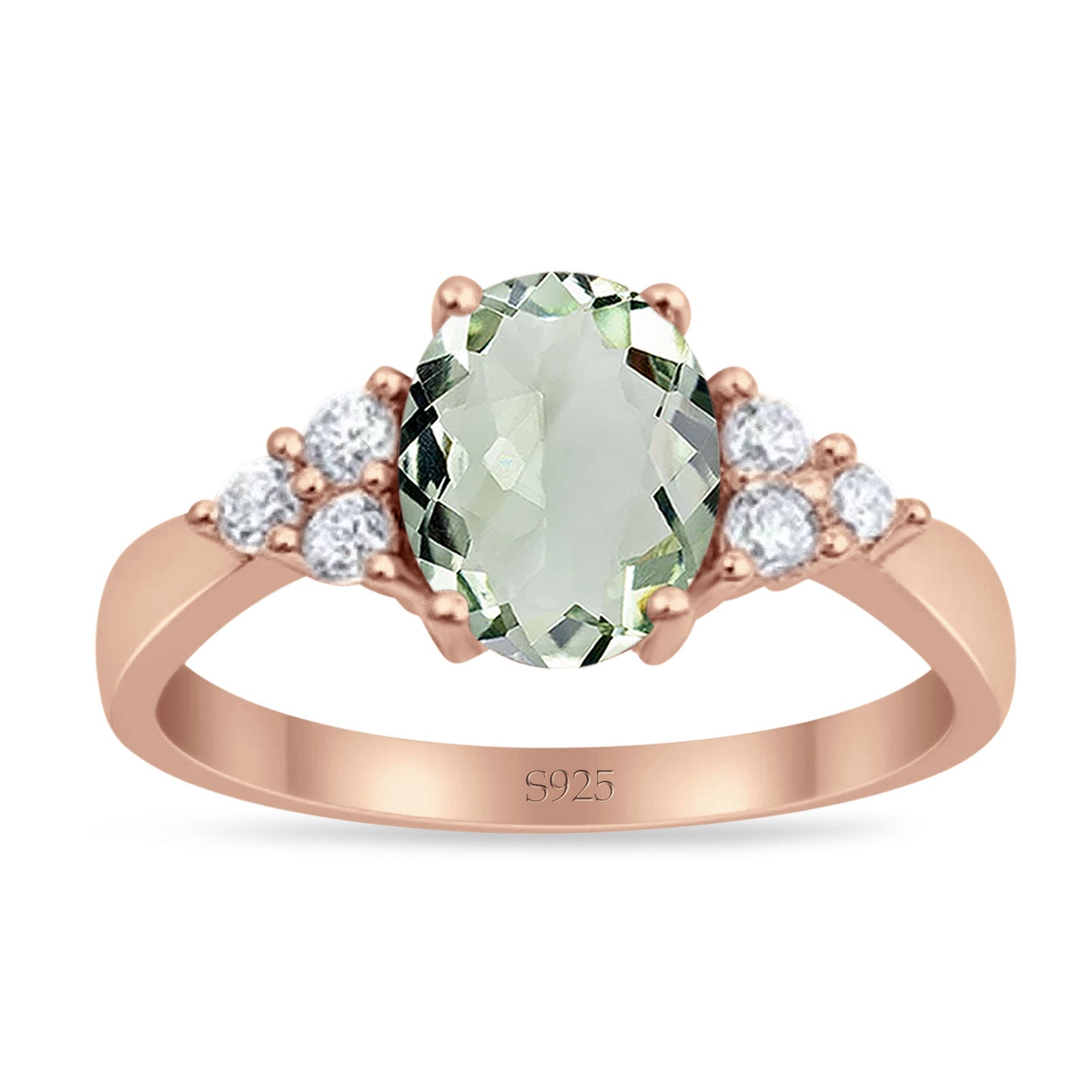 Natural Green Amethyst Prasiolite Rose Tone Silver
