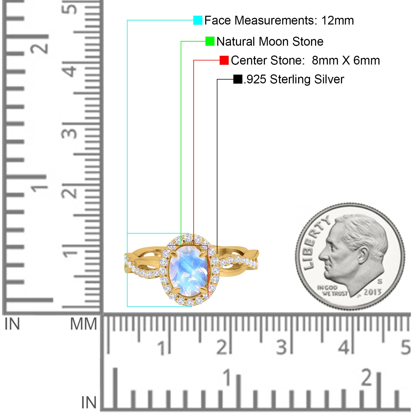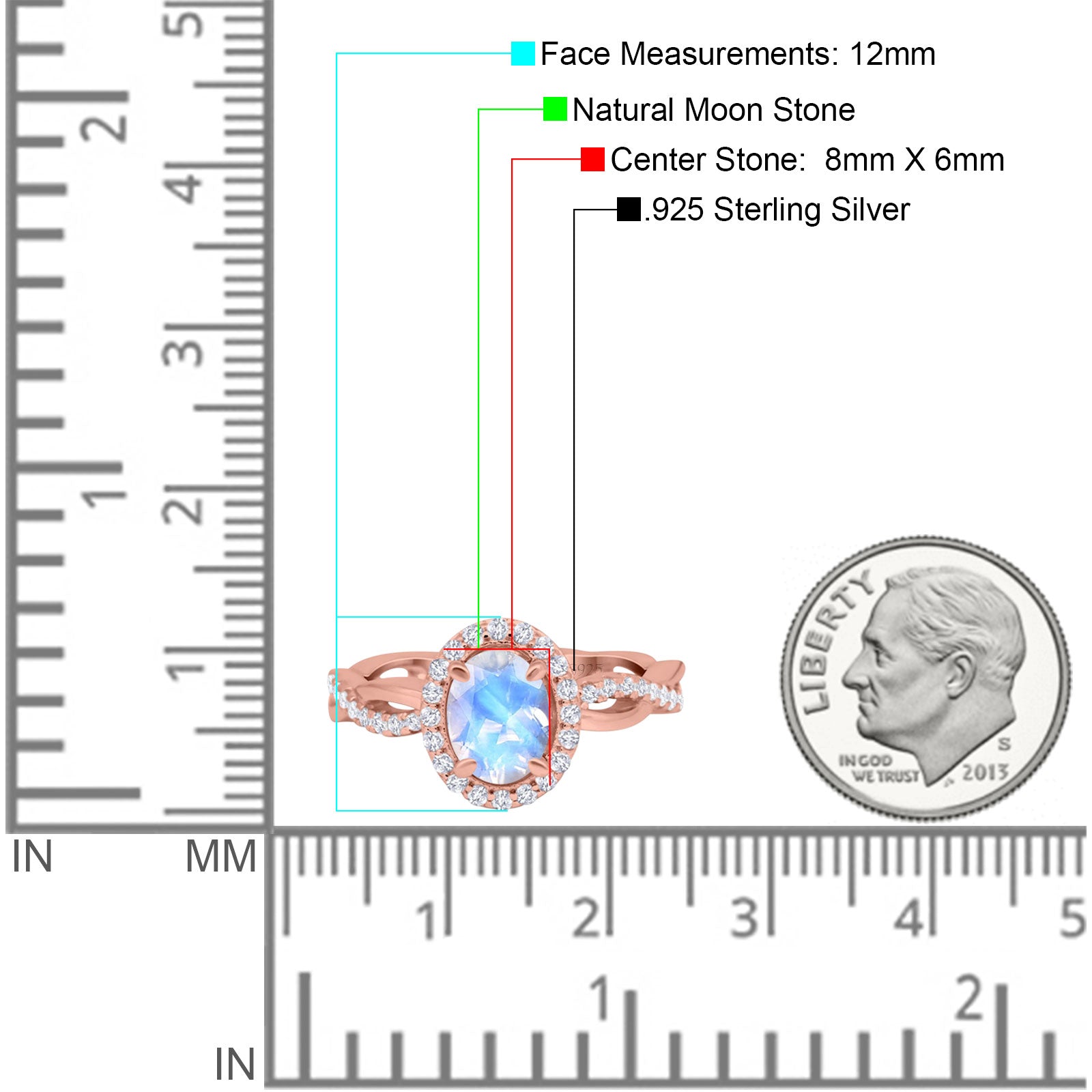 - Oval Natural Moonstone Center Stone.