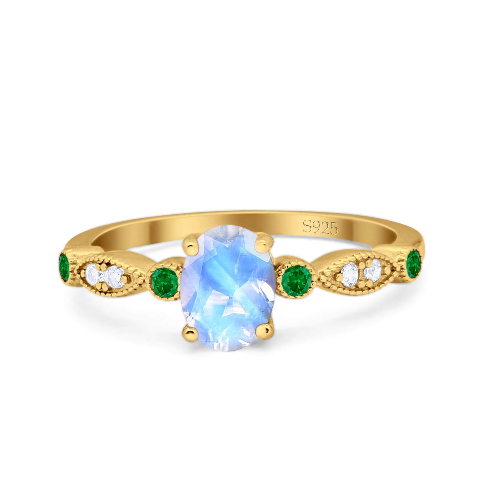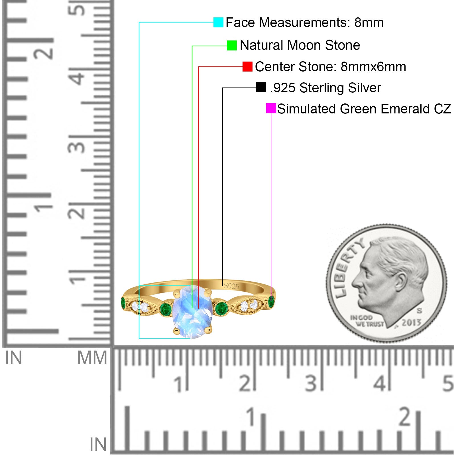 Oval Natural Moonstone Marquise Vintage Style Ring 925 Sterling Silver