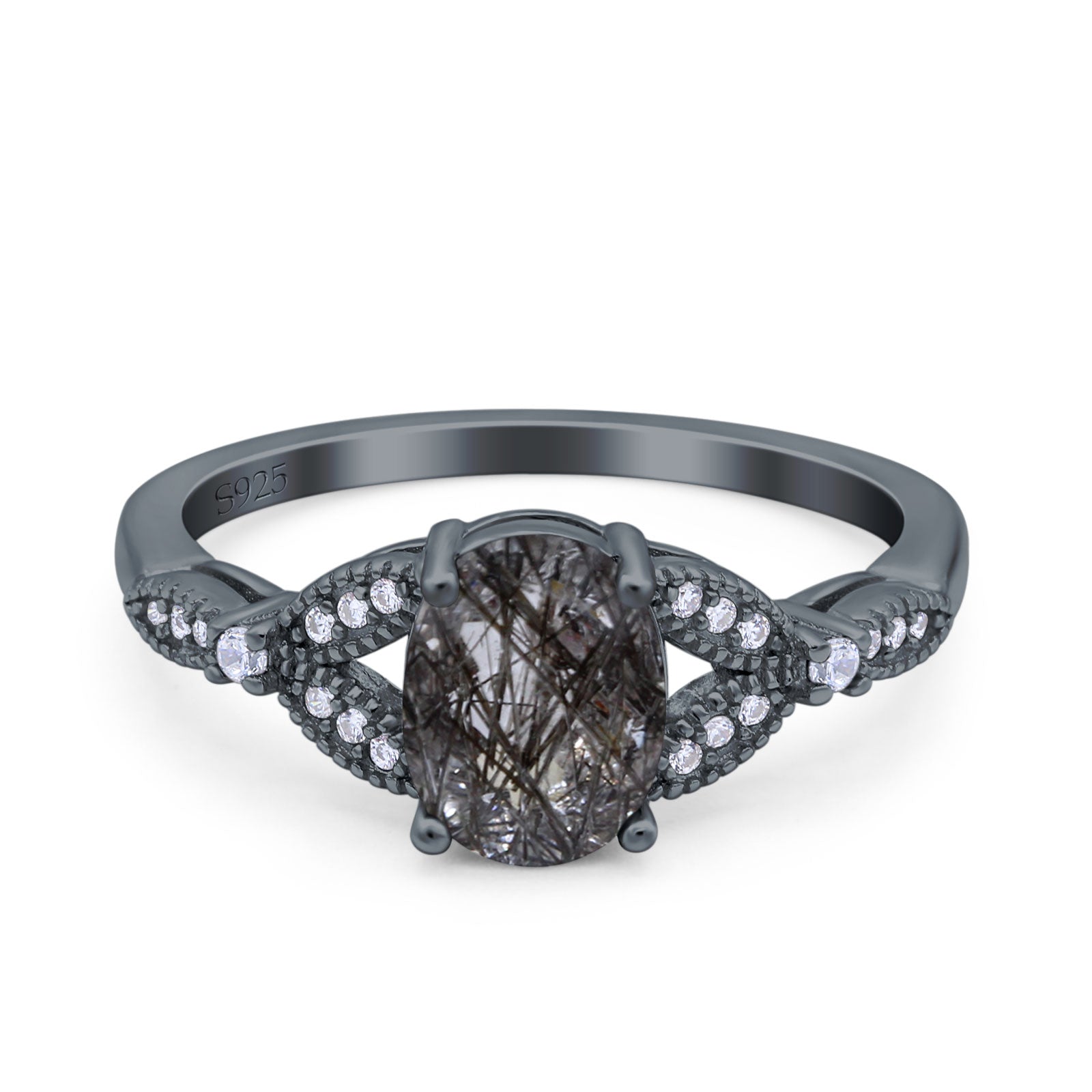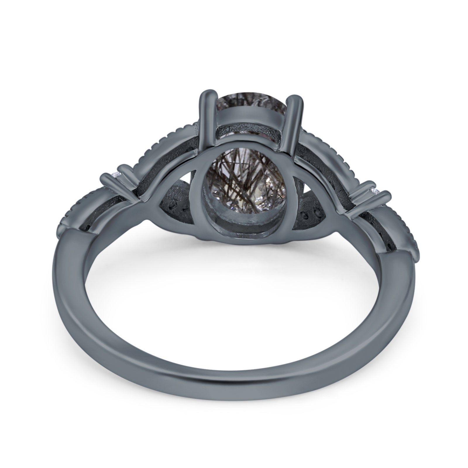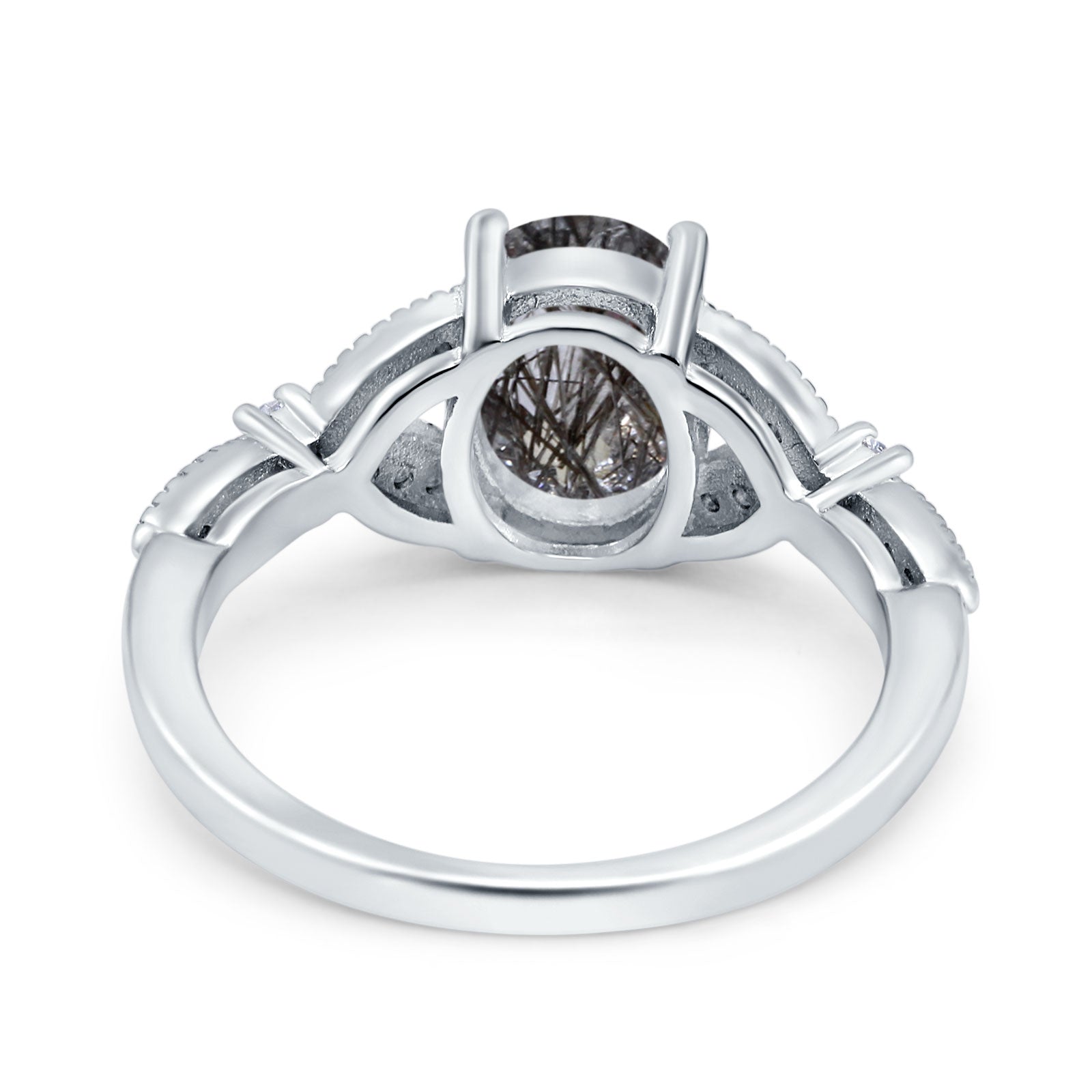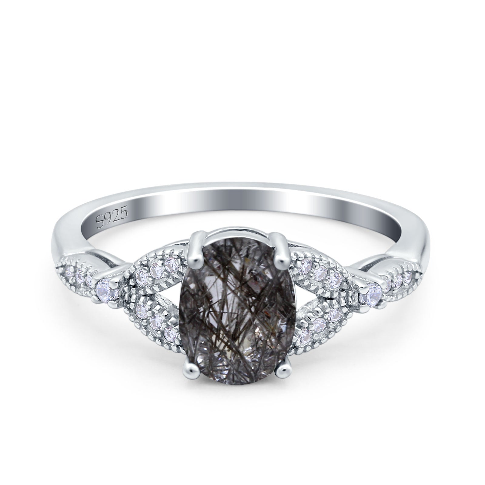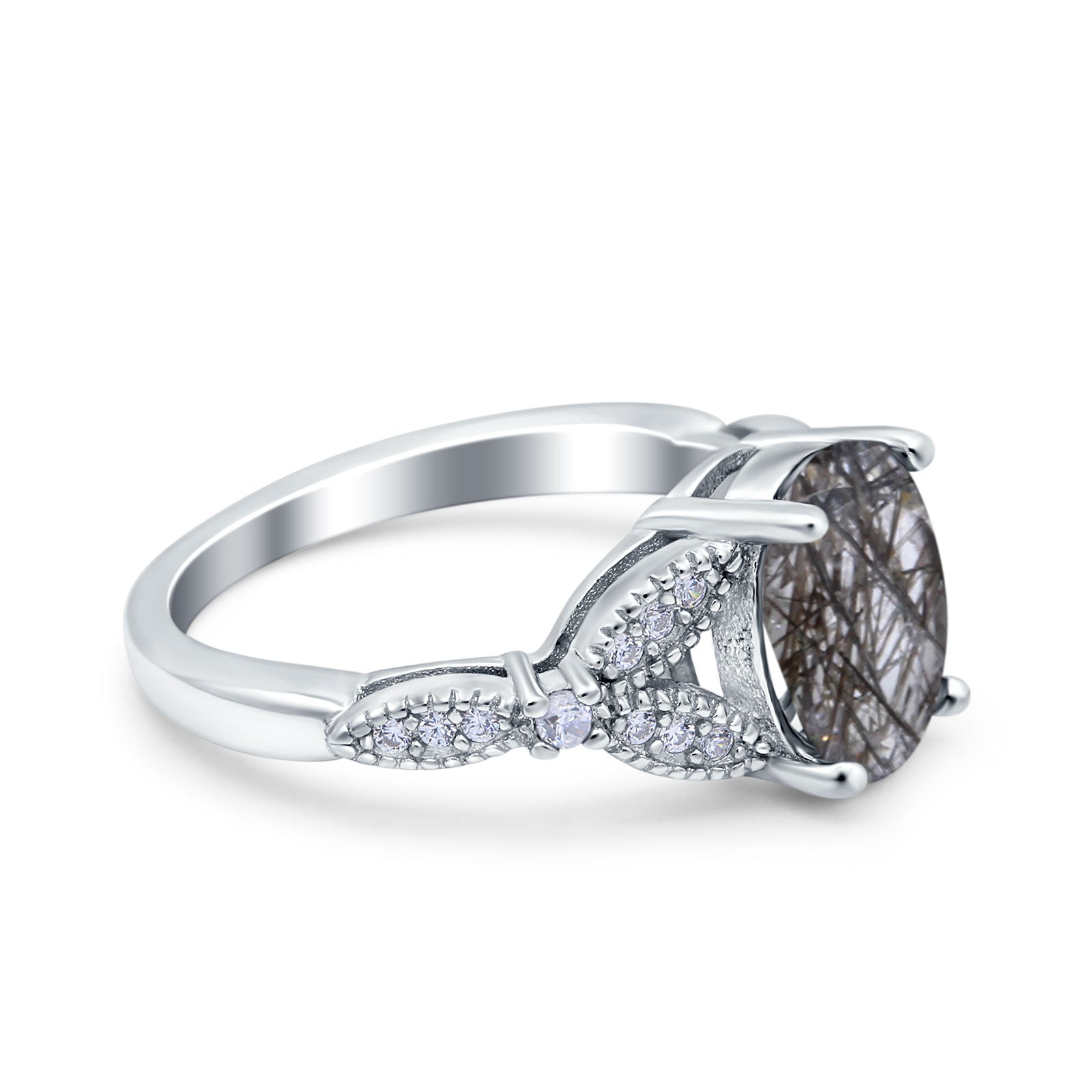 Oval Natural Rutilated Quartz Leaf Design Beaded Ring 925 Sterling Silver