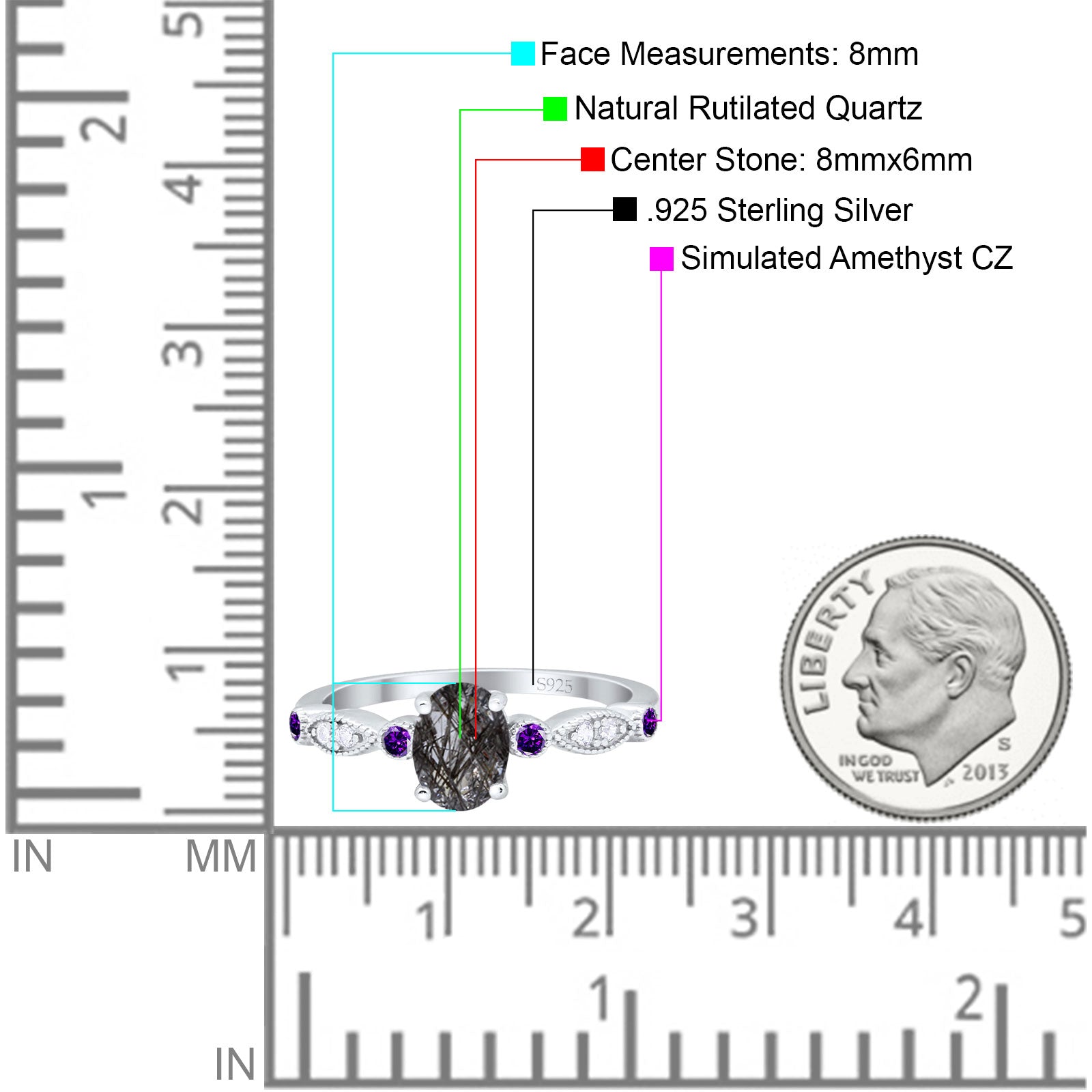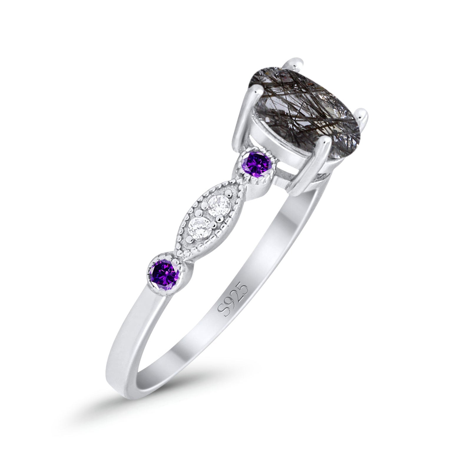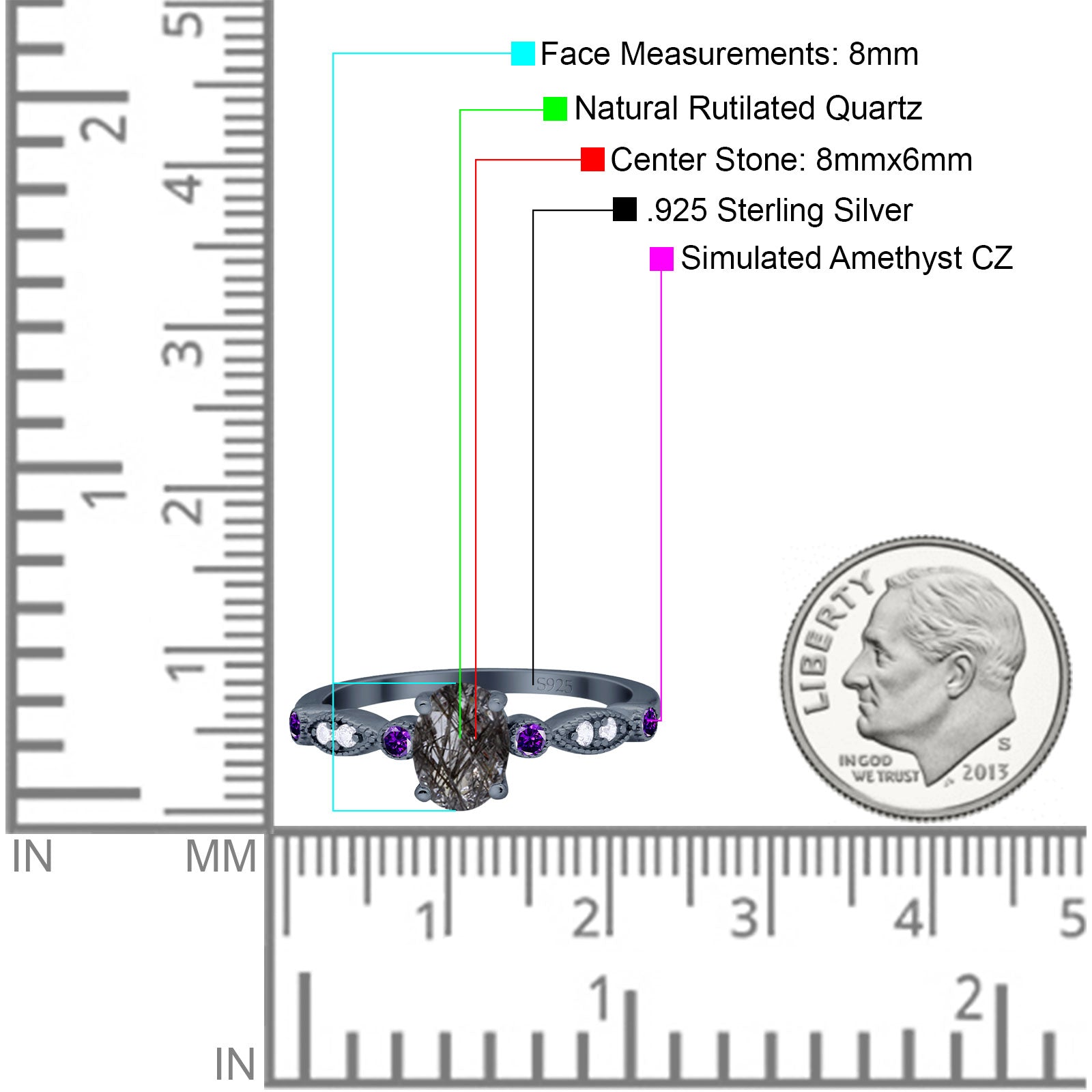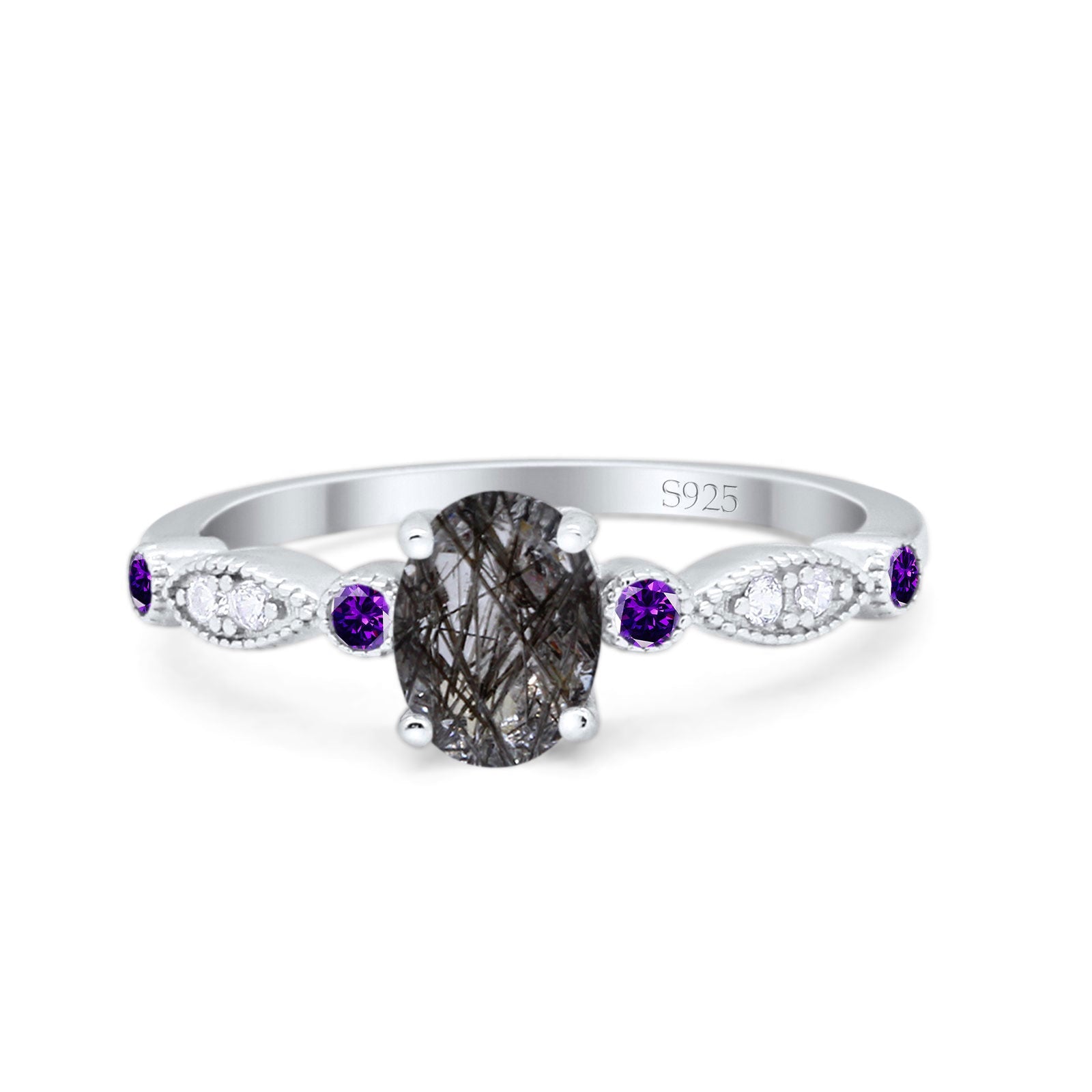 Side Stone: Amethyst Cubic Zirconia(CZ).