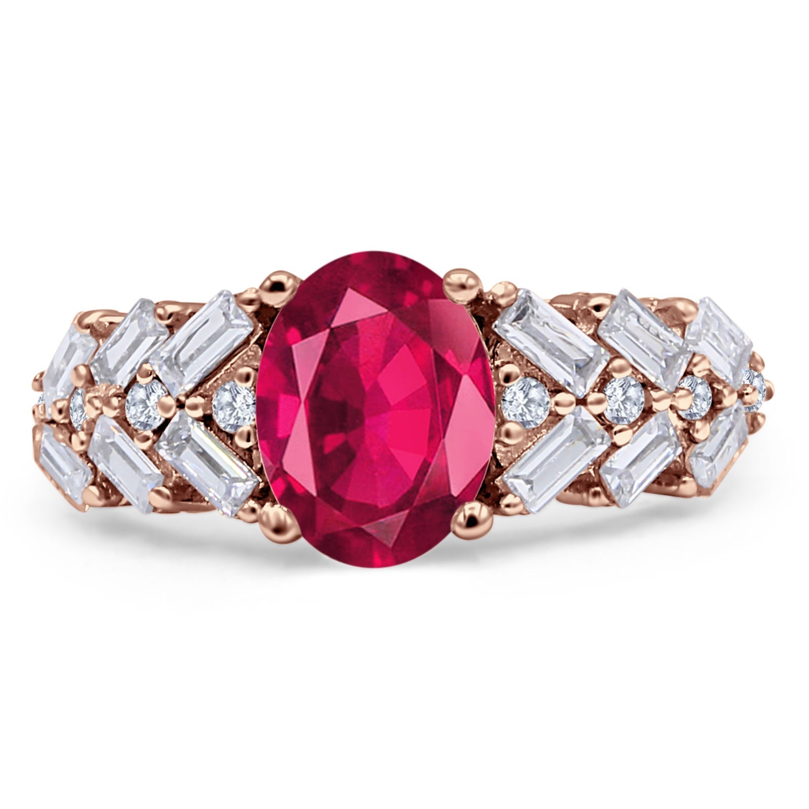 Ring Design: Oval Ruby CZ Cluster Baguette Cocktail Ring.