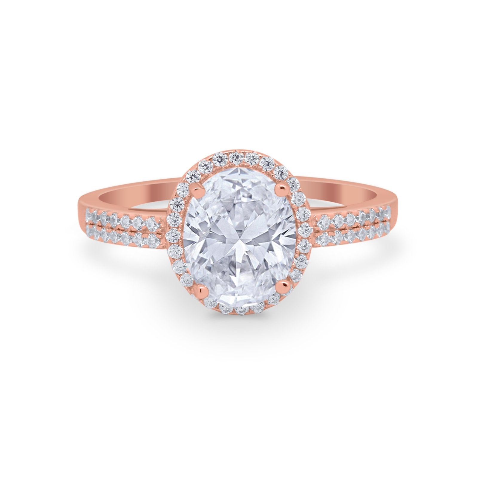 CZ & Blue Sapphire CZ Rose Tone Silver