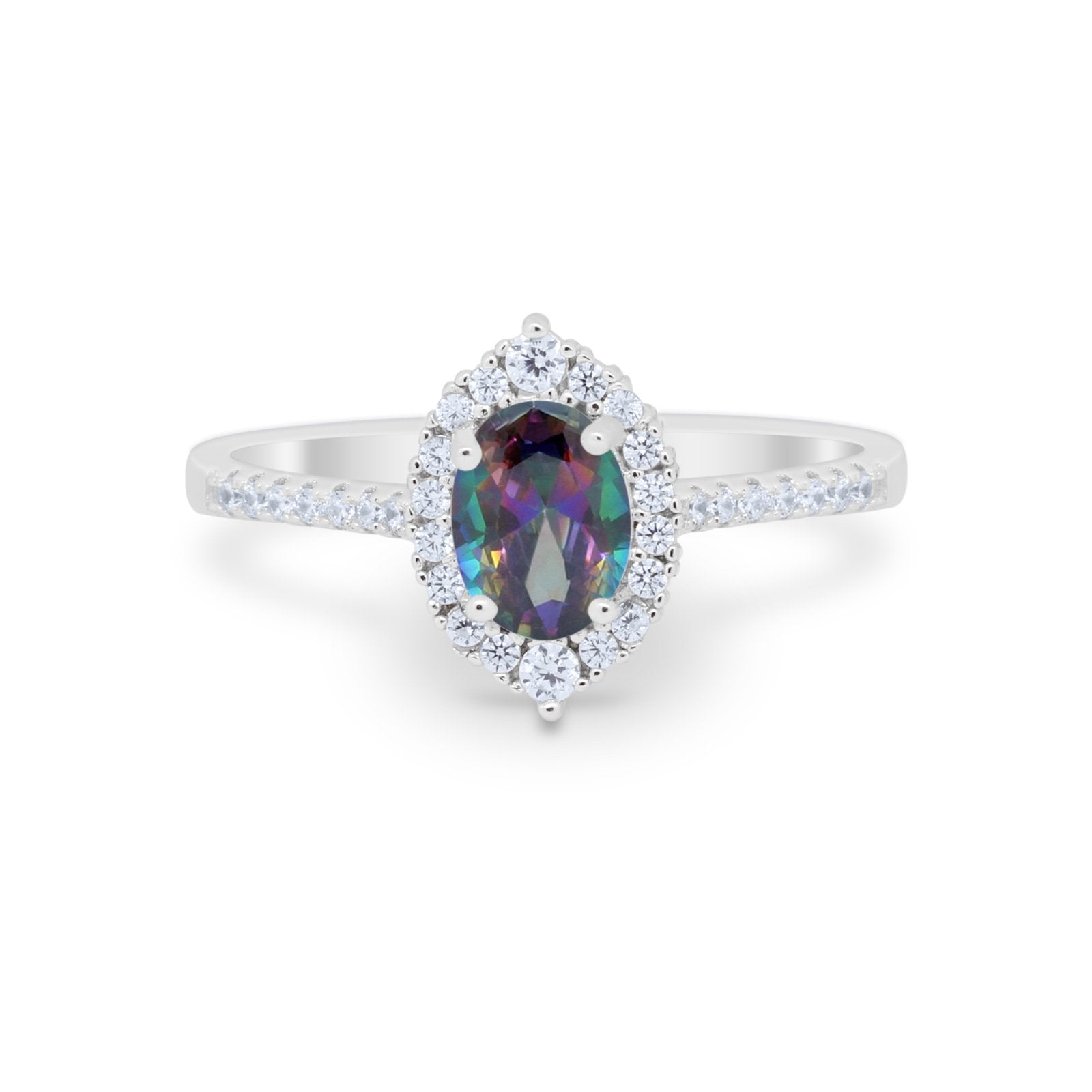 CZ & Blue Sapphire CZ Rose Tone Silver