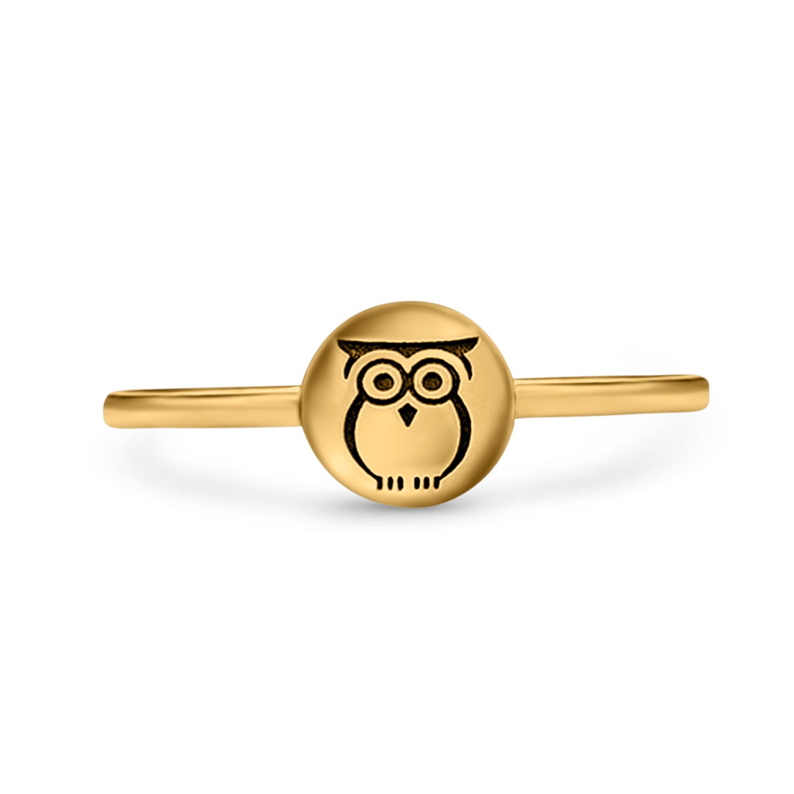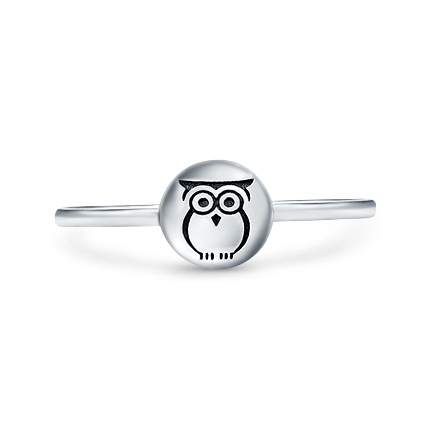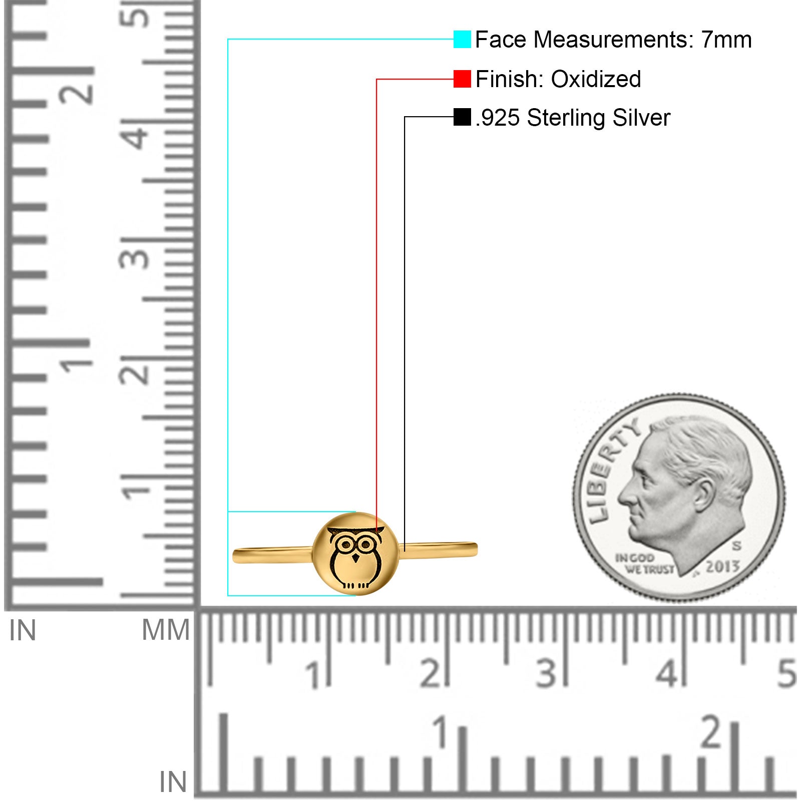 Owl Ring Oxidized Band Solid 925 Sterling Silver Thumb Ring (7mm)