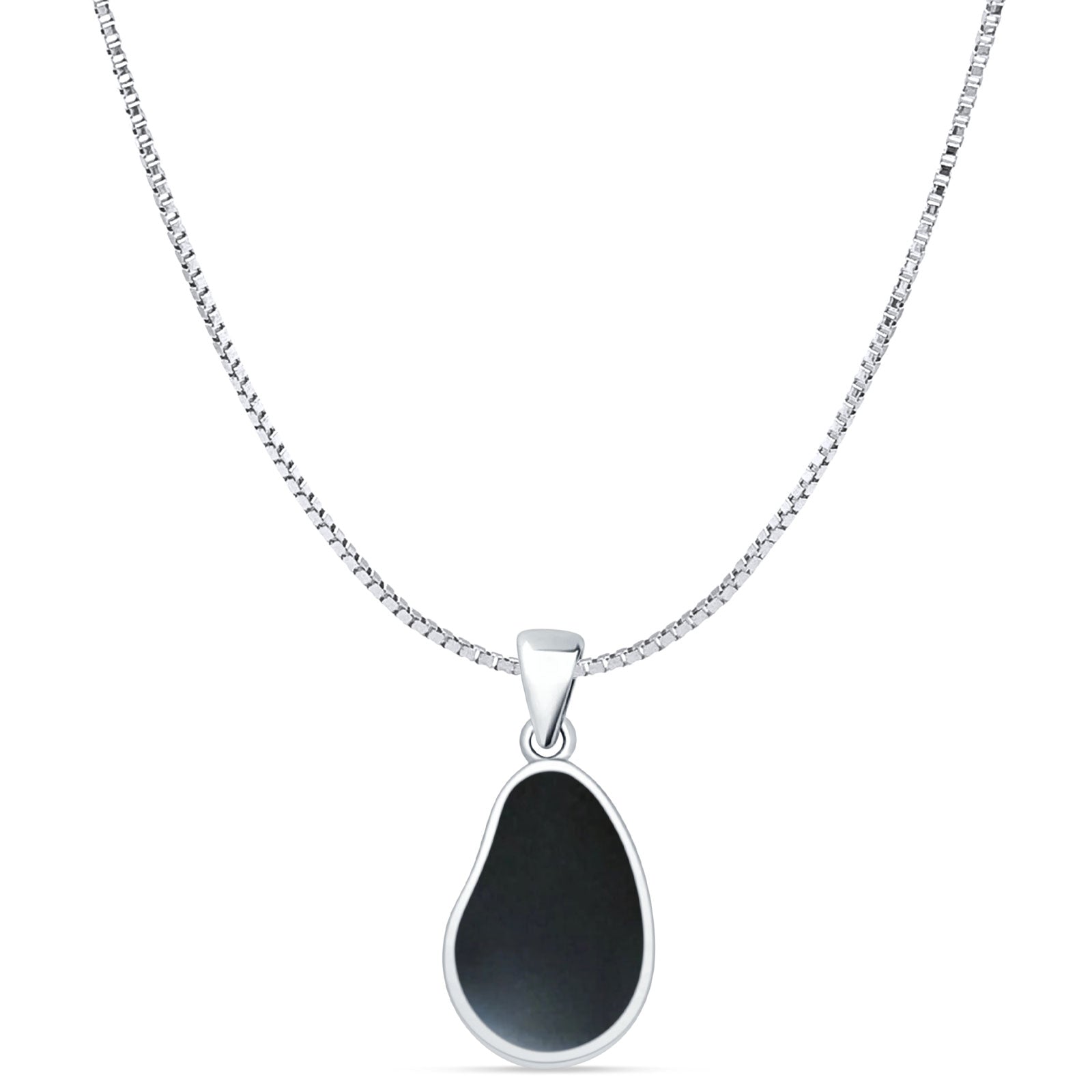 Pear Black Onyx Solitaire Pendant Box Chain Necklace 925 Sterling Silver