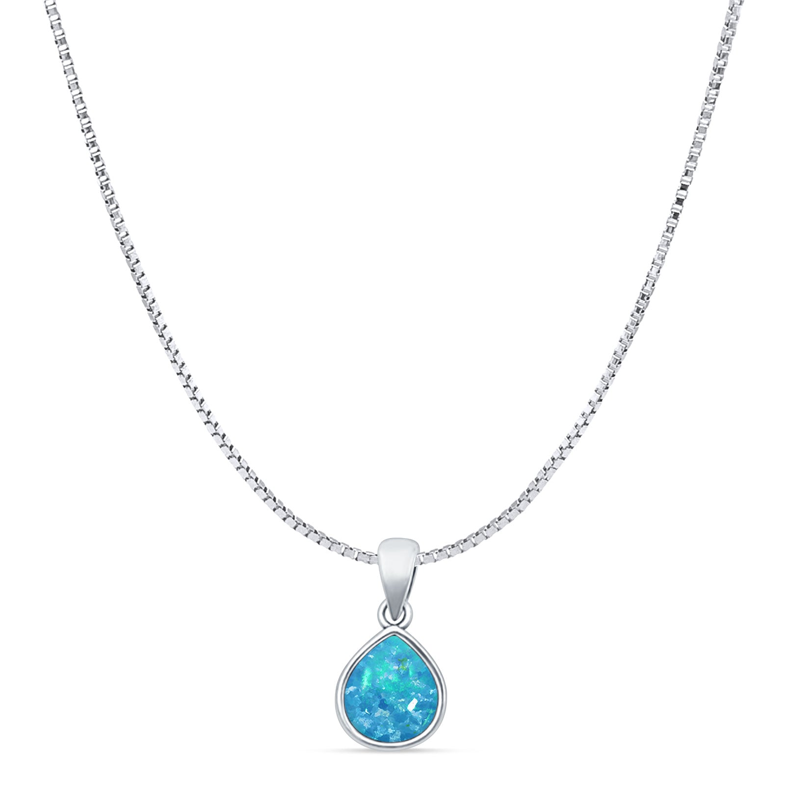 Style: Pear Lab Created Blue Opal Solitaire Pendant Necklace