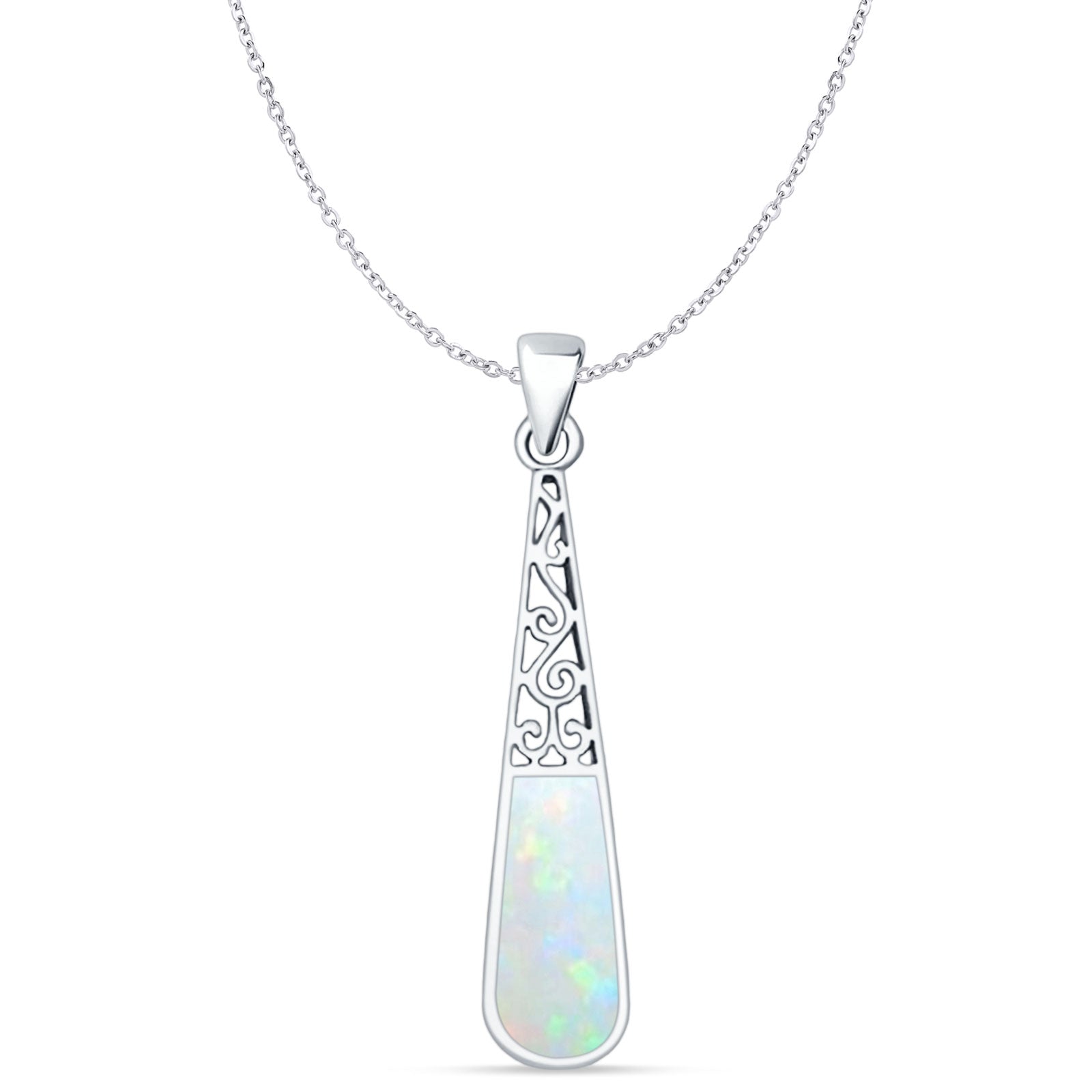 Style: Oxidized Lab Created White Opal Filigree Pendant Necklace