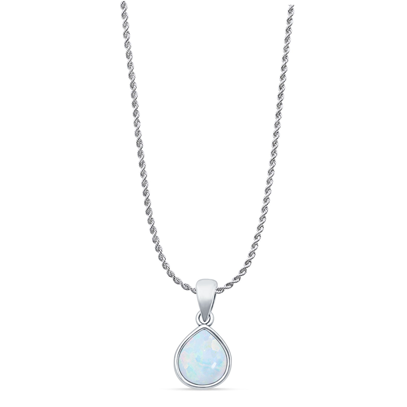 Style: Pear Lab Created White Opal Solitaire Pendant Necklace