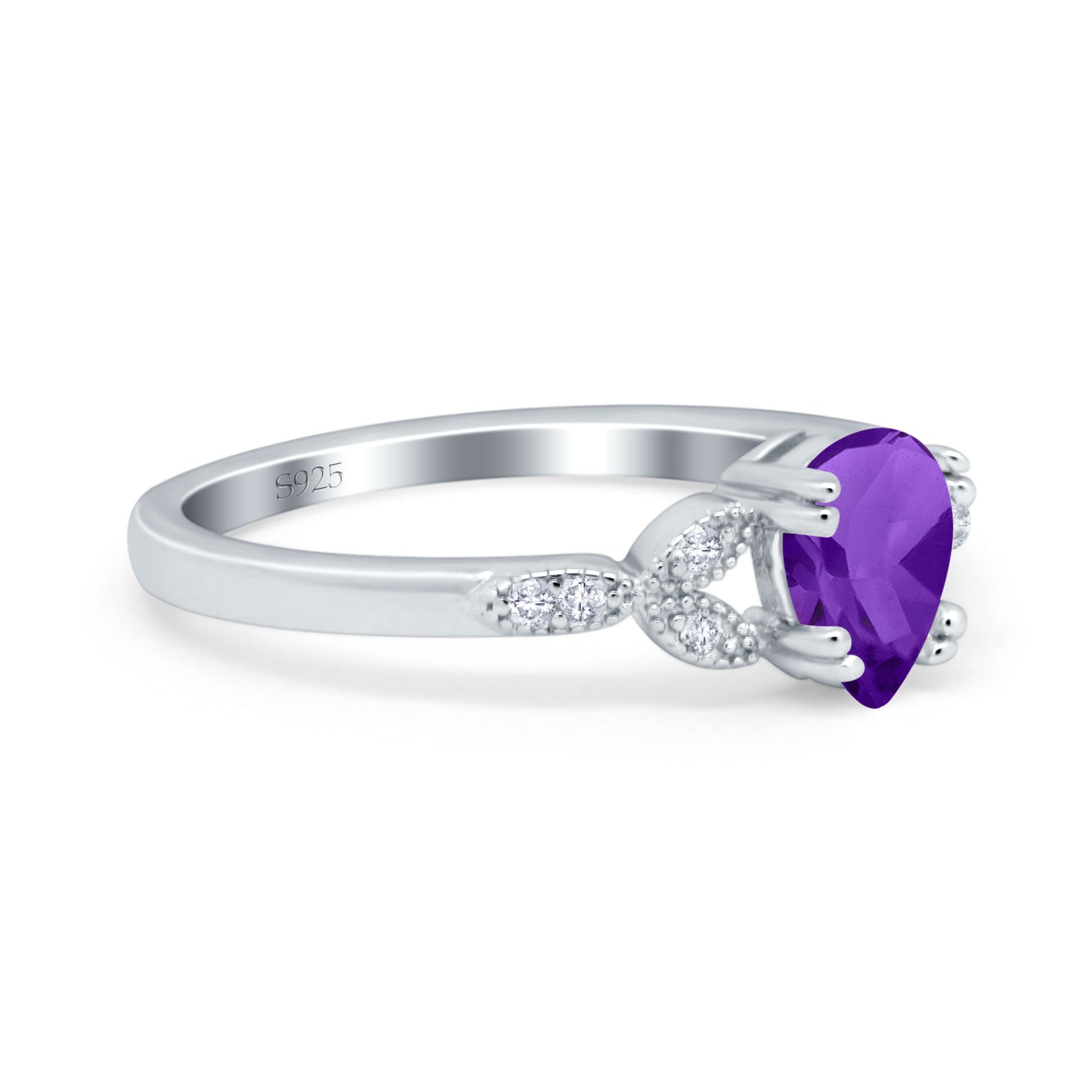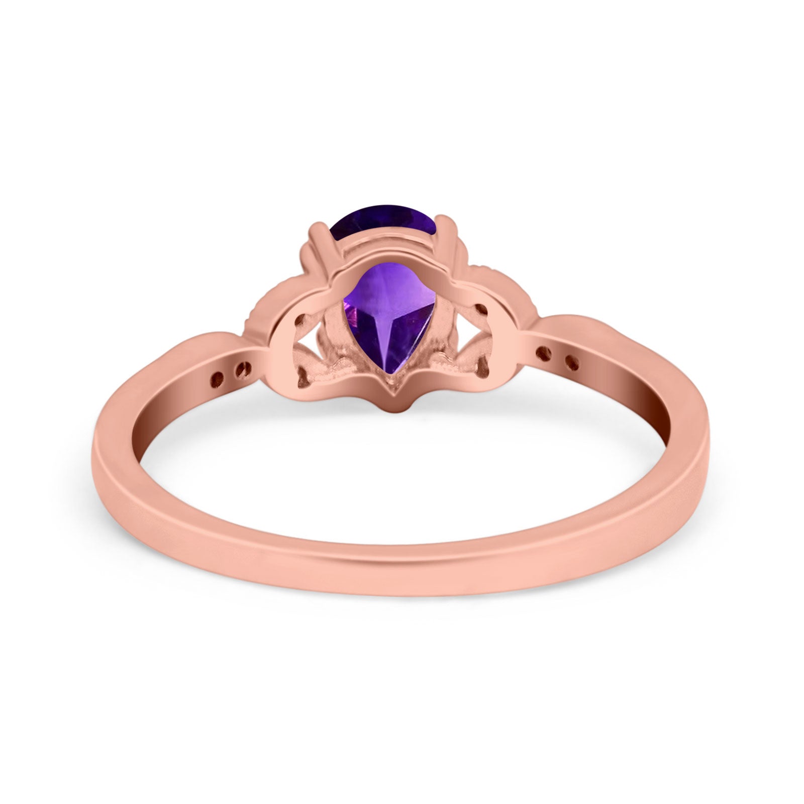 Pear Teardrop Natural Amethyst Floral Leaf Style Ring 925 Sterling Silver