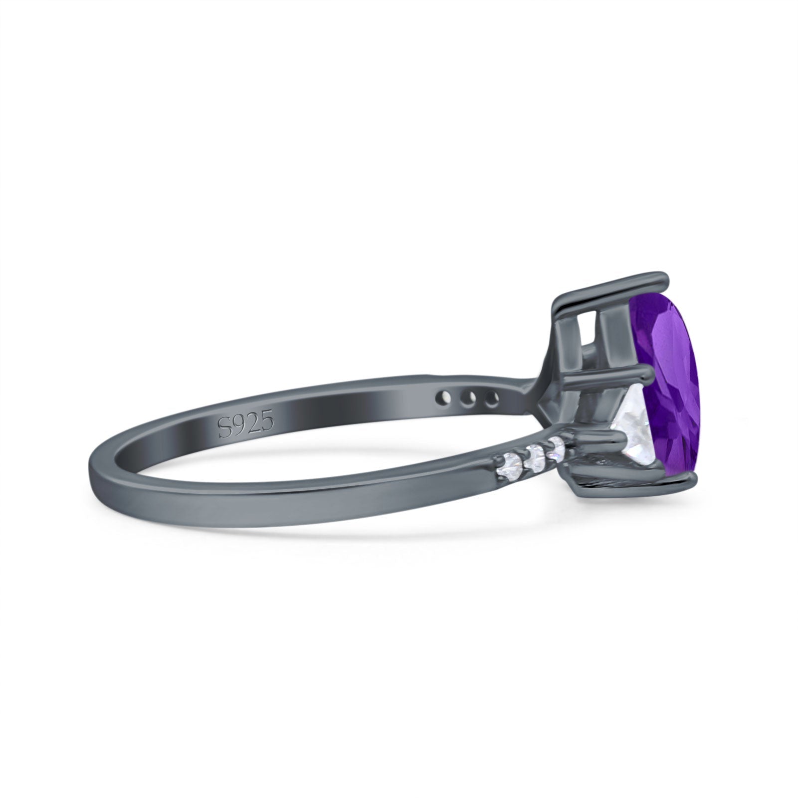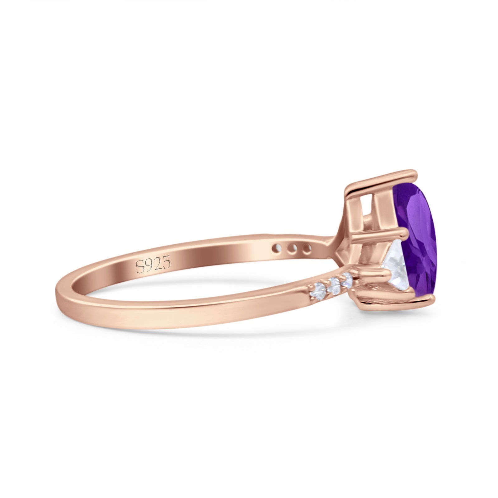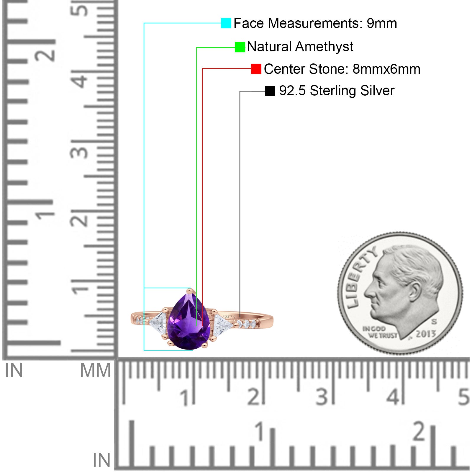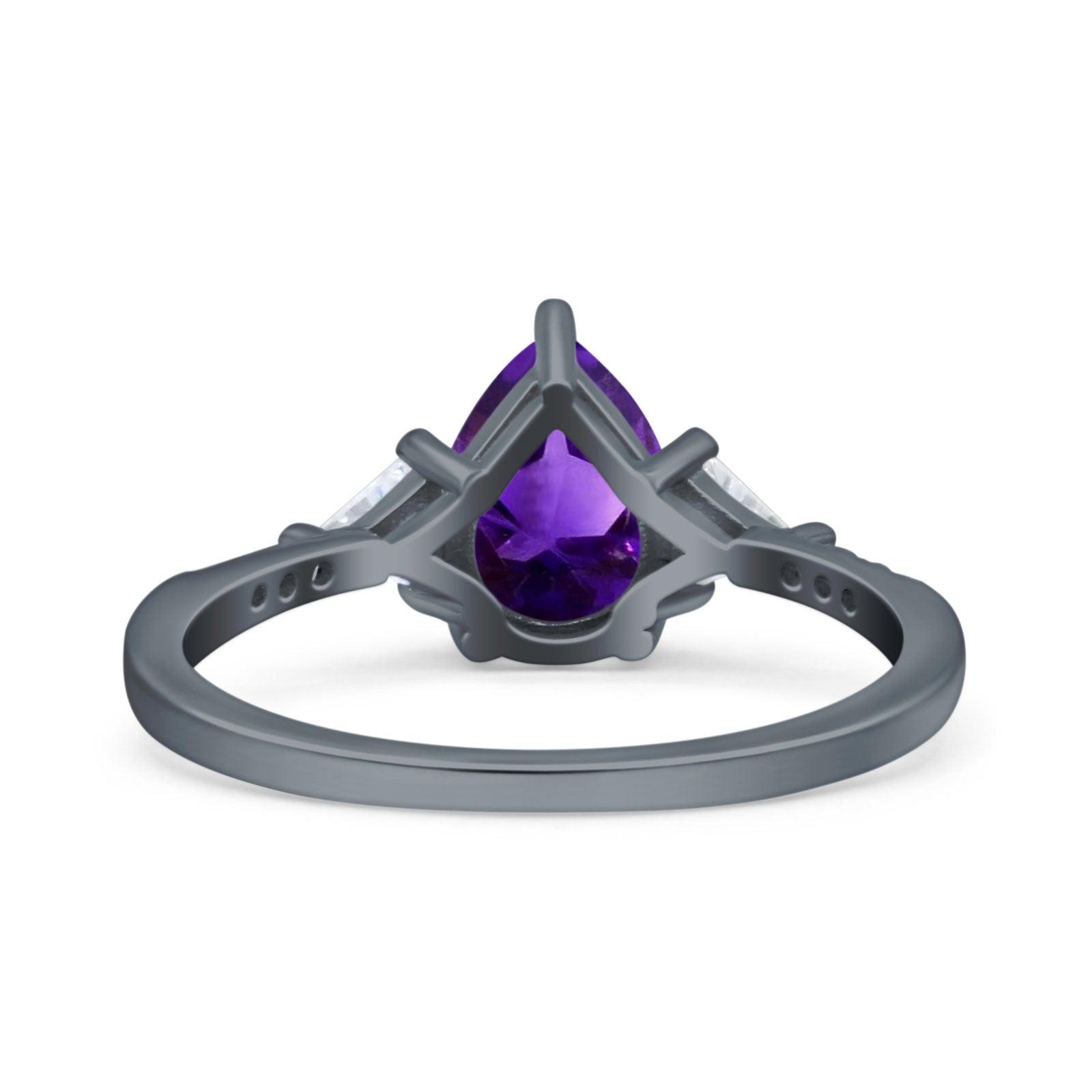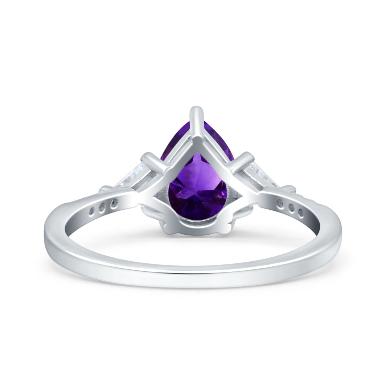Pear Teardrop Natural Amethyst Vintage Style Ring 925 Sterling Silver